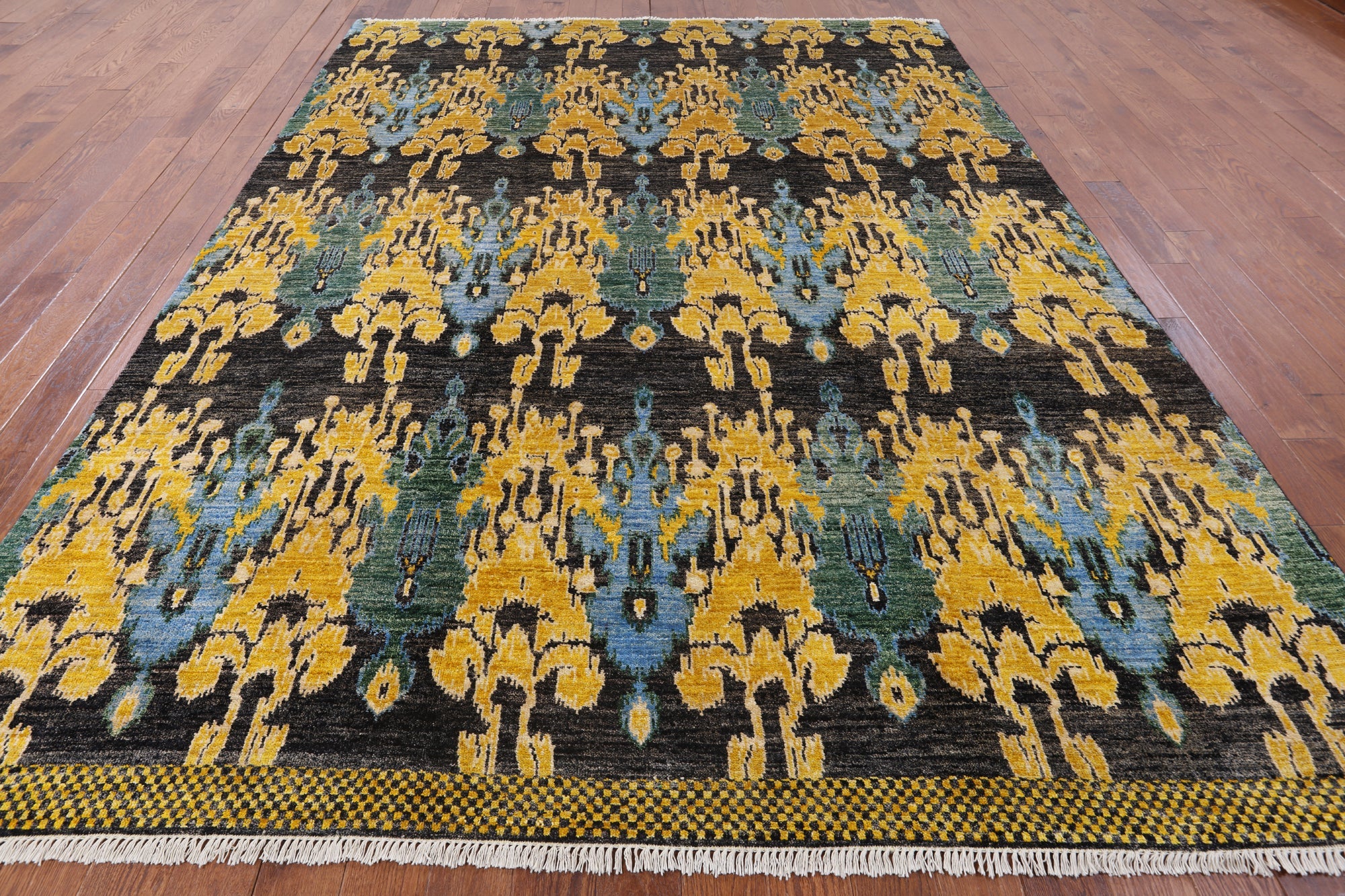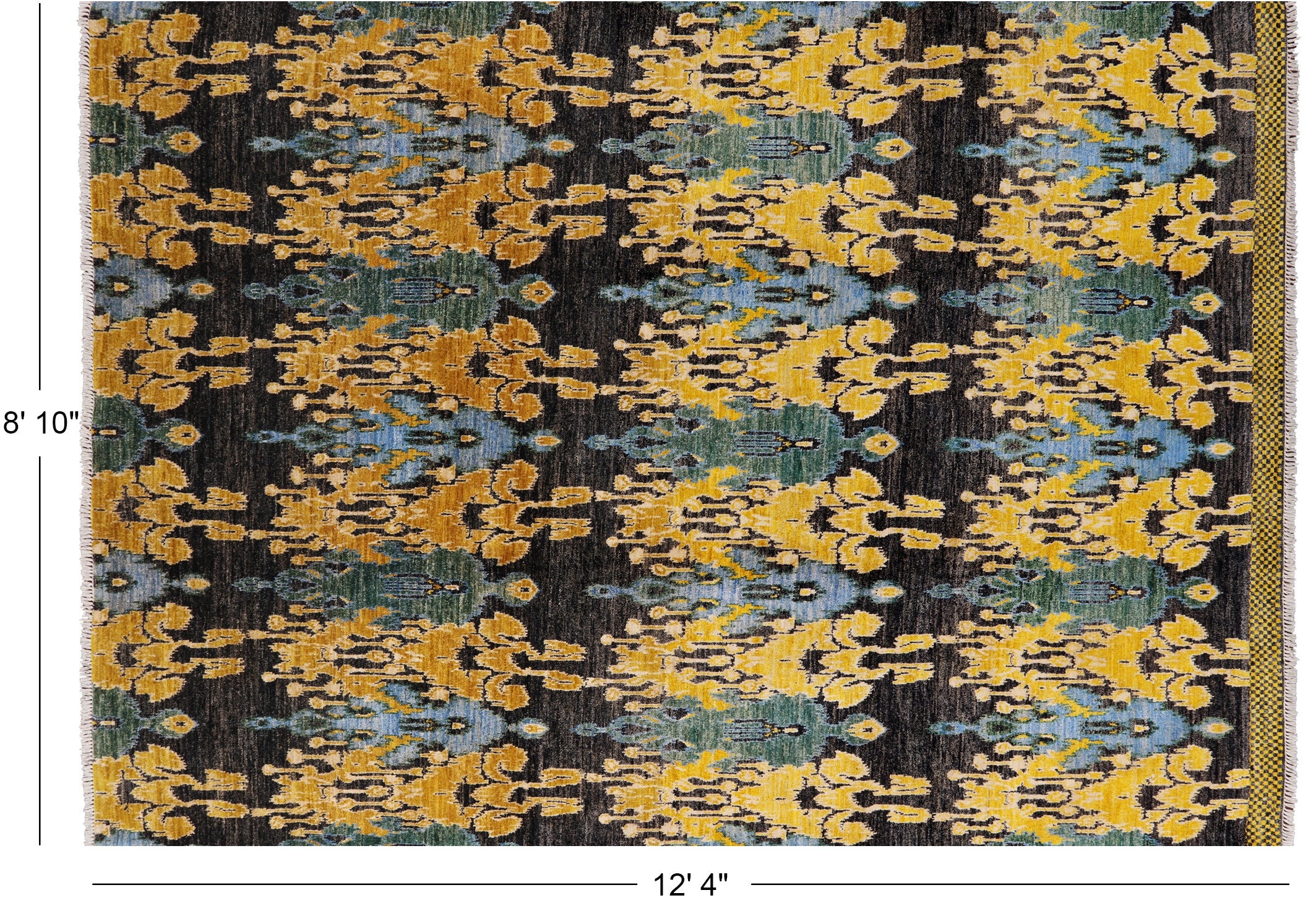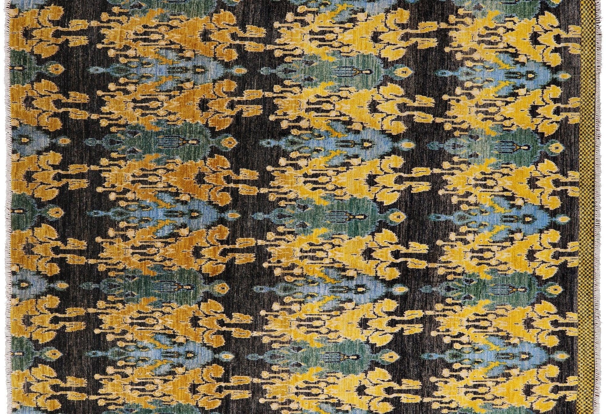 8' 10" X 12' 4" Hand-Knotted Ikat Wool Rug - P6190