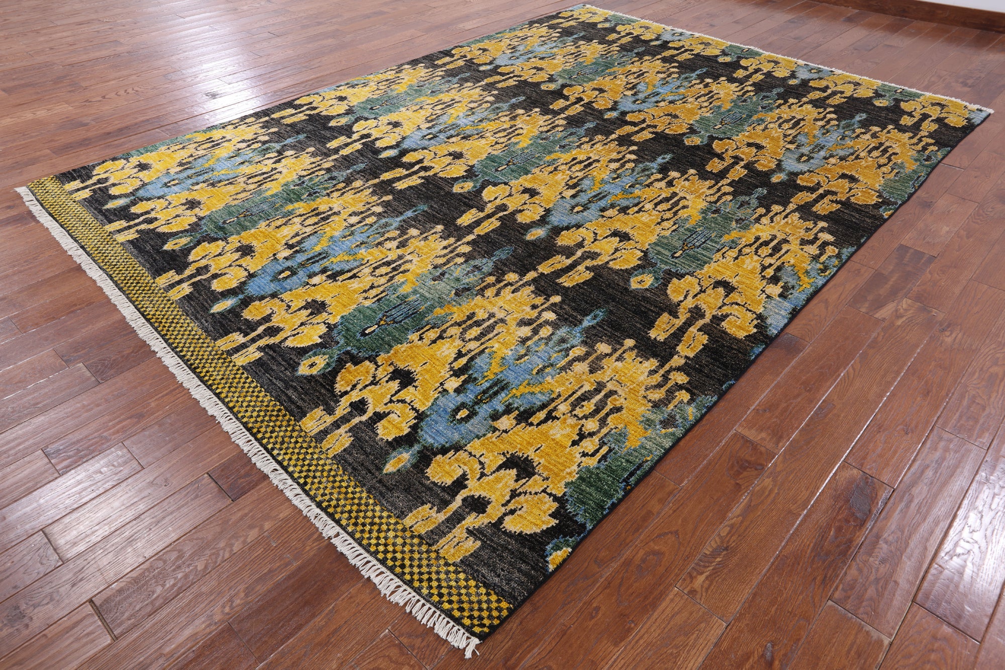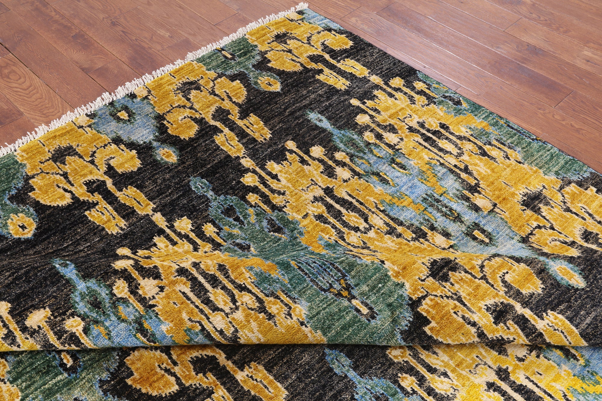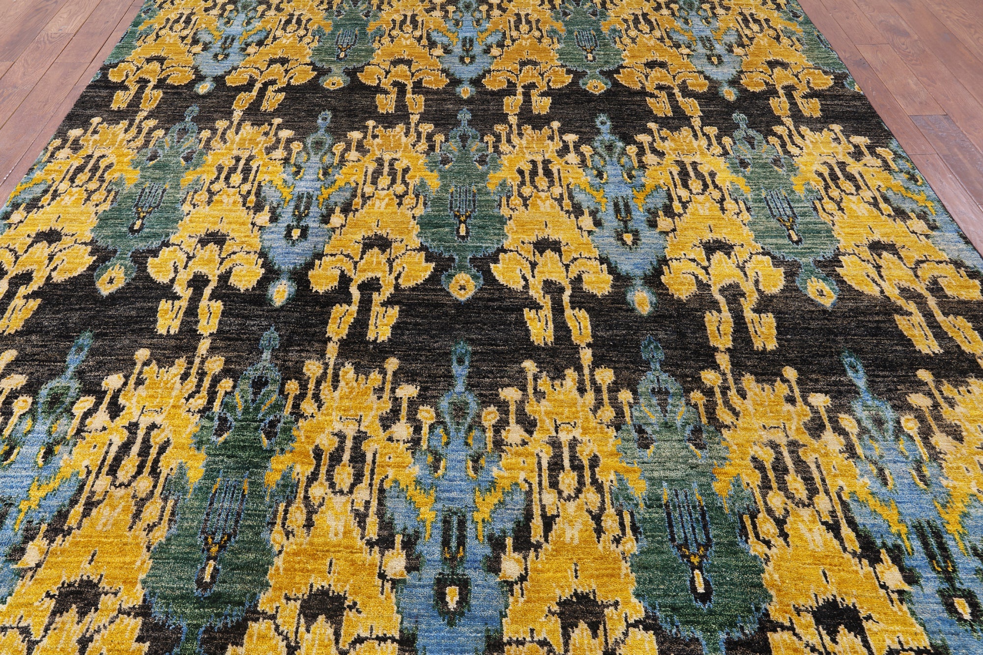 8' 10" X 12' 4" Hand-Knotted Ikat Wool Rug - P6190