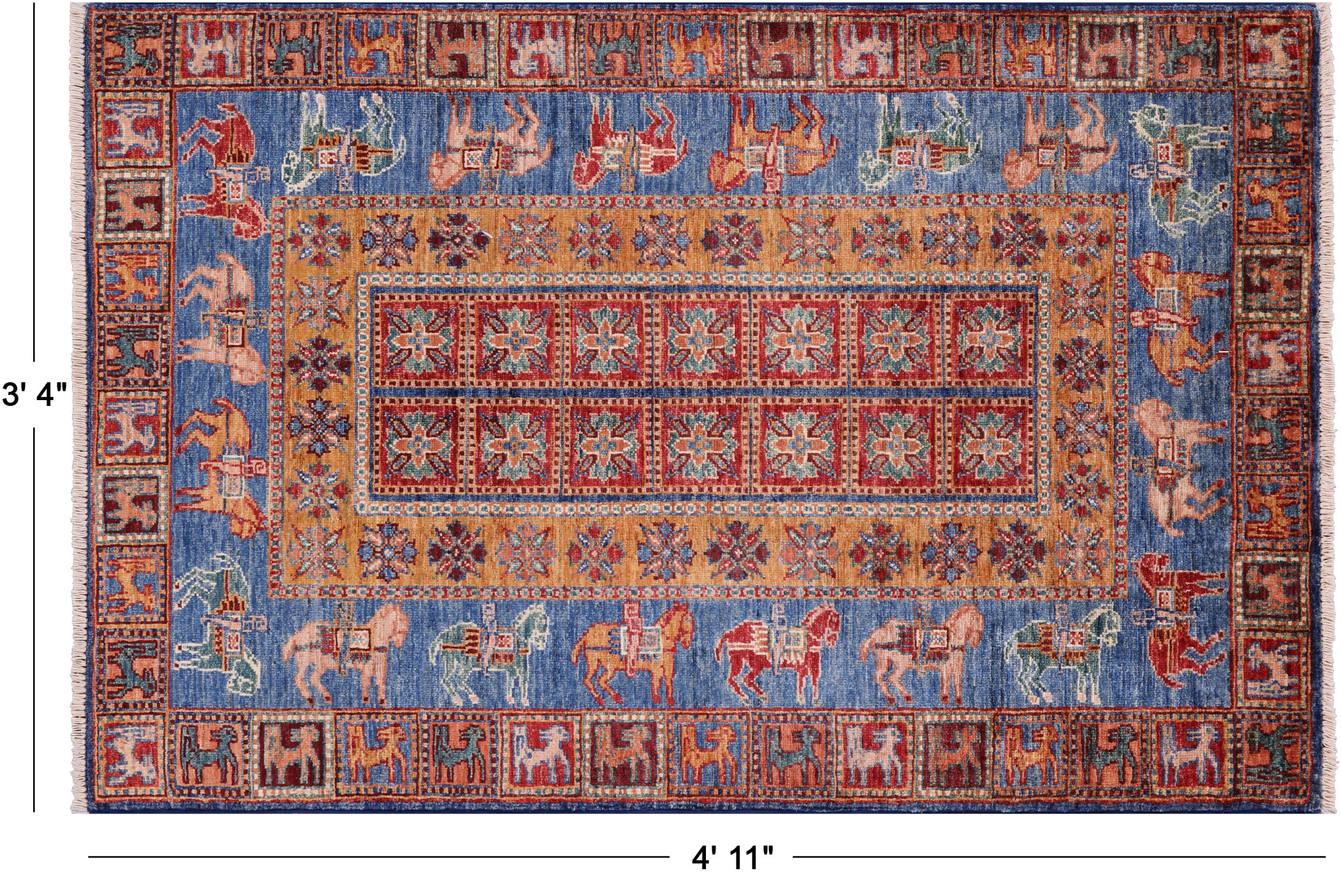 3' 4" X 4' 11" Hand Knotted Pazyryk Historical Design Rug - Q10864