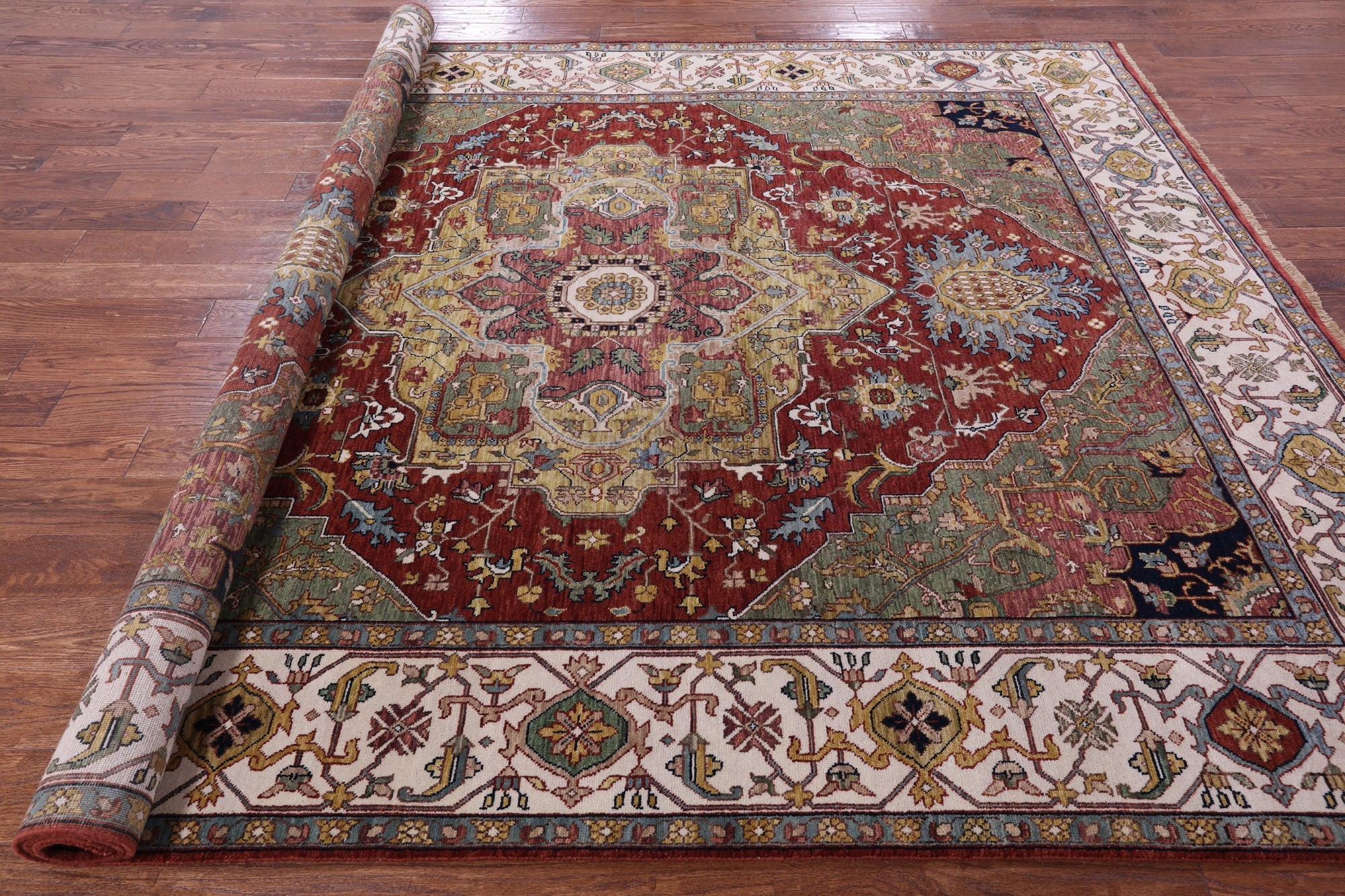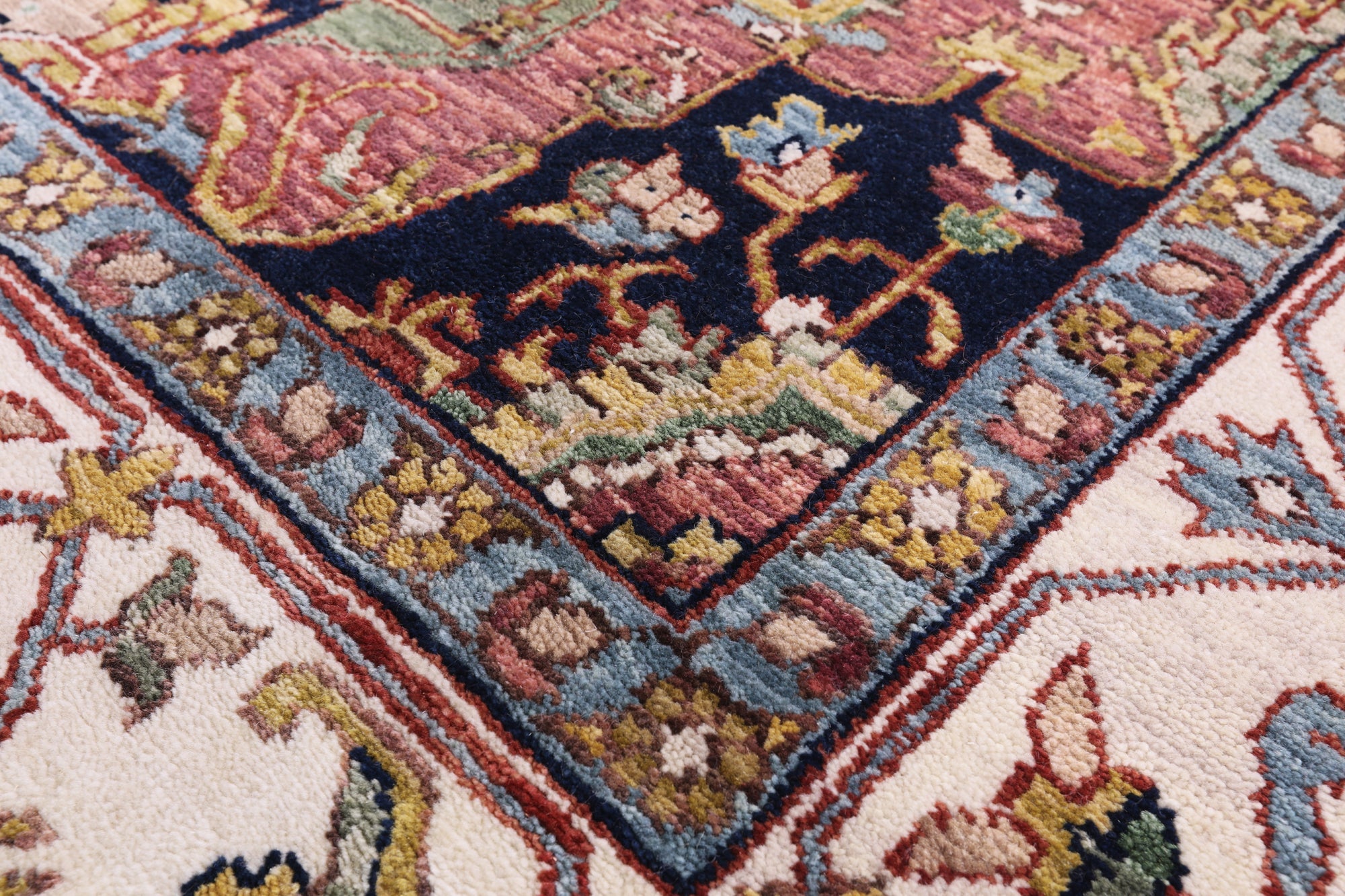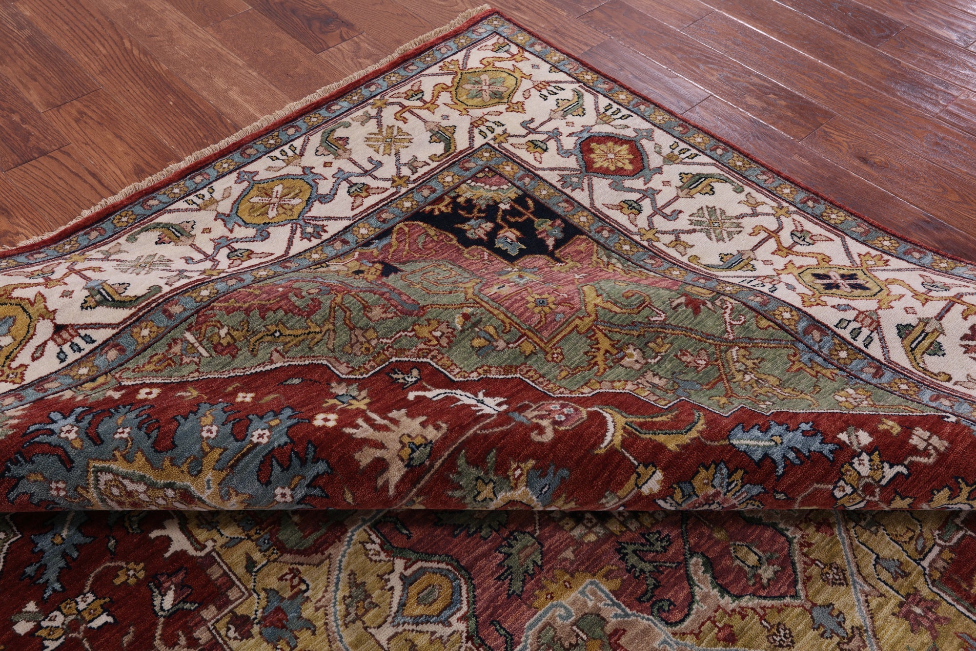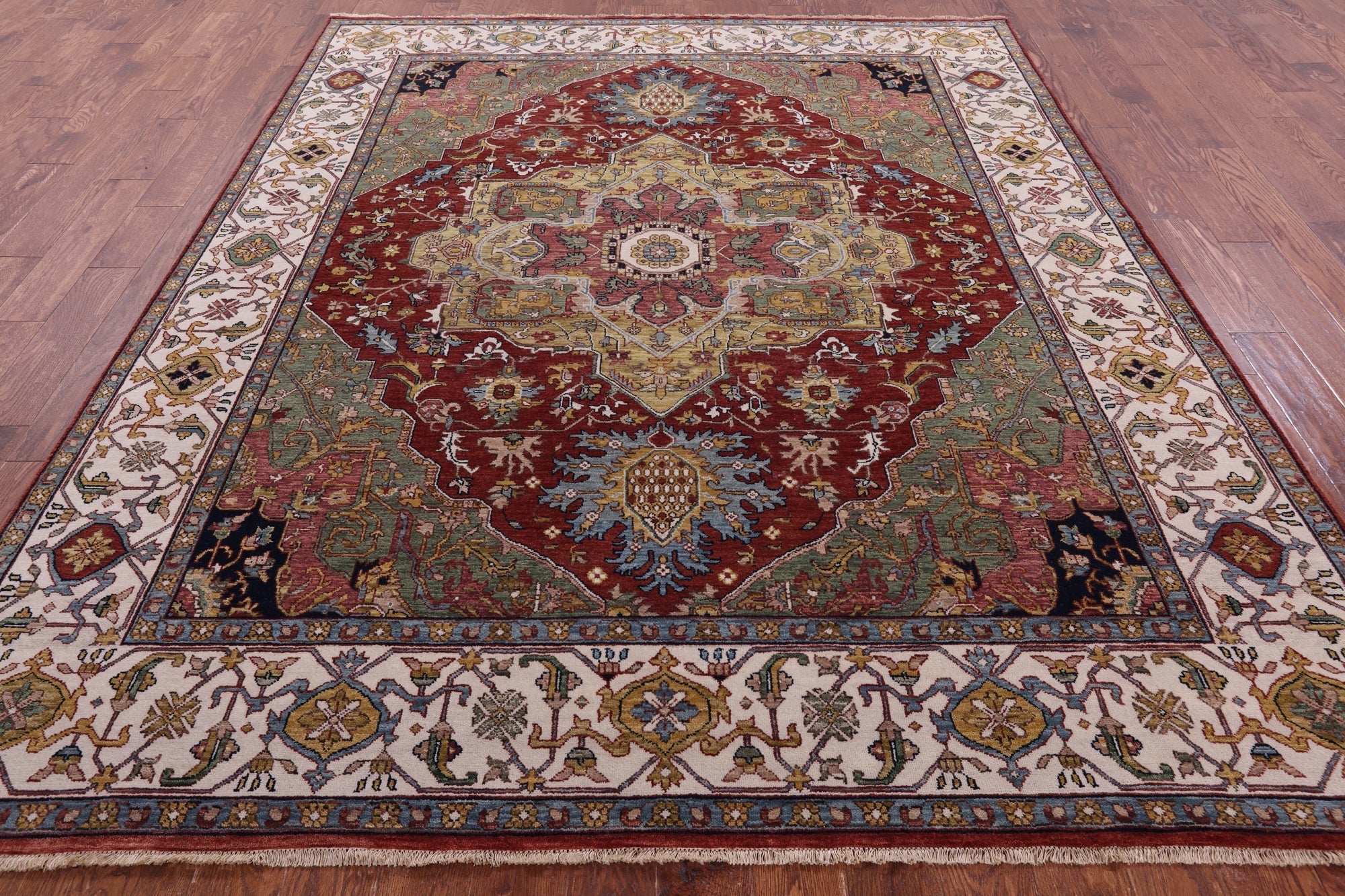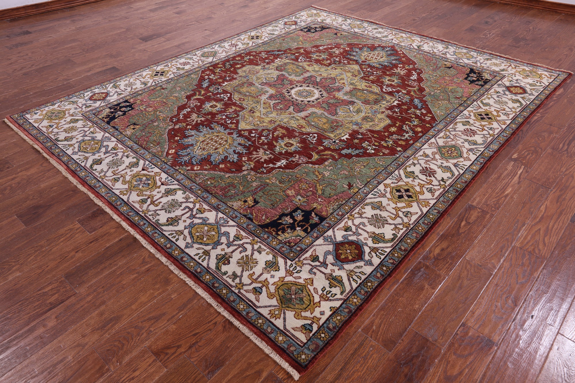 Heriz, Serapi rugs are well known for their bold and angular designs. Many being symmetric, they withhold boldly done geometric and floral-inspired shapes. These shapes are brought out with rich reds, blues, greens, and yellows contrasted against ivory. Heriz, Serapi rugs are very elegant and durable, perfect for a variety of different rooms and spaces within a home.