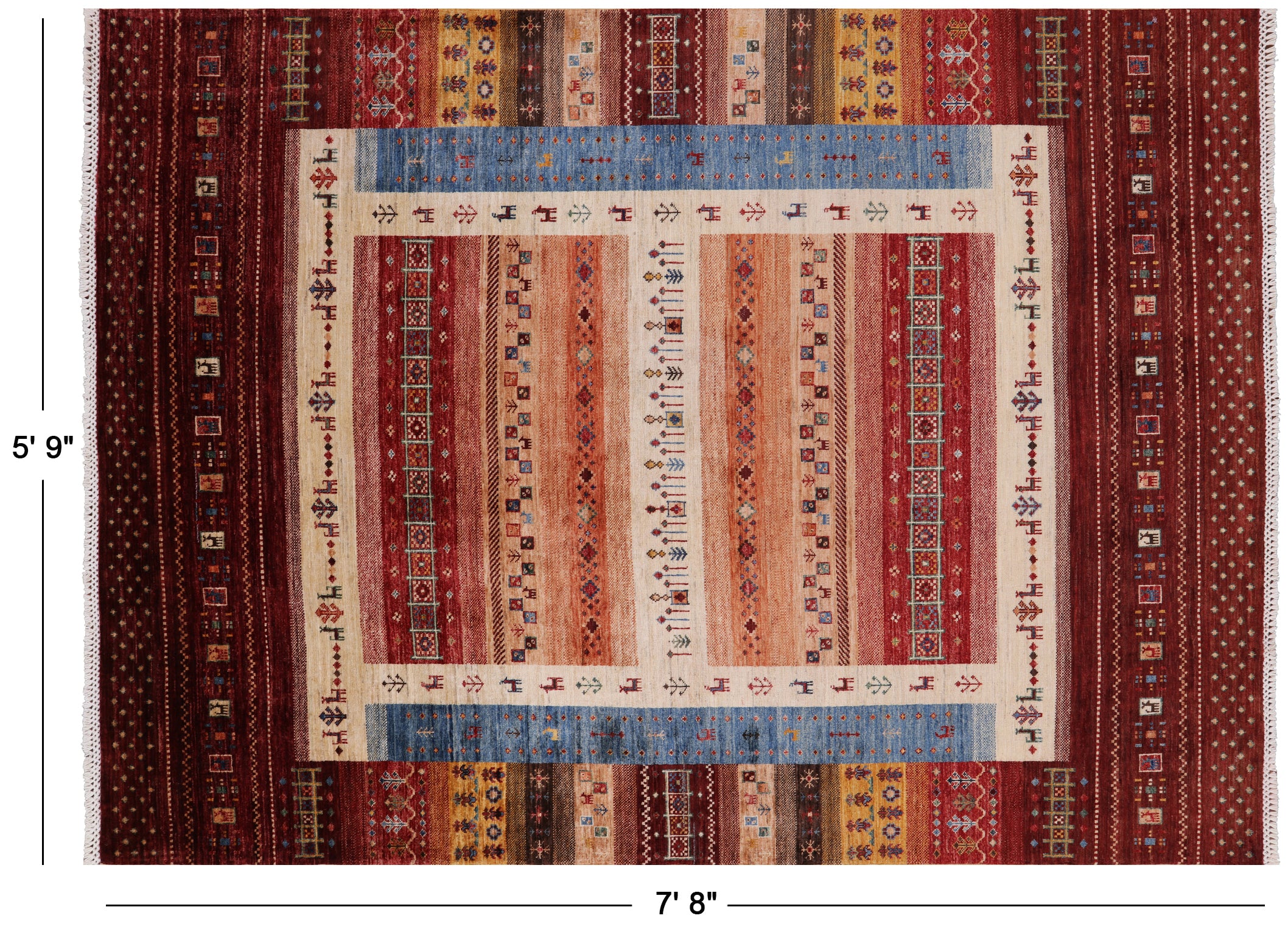 5' 9" X 7' 8" Hand Knotted Persian Gabbeh Tribal Wool Rug - P9882