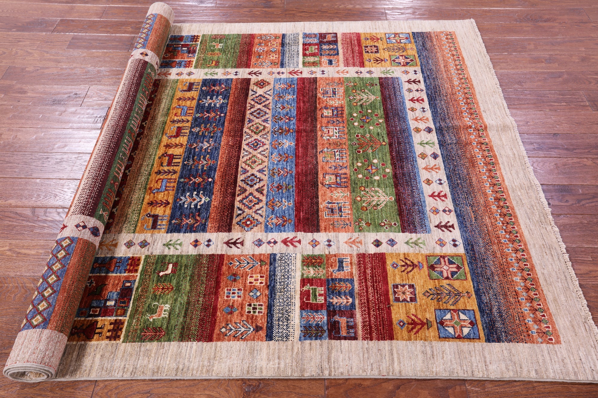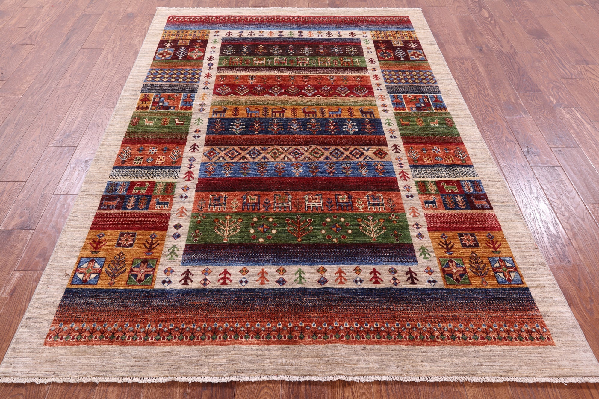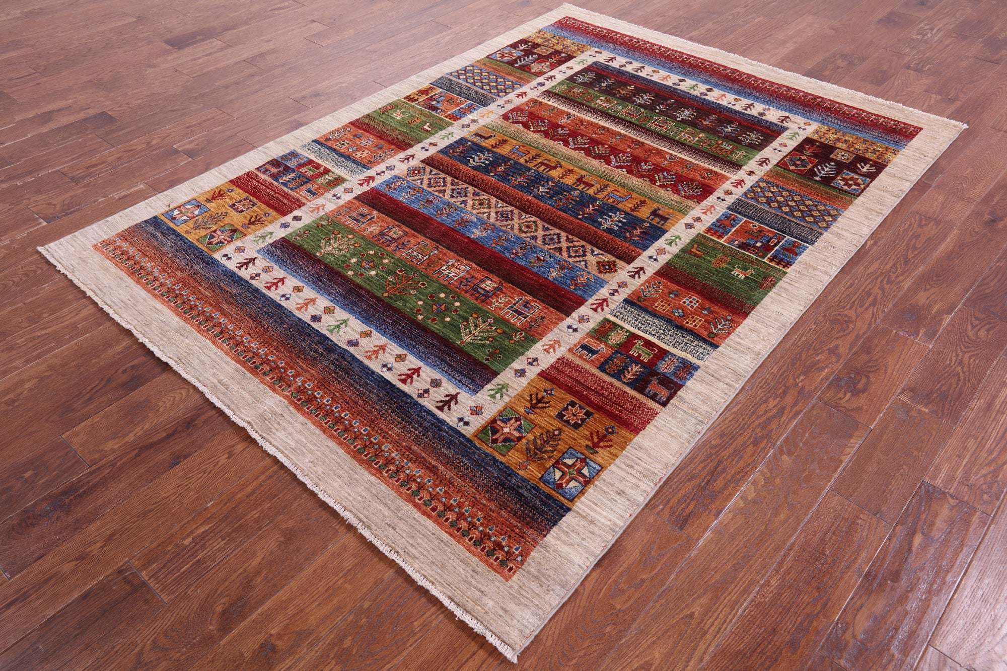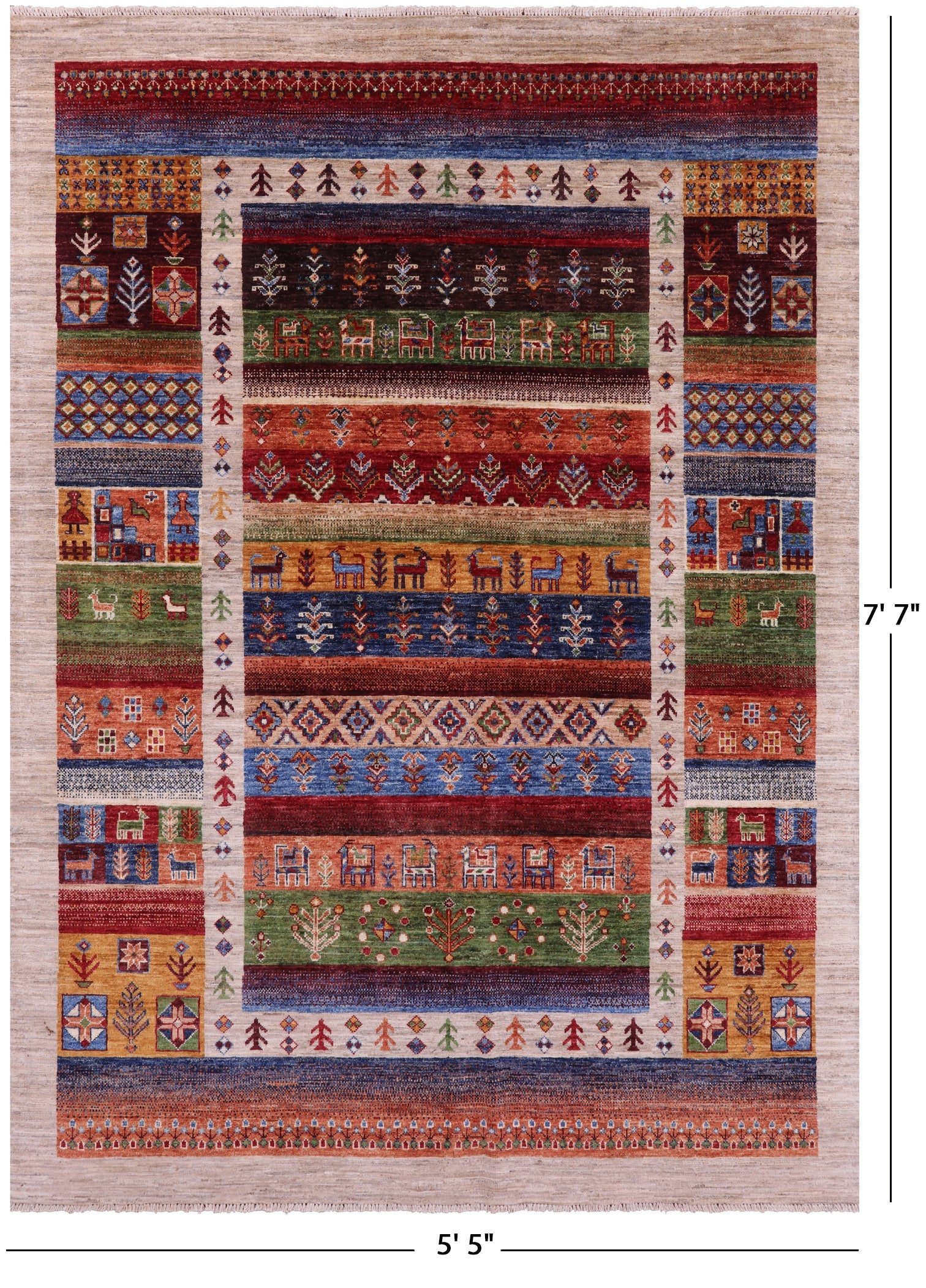 5' 5" X 7' 7" Hand-Knotted Persian Gabbeh Tribal Wool Rug - Q20705