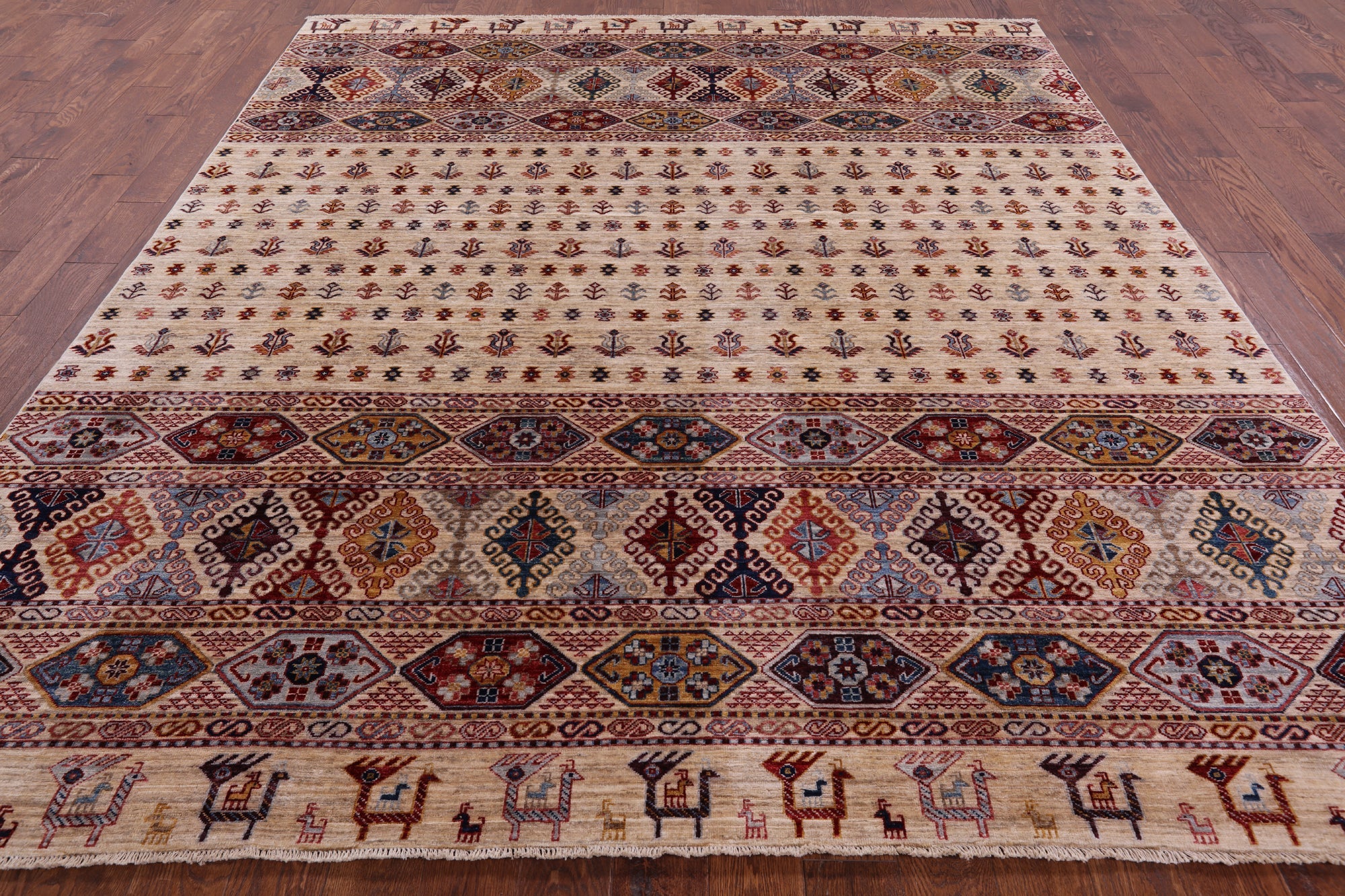 Hand Knotted Tribal Persian Gabbeh Wool Rug 8' 6" X 9' 10" - Q8071 is backordered and will ship as soon as it is back in stock.