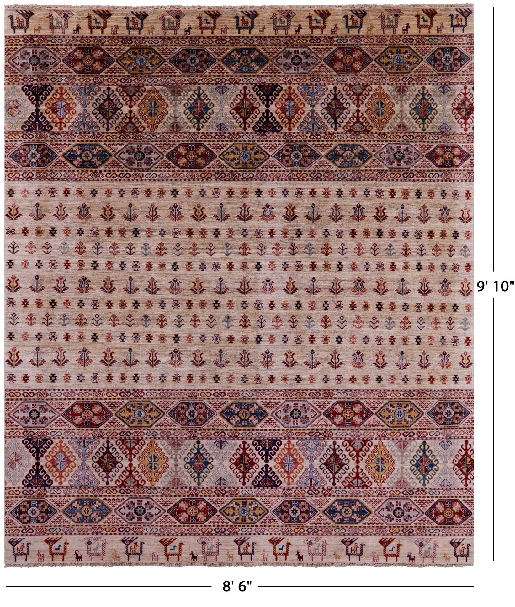 Hand Knotted Tribal Persian Gabbeh Wool Rug 8' 6" X 9' 10" - Q8071