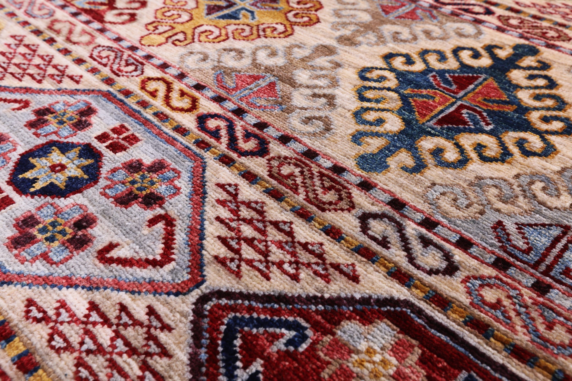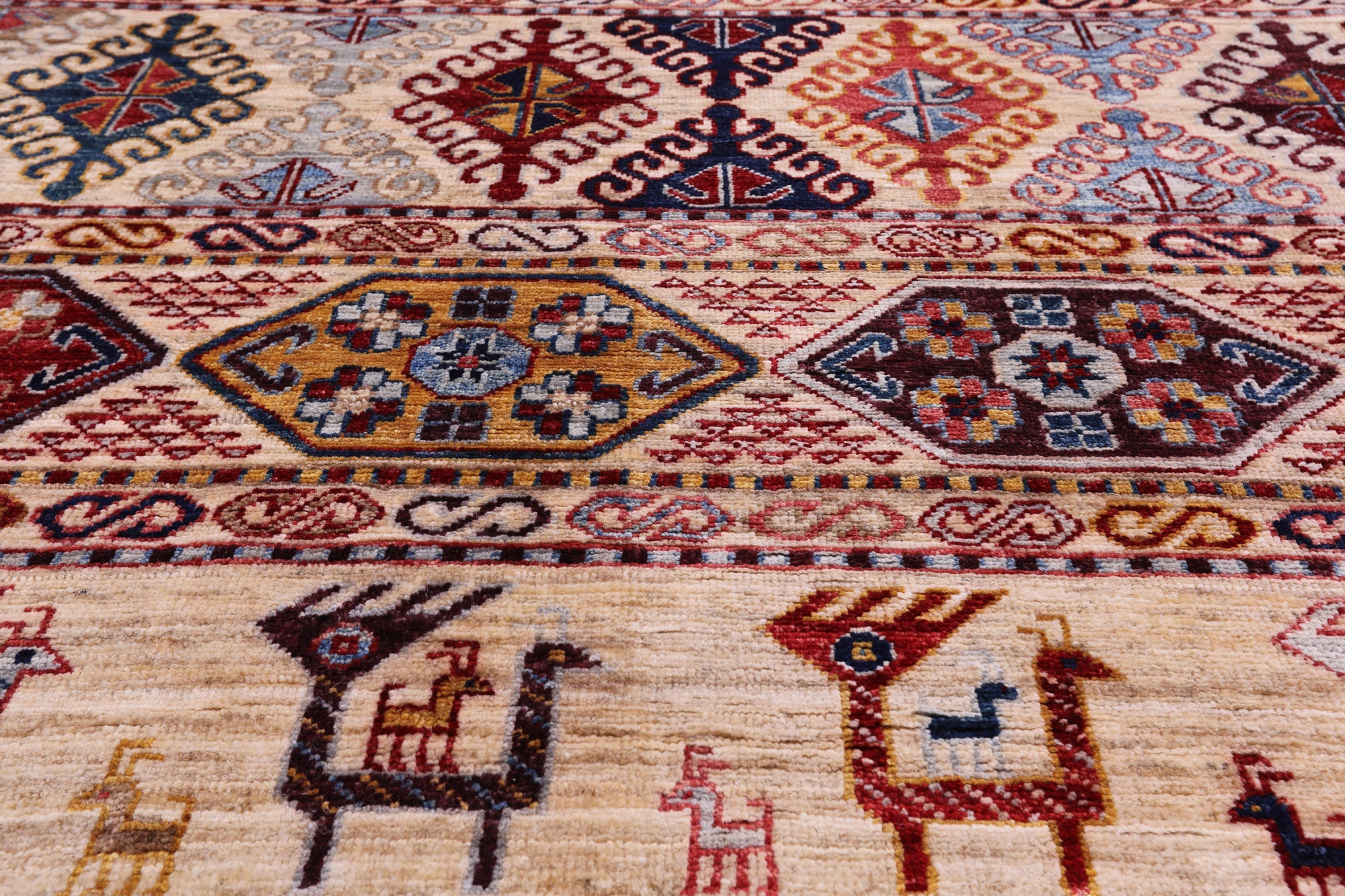 Gabbeh rugs are nothing short of simplistic and tribal, with designs consisting of primarily geometric shapes, animals, and plants. All done in a simplified way and based on the nomadic observation. Commonly brightly colored, these rugs are fun and beautiful and will add a warm touch to any home.