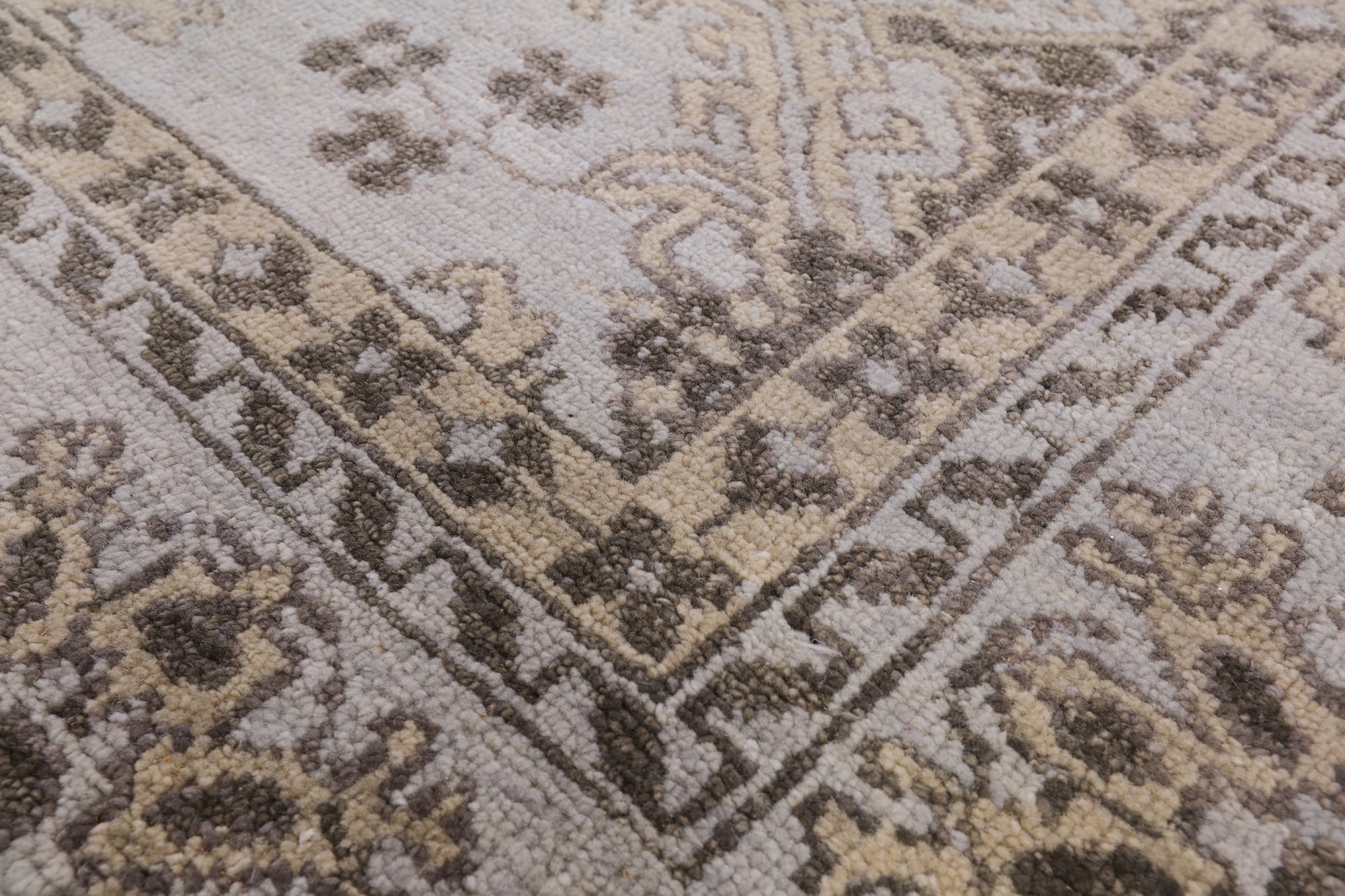 Oushak rugs, hand-knotted with meticulous craftsmanship, are celebrated for their timeless beauty, luxurious feel, and vibrant colors. These rugs feature a harmonious blend of muted earthy tones and colorful hues, with intricate designs inspired by traditional Turkish motifs. Their versatile style seamlessly complements various interiors, from traditional to modern. With a dense pile and careful hand-knotting techniques, Oushak handmade rugs not only enhance visual appeal but also stand as enduring pieces, adding a touch of refined elegance and a splash of color to any space.