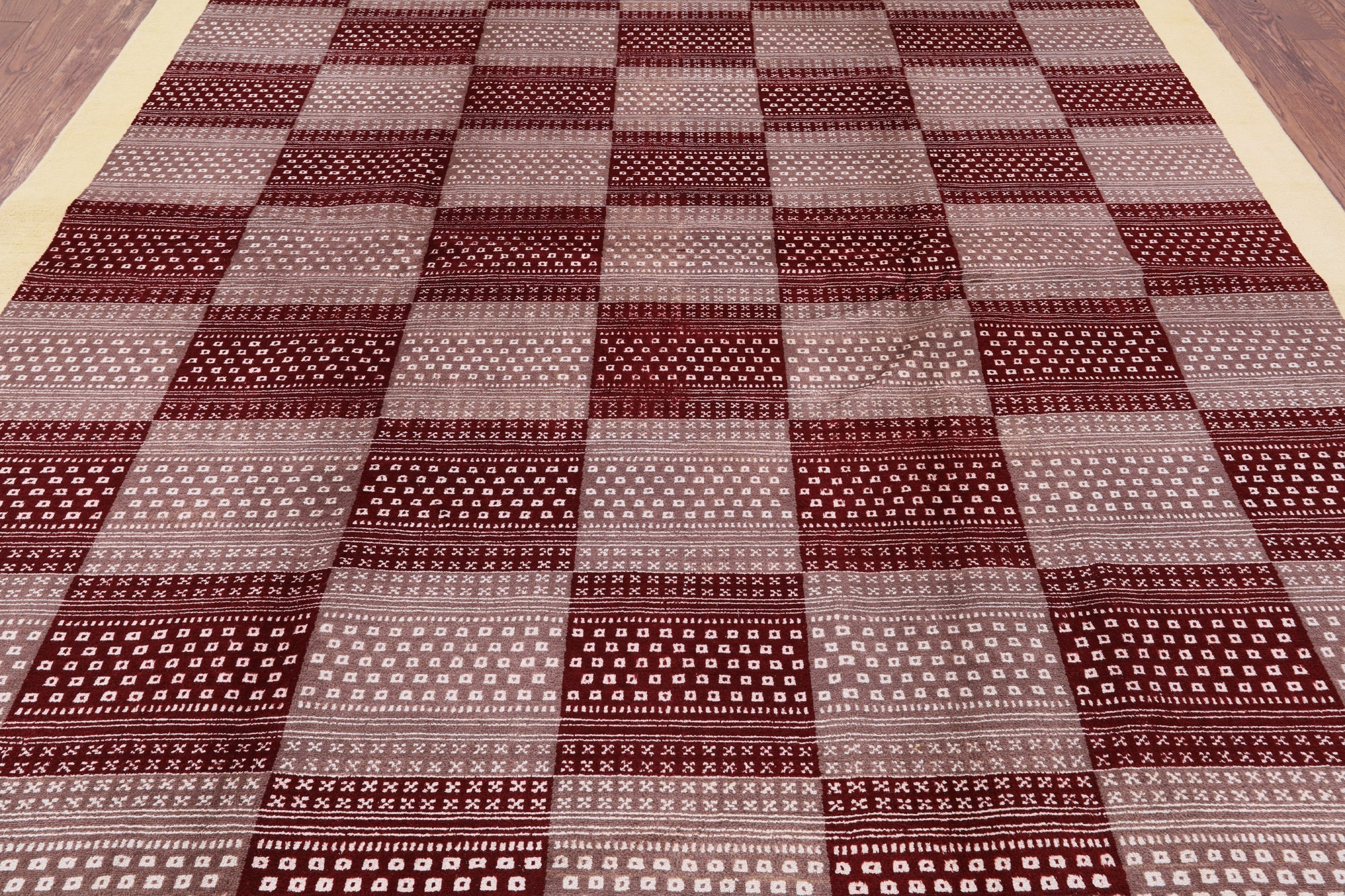 Gabbeh rugs are hand-spun wool in both the pile and the foundation, as well as all natural dyes. Simple, colorful geometric patterns, abstract scenery, child-like representations of people and animals, different colors, reds, blue, greens ,yellow, purple. Modern technology has improved the dye process to allow a wider range of colors as well as more stable and easier to care for colors.