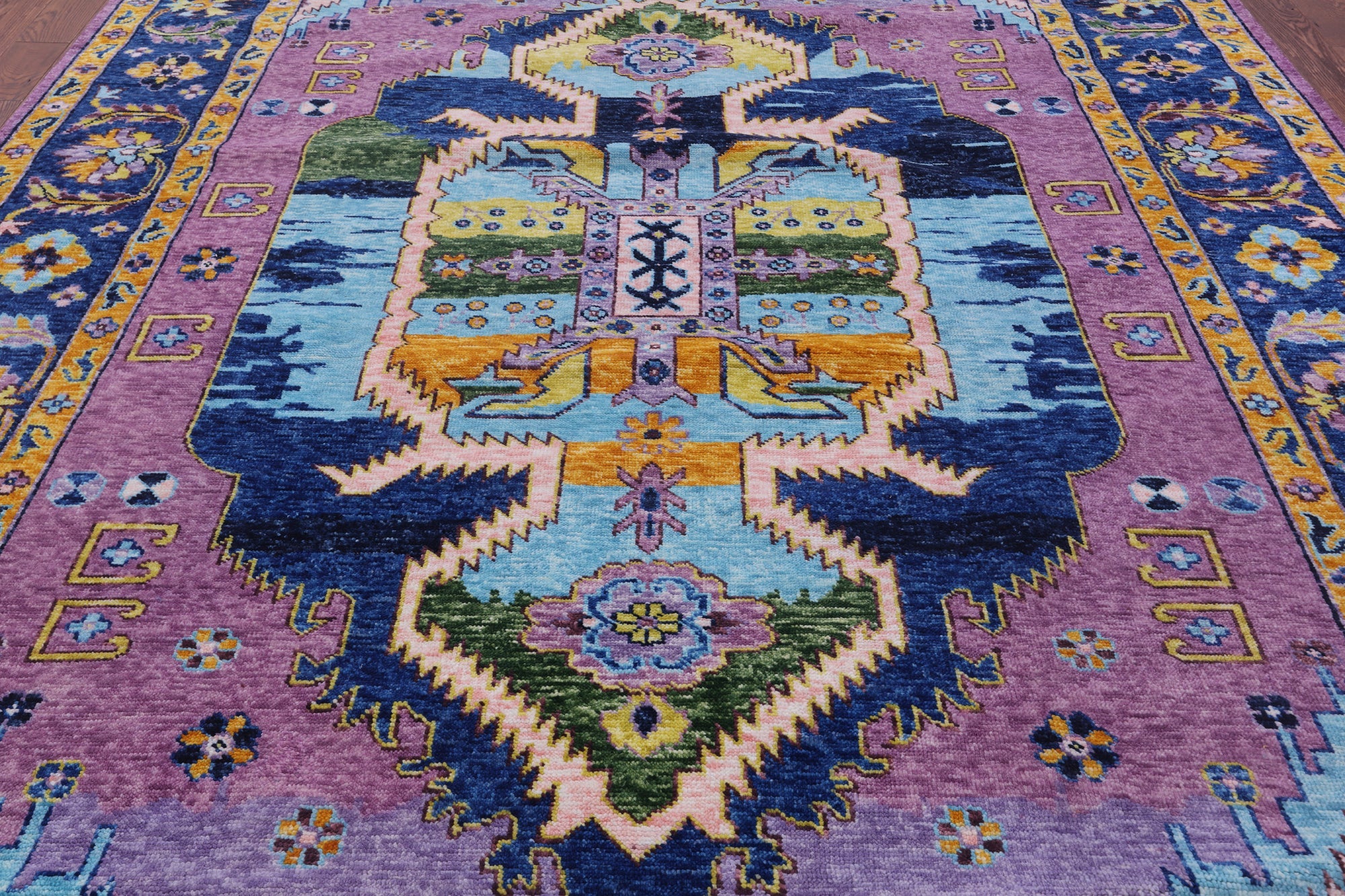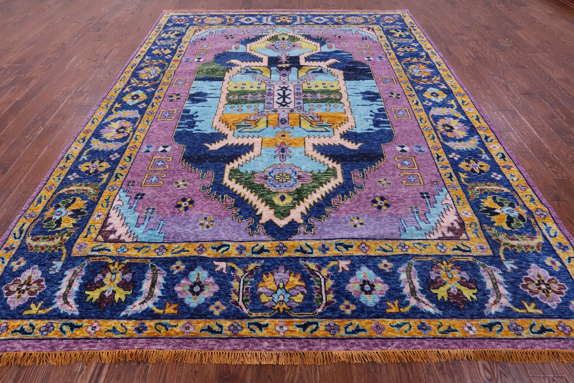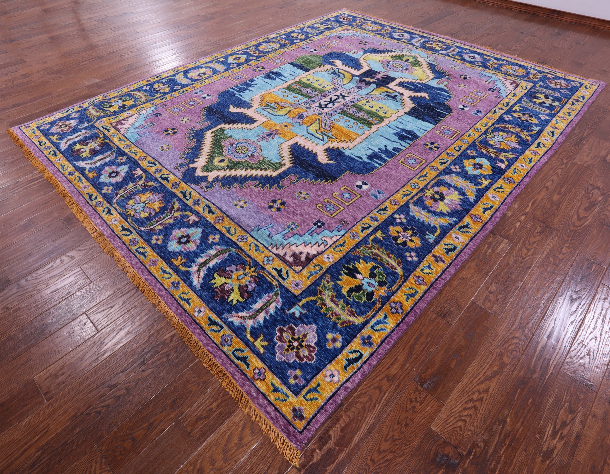 Heriz, Serapi rugs are well known for their bold and angular designs. Many being symmetric, they withhold boldly done geometric and floral-inspired shapes. These shapes are brought out with rich reds, blues, greens, and yellows contrasted against ivory. Heriz, Serapi rugs are very elegant and durable, perfect for a variety of different rooms and spaces within a home.