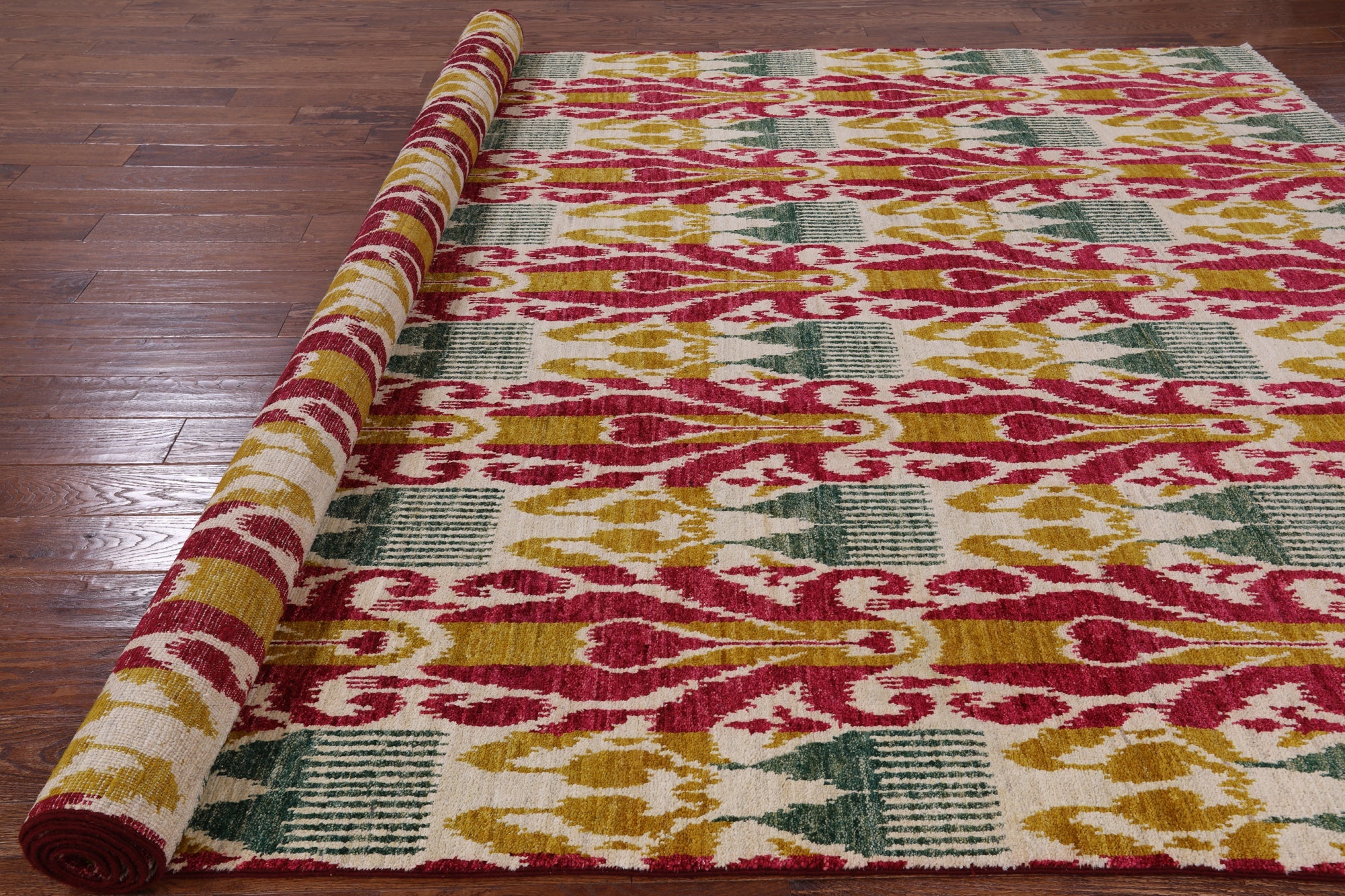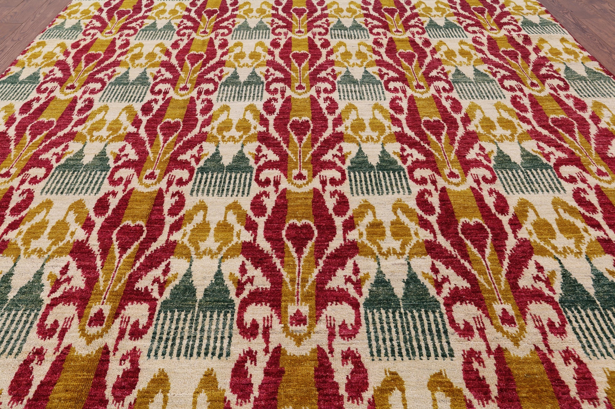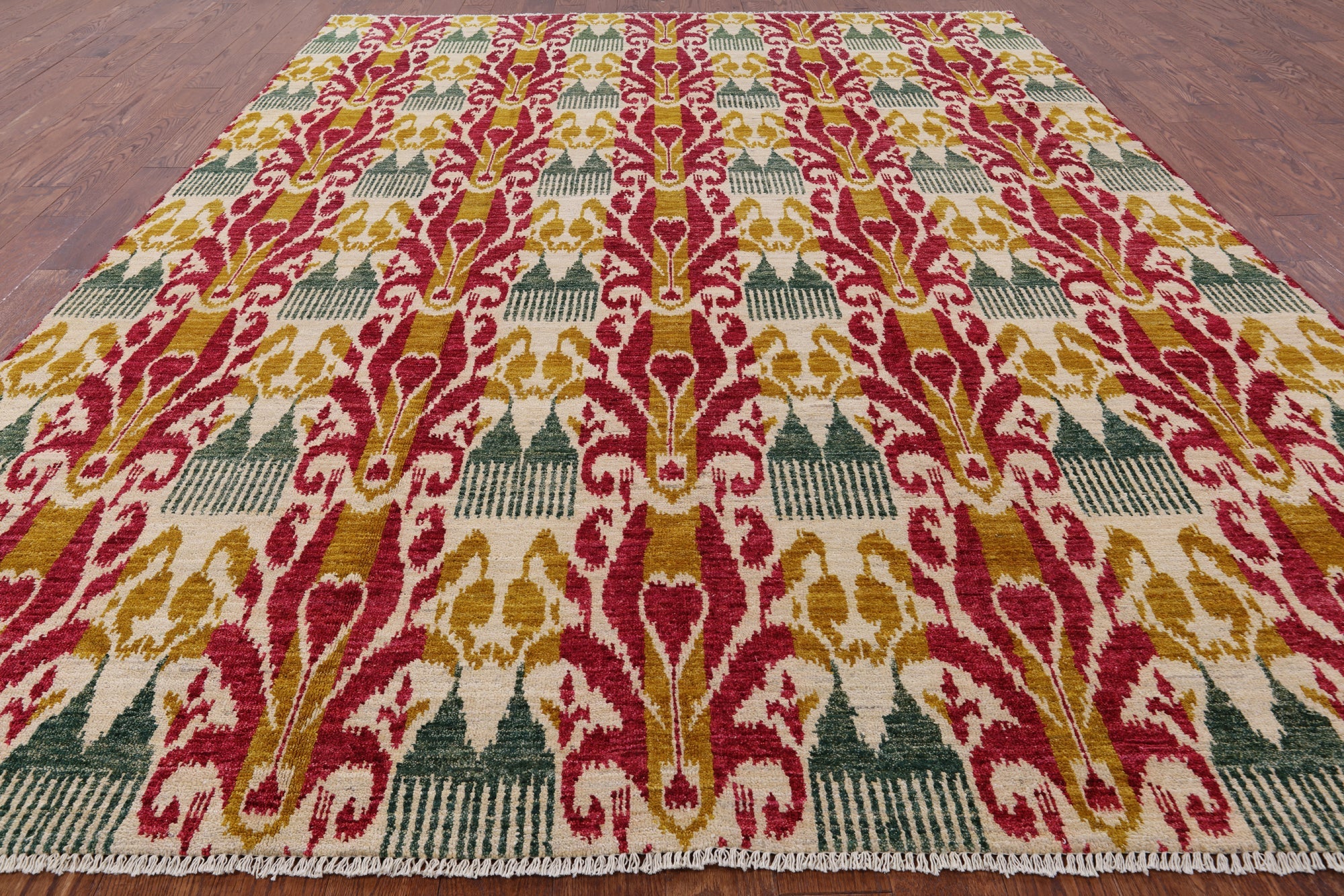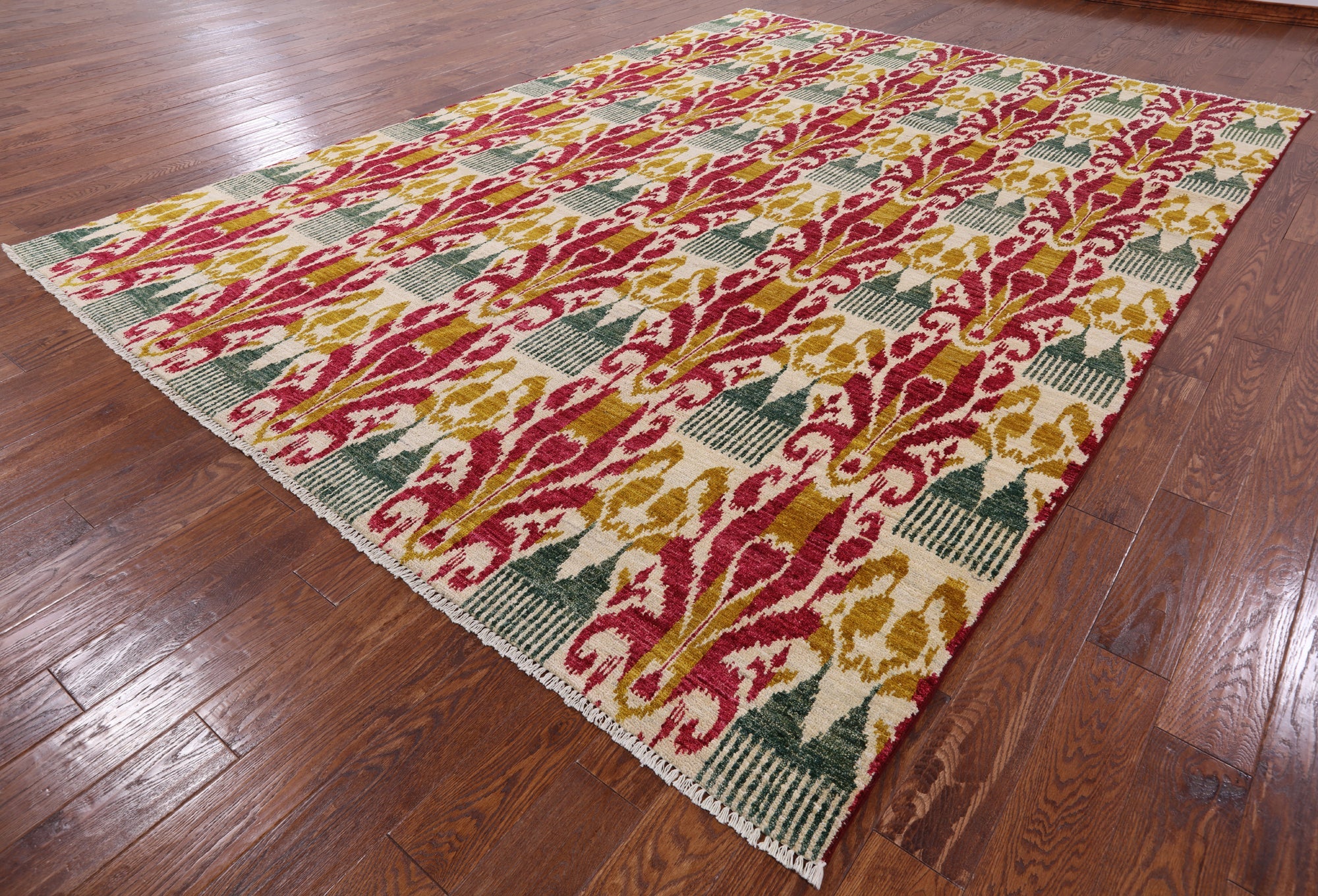 Handmade Ikat Wool Rug 8' 10" X 12' 2" - P5368 is backordered and will ship as soon as it is back in stock.