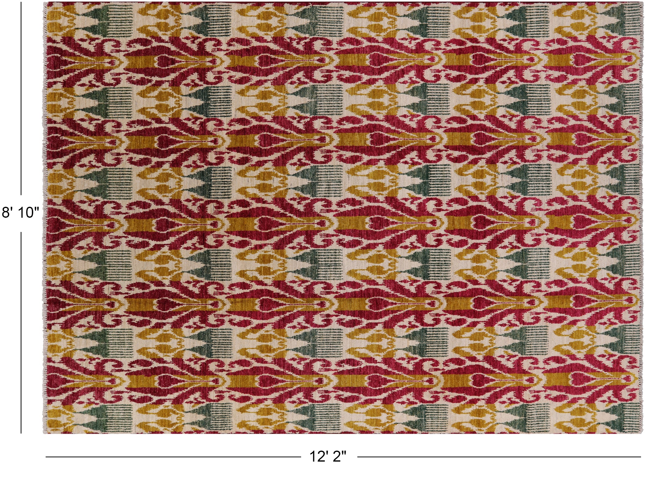 Handmade Ikat Wool Rug 8' 10" X 12' 2" - P5368