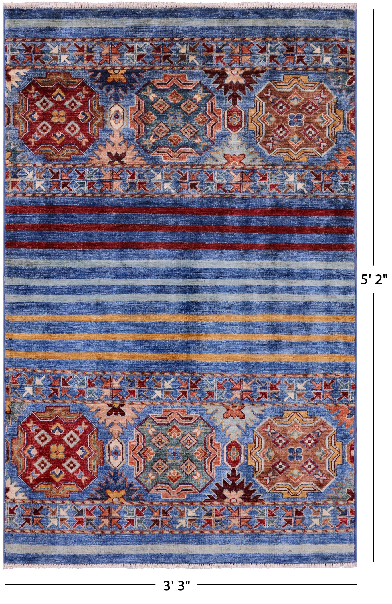Handmade Khorjin Super Kazak Wool Rug 3' 3" X 5' 2" - Q14037