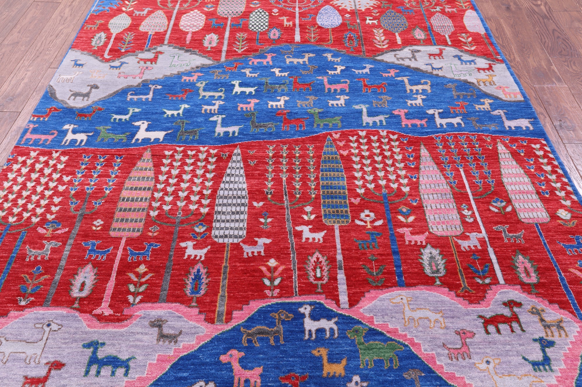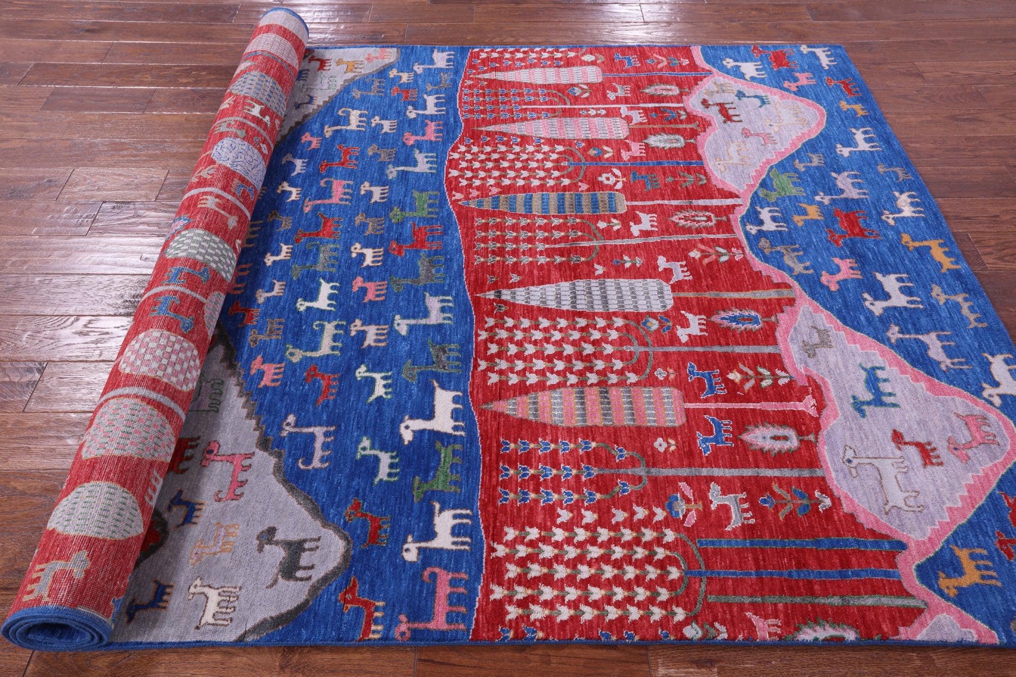 Gabbeh rugs are nothing short of simplistic and tribal, with designs consisting of primarily geometric shapes, animals, and plants. All done in a simplified way and based on the nomadic observation. Commonly brightly colored, these rugs are fun and beautiful and will add a warm touch to any home.