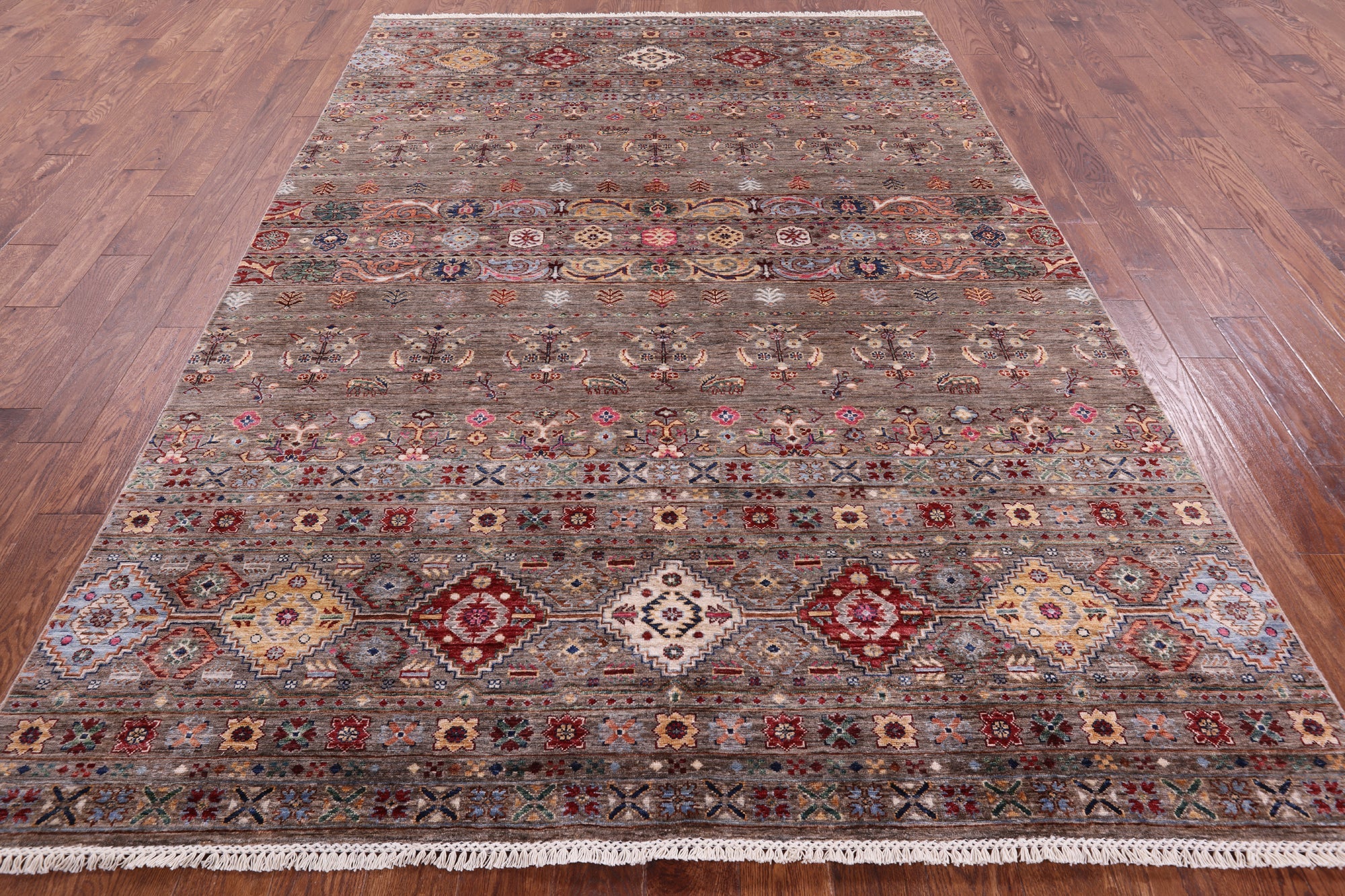 6' 9" X 9' 9" Handmade Persian Gabbeh Tribal Wool Rug - Q10123 is backordered and will ship as soon as it is back in stock.