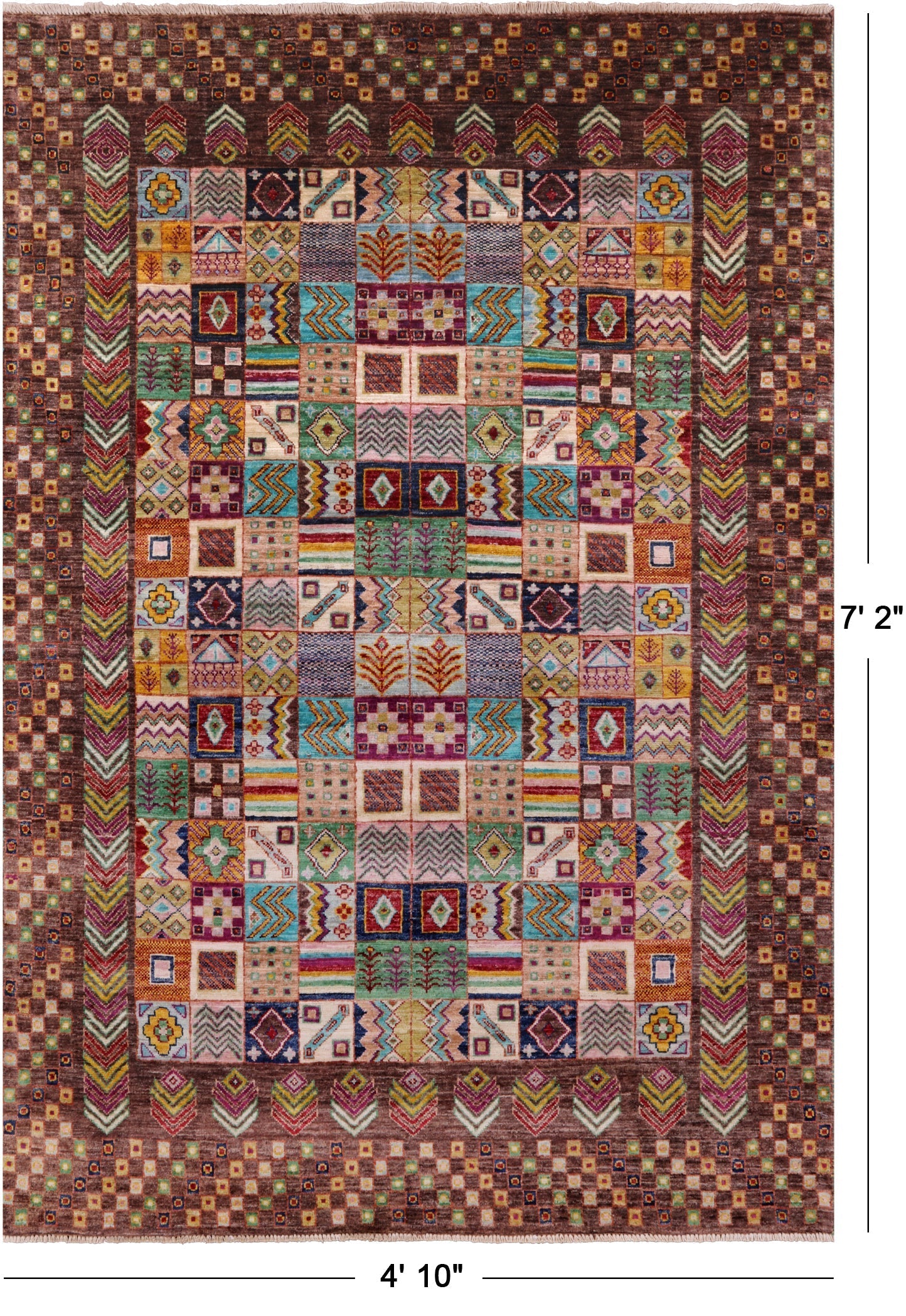 Handmade Persian Gabbeh Tribal Wool Rug 4' 10" X 7' 2" - Q16764
