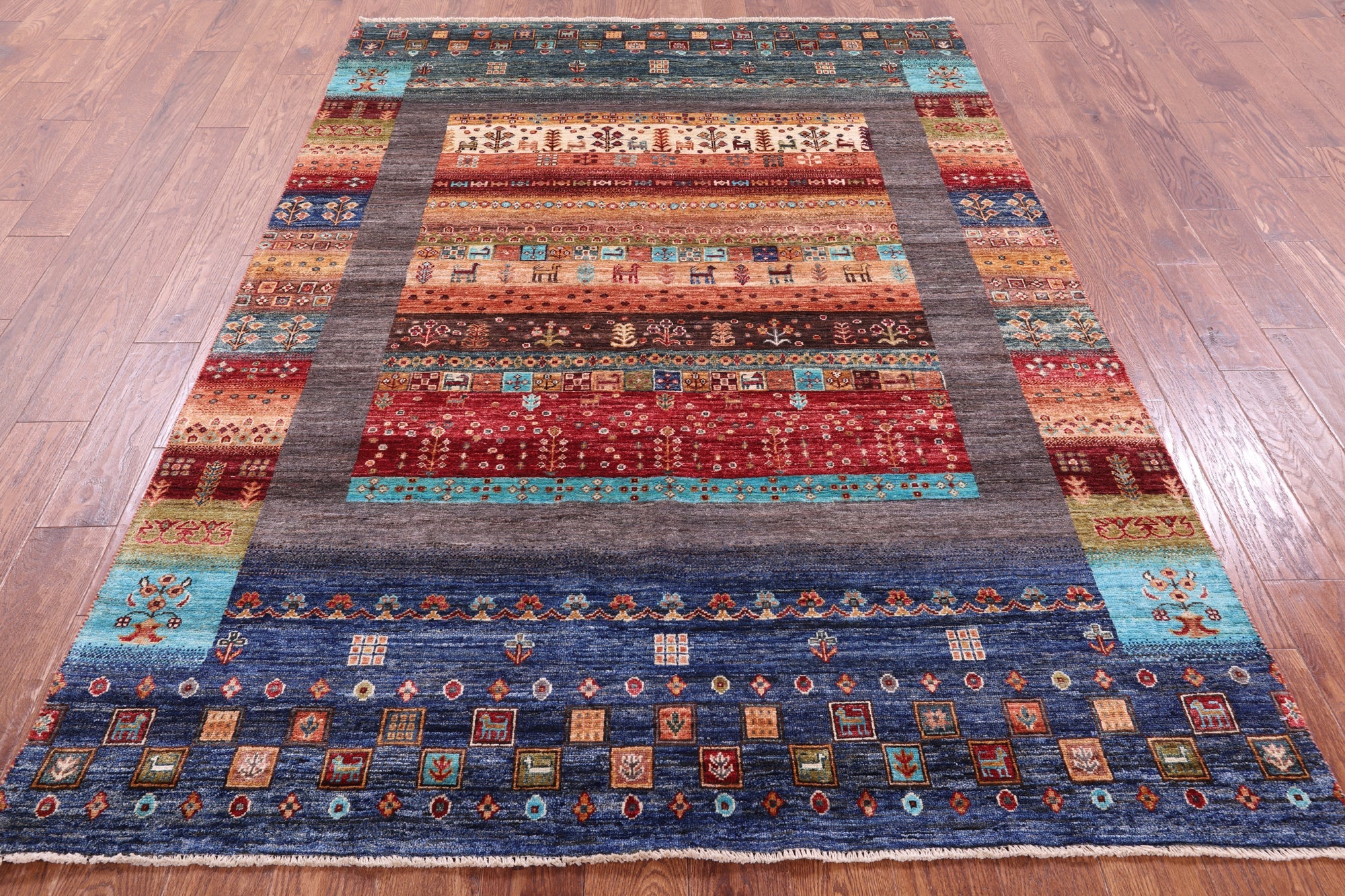 5' 7" X 7' 11" Handmade Persian Gabbeh Tribal Wool Rug - Q16786