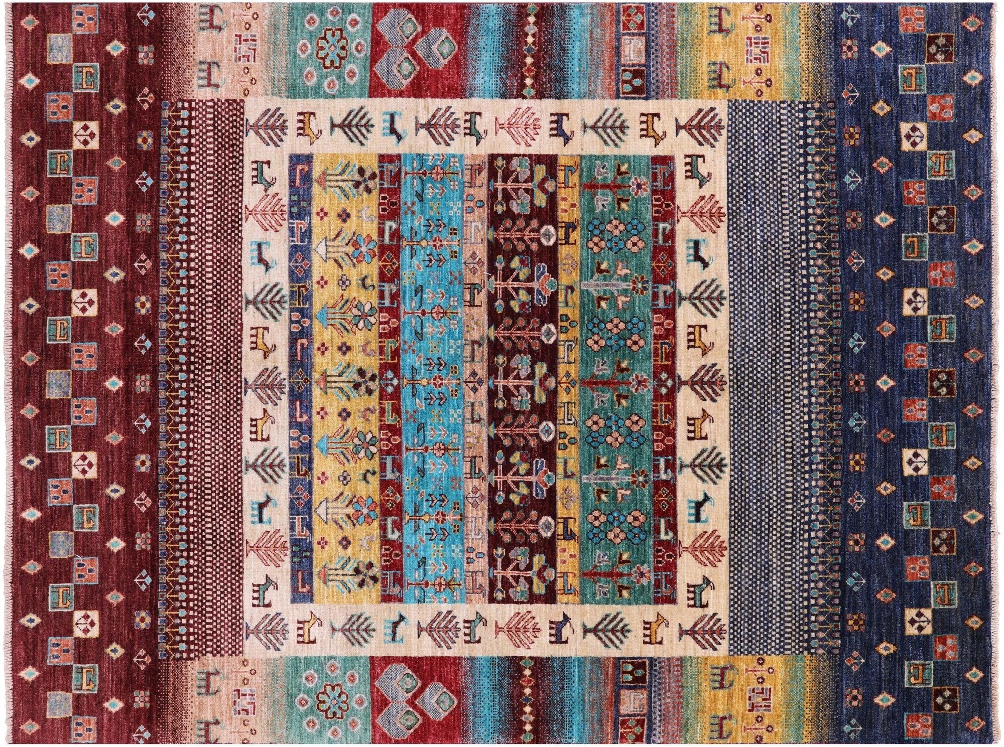 5' 1" X 6' 9" Handmade Persian Gabbeh Tribal Wool Rug - Q17230