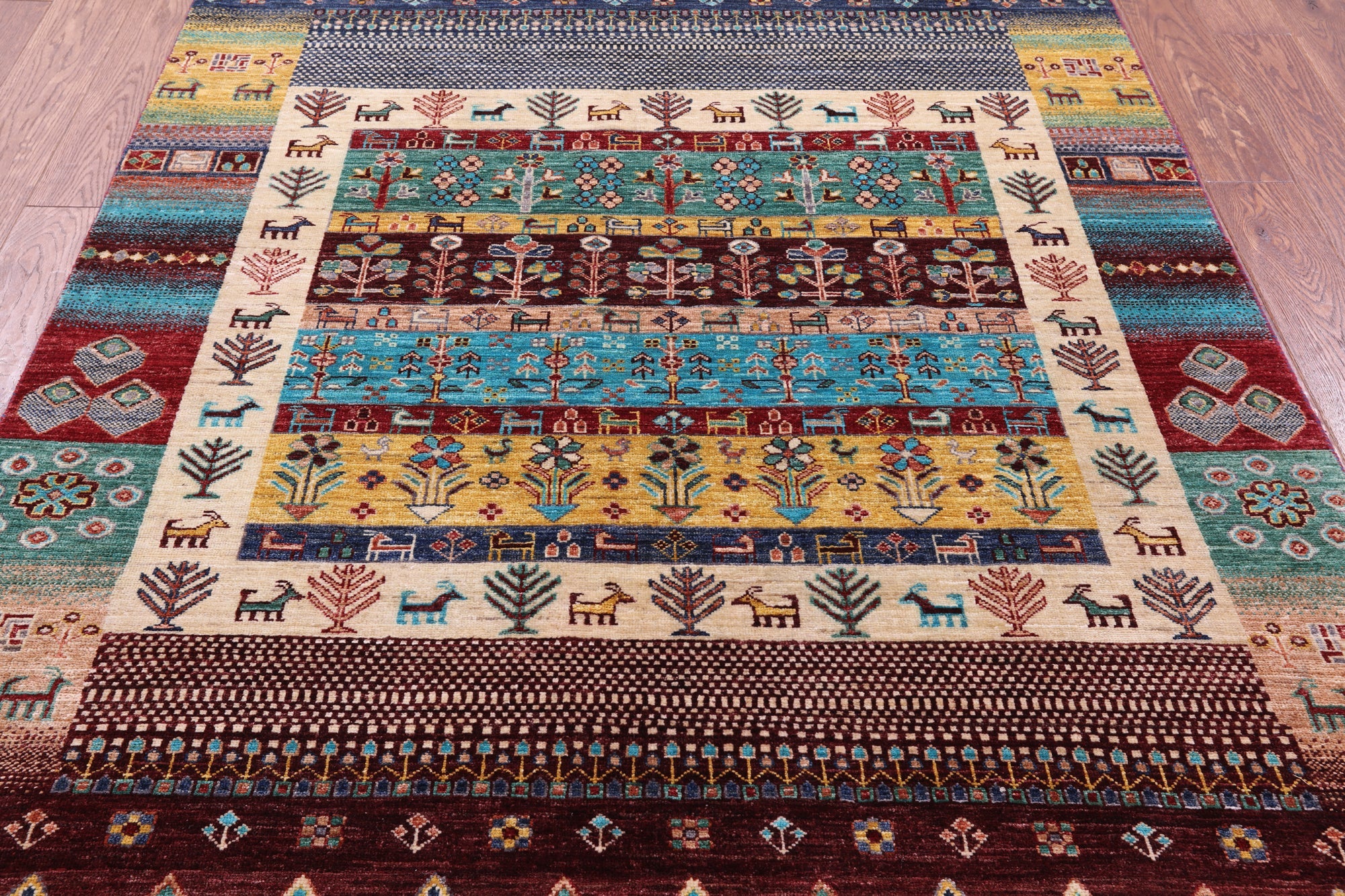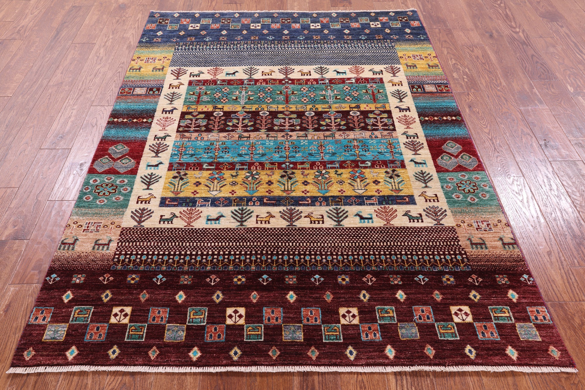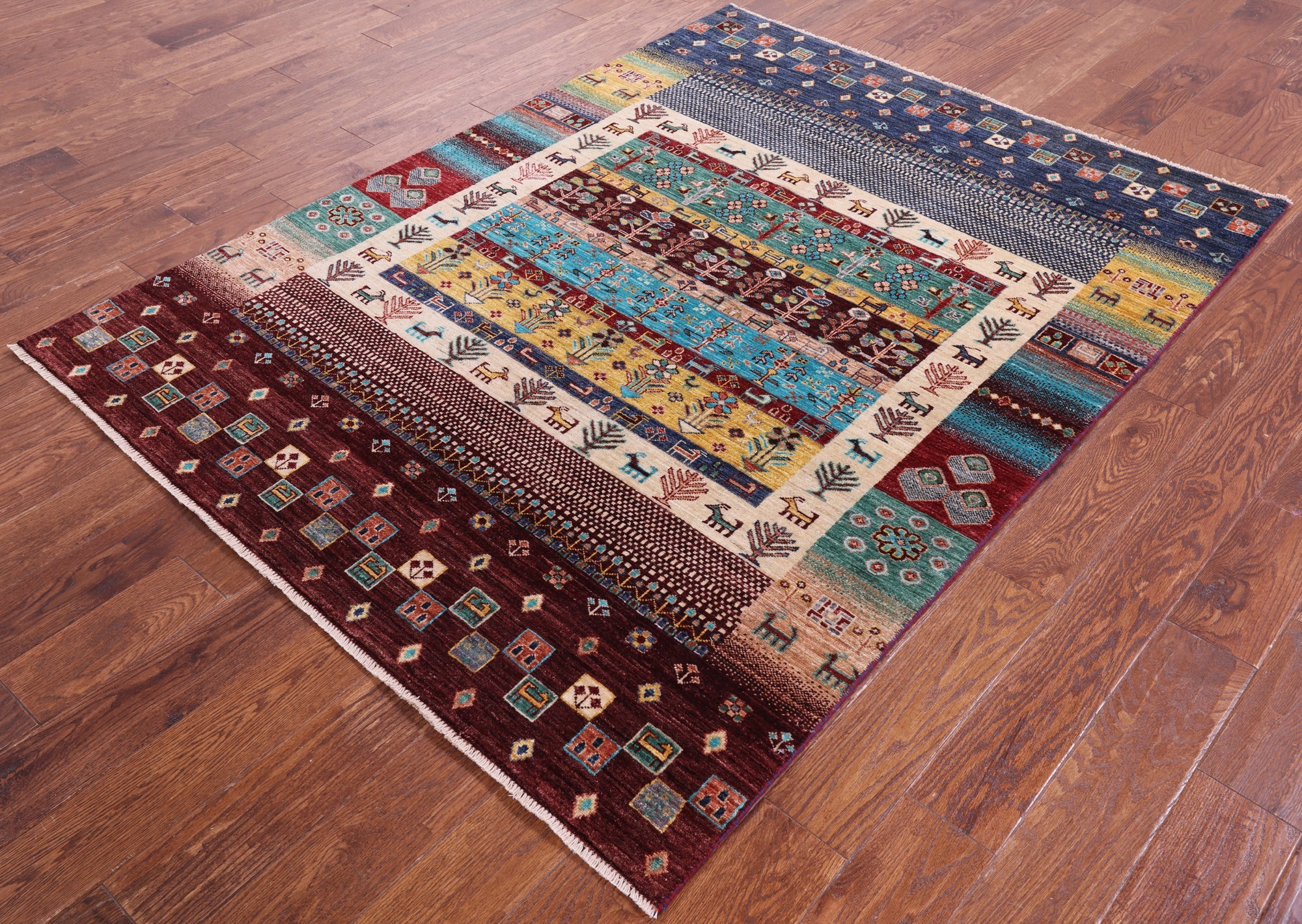 5' 1" X 6' 9" Handmade Persian Gabbeh Tribal Wool Rug - Q17230 is backordered and will ship as soon as it is back in stock.