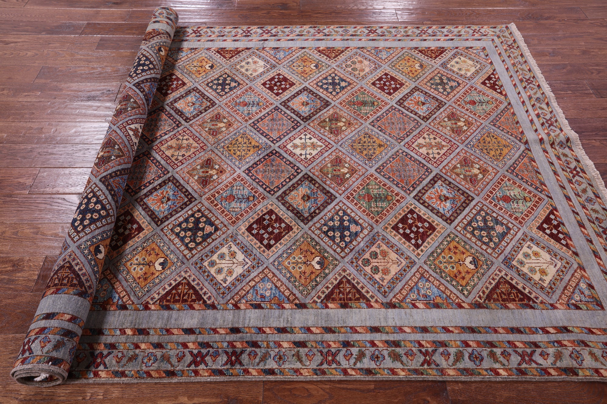 Gabbeh rugs are nothing short of simplistic and tribal, with designs consisting of primarily geometric shapes, animals, and plants. All done in a simplified way and based on the nomadic observation. Commonly brightly colored, these rugs are fun and beautiful and will add a warm touch to any home.