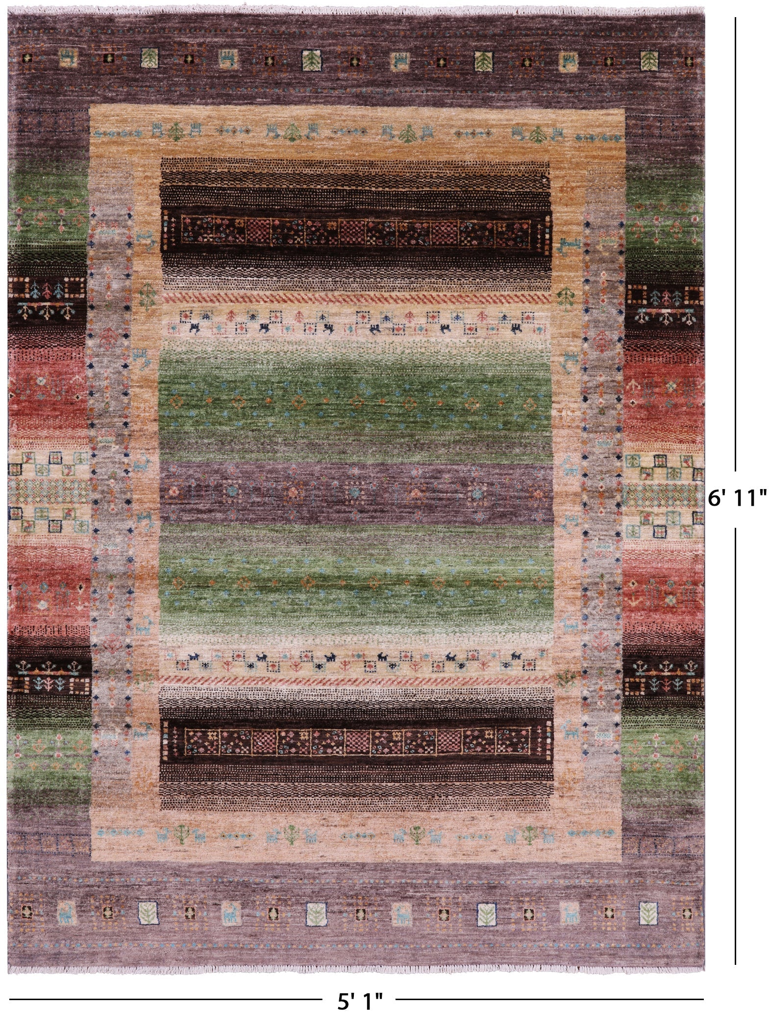 Handmade Tribal Persian Gabbeh Wool Rug 5' 1" X 6' 11" - Q14457