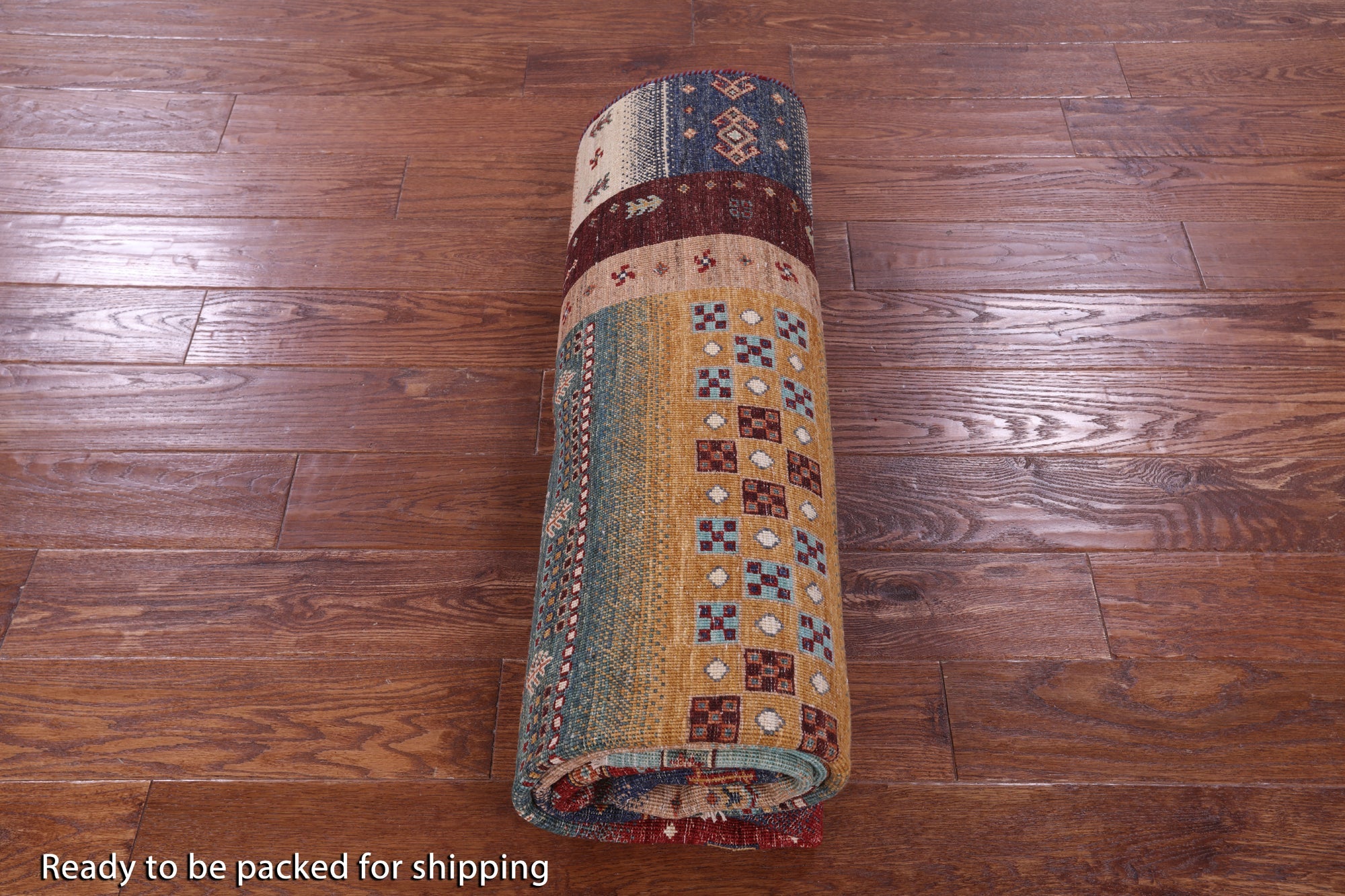 Handmade Tribal Persian Gabbeh Wool Rug 5' 8" X 8' 4" - Q16504 is backordered and will ship as soon as it is back in stock.