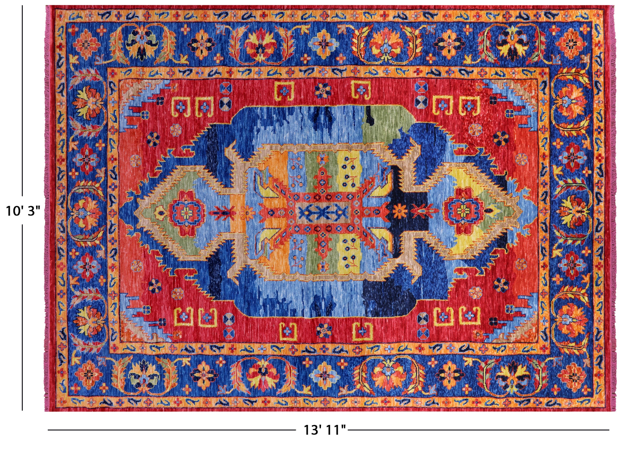 10' 3" X 13' 11" Heriz Serapi Hand-Knotted Wool Rug - Q19771