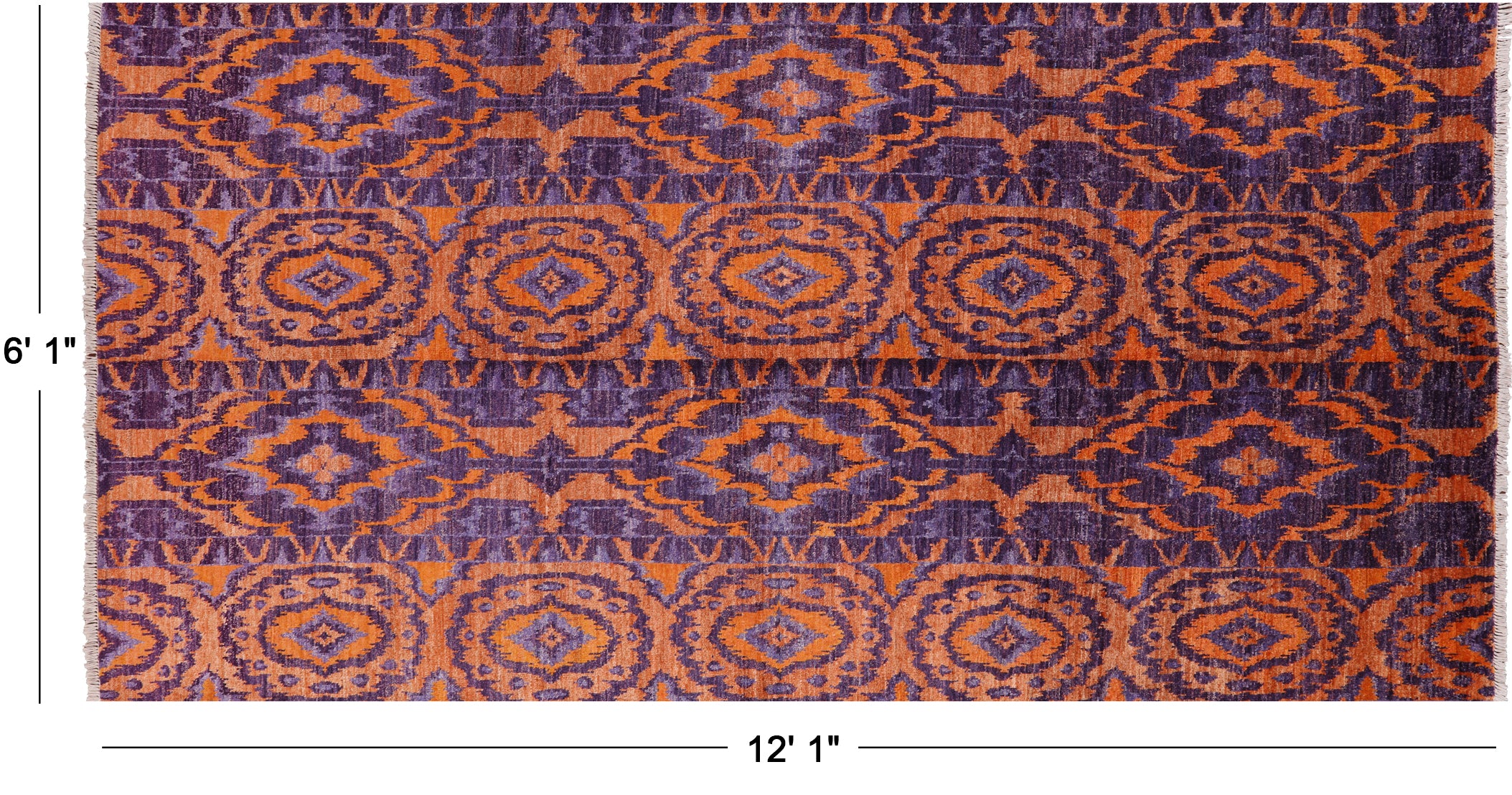 6' 1" X 12' 1" Ikat Hand-Knotted Wool Area Rug - H8821