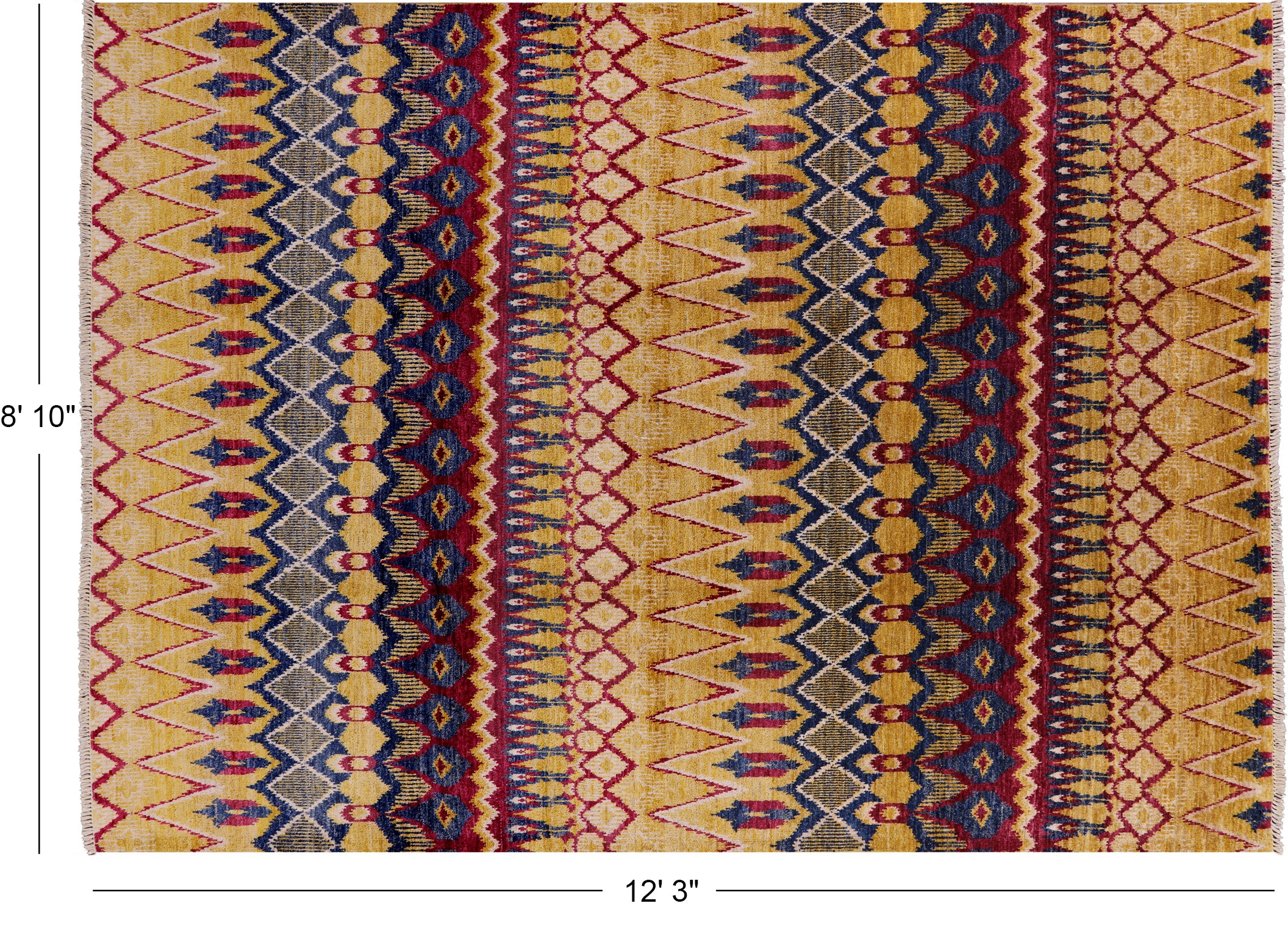 8' 10" X 12' 3" Ikat Hand-Knotted Wool Rug - P6341
