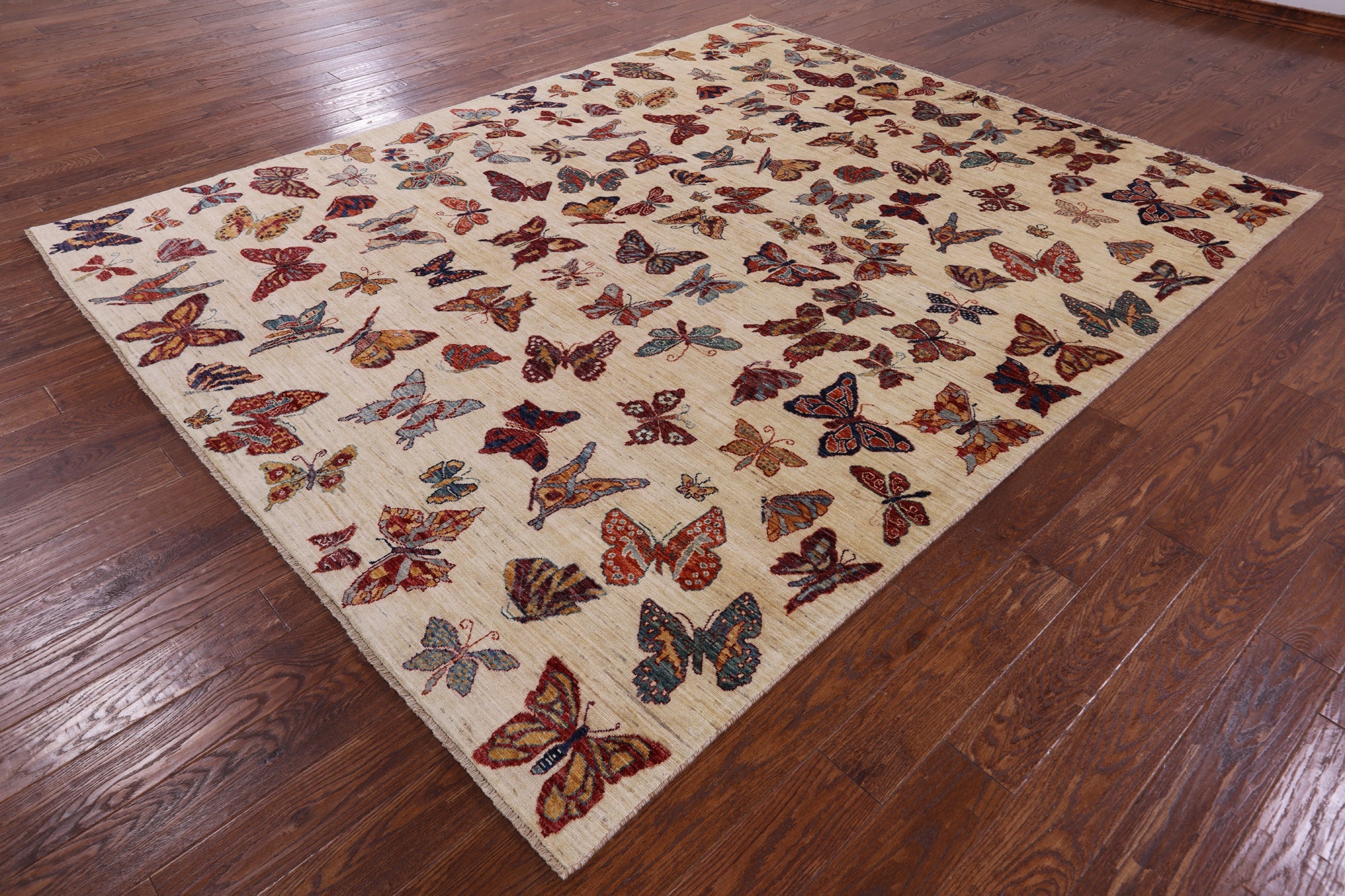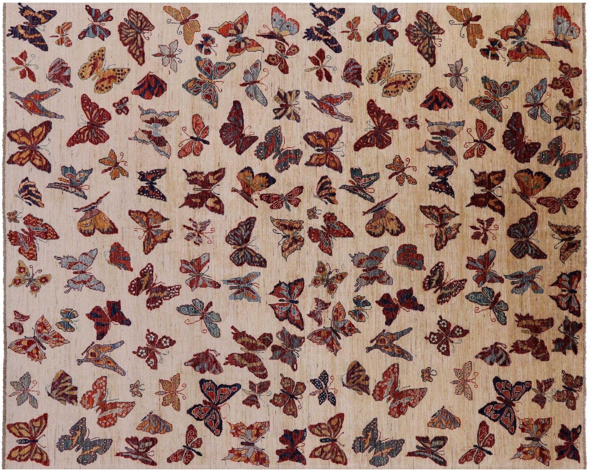 Ivory 8' 0" X 9' 10" Butterflies Persian Gabbeh Handmade Wool Rug - Q12441