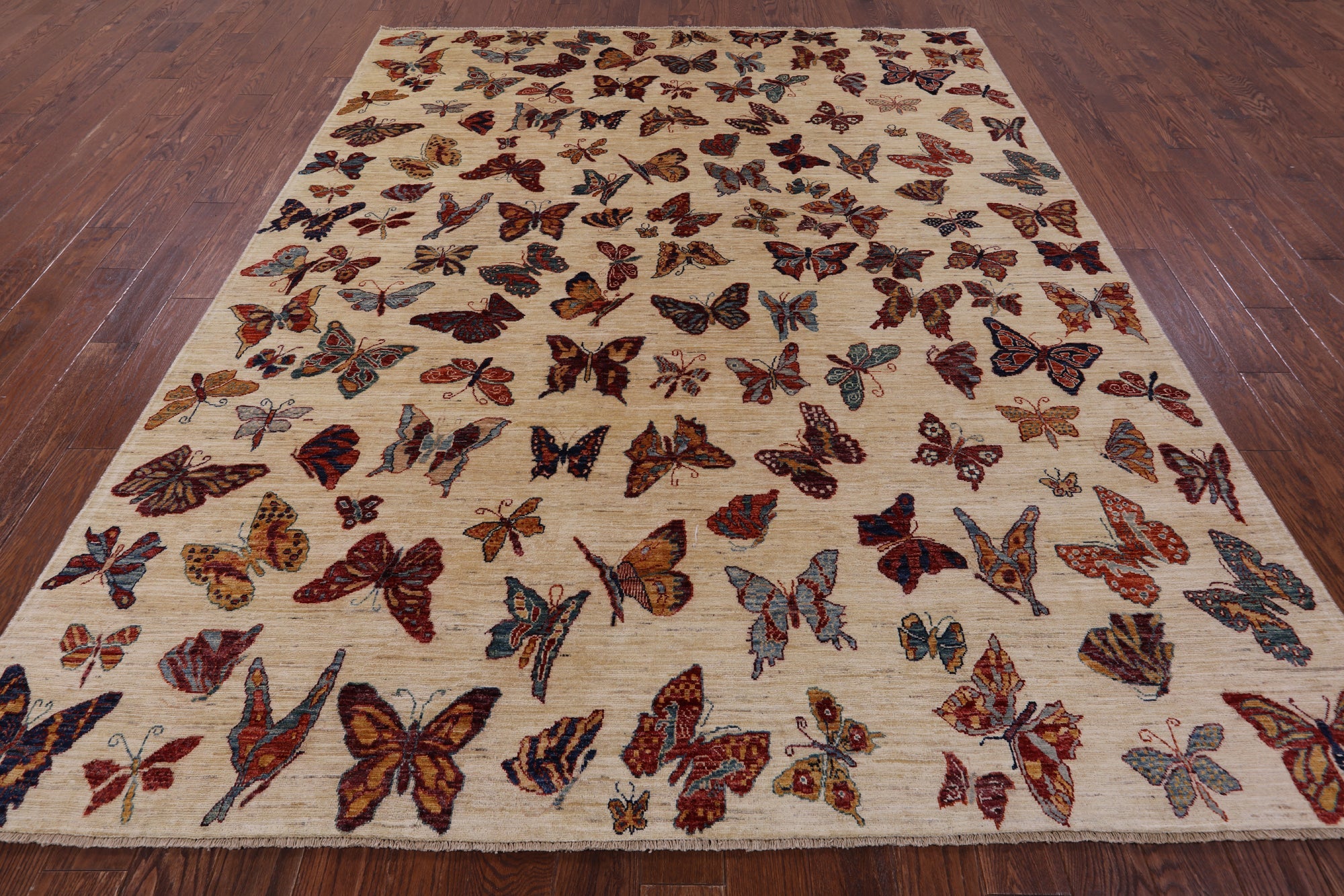 Ivory 8' 0" X 9' 10" Butterflies Persian Gabbeh Handmade Wool Rug - Q12441 is backordered and will ship as soon as it is back in stock.