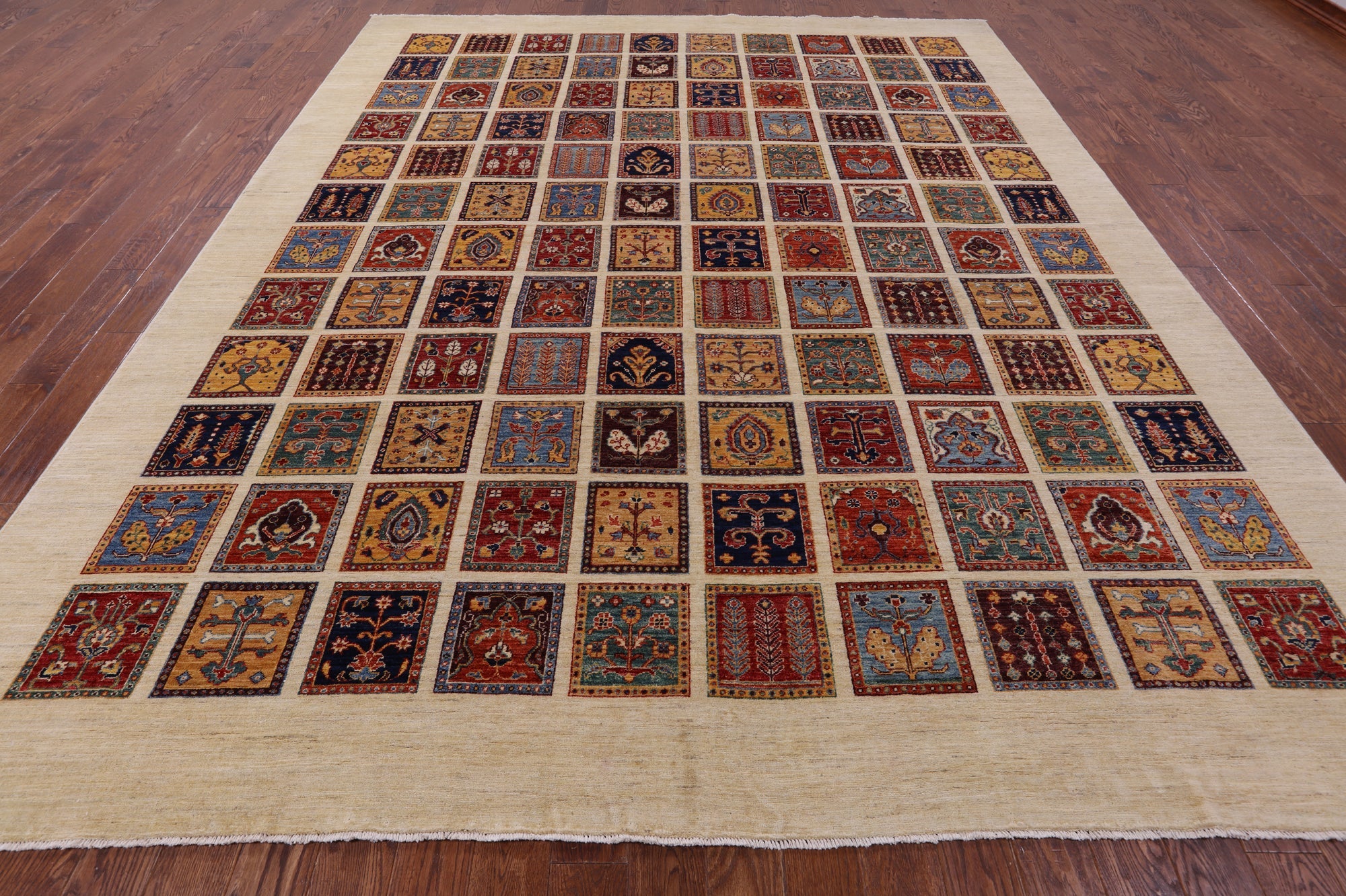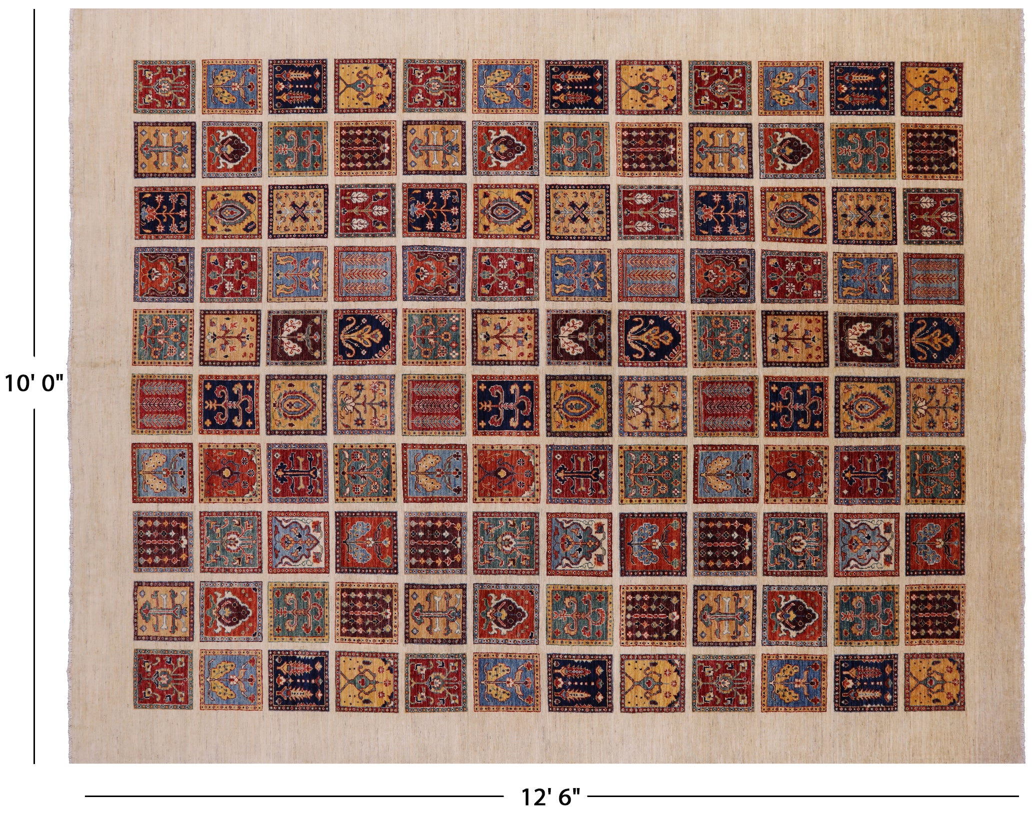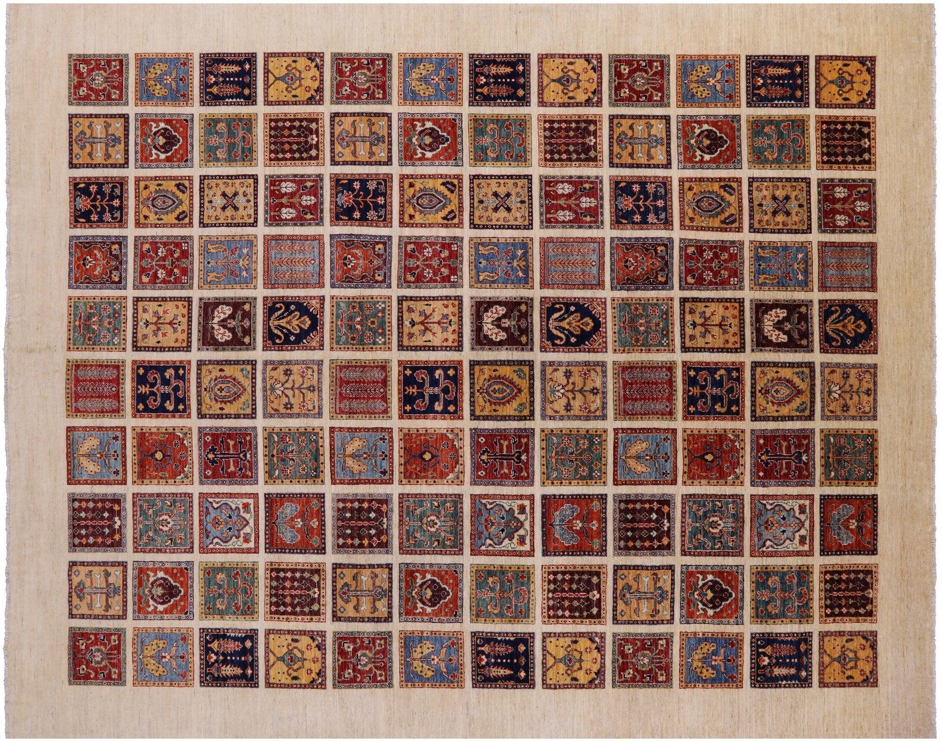 Ivory 10' 0" X 12' 6" Hand-Knotted Garden Design Persian Wool Rug - Q10955