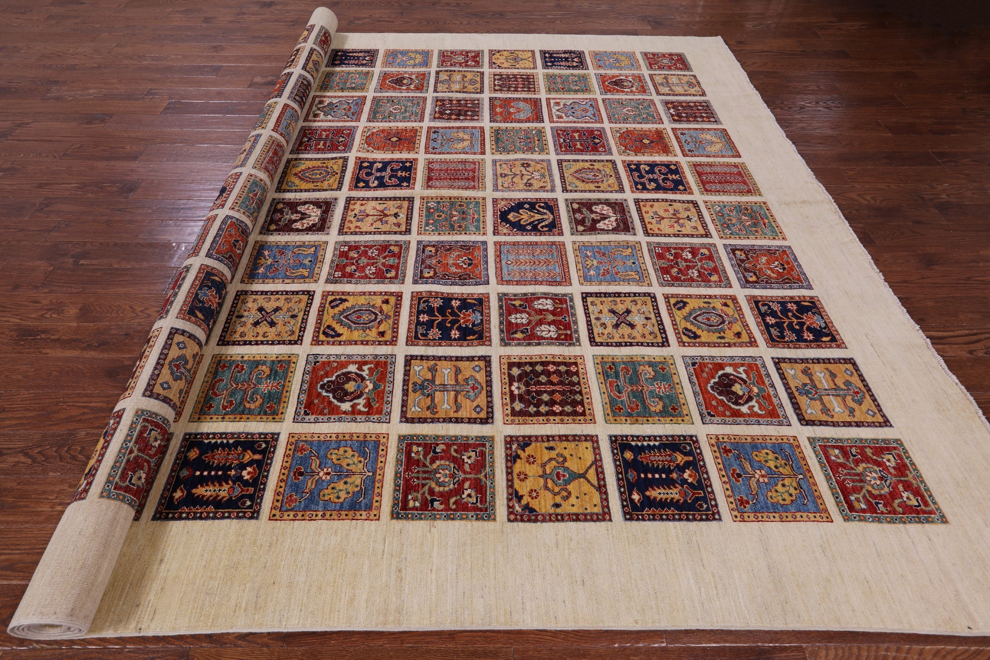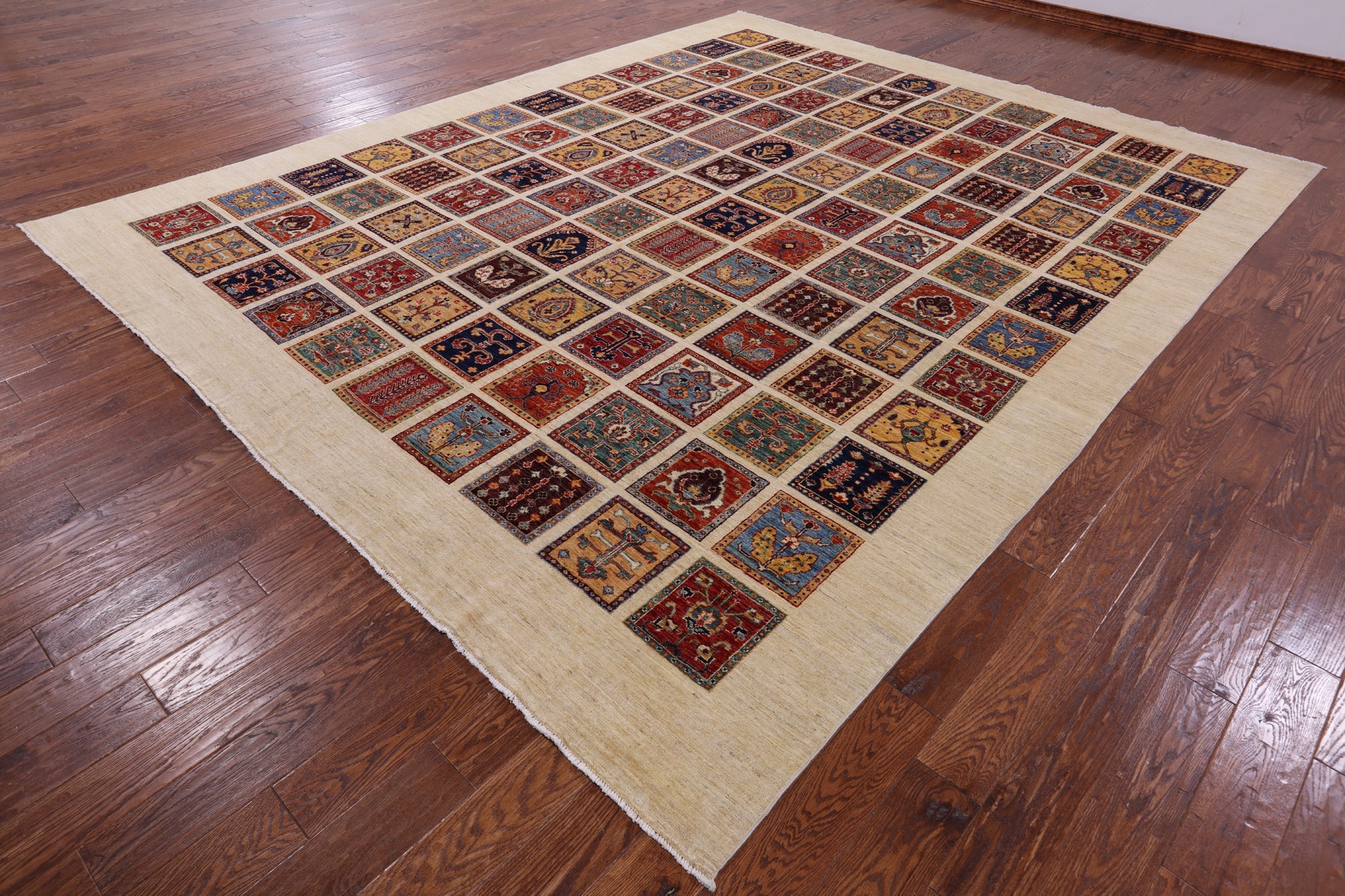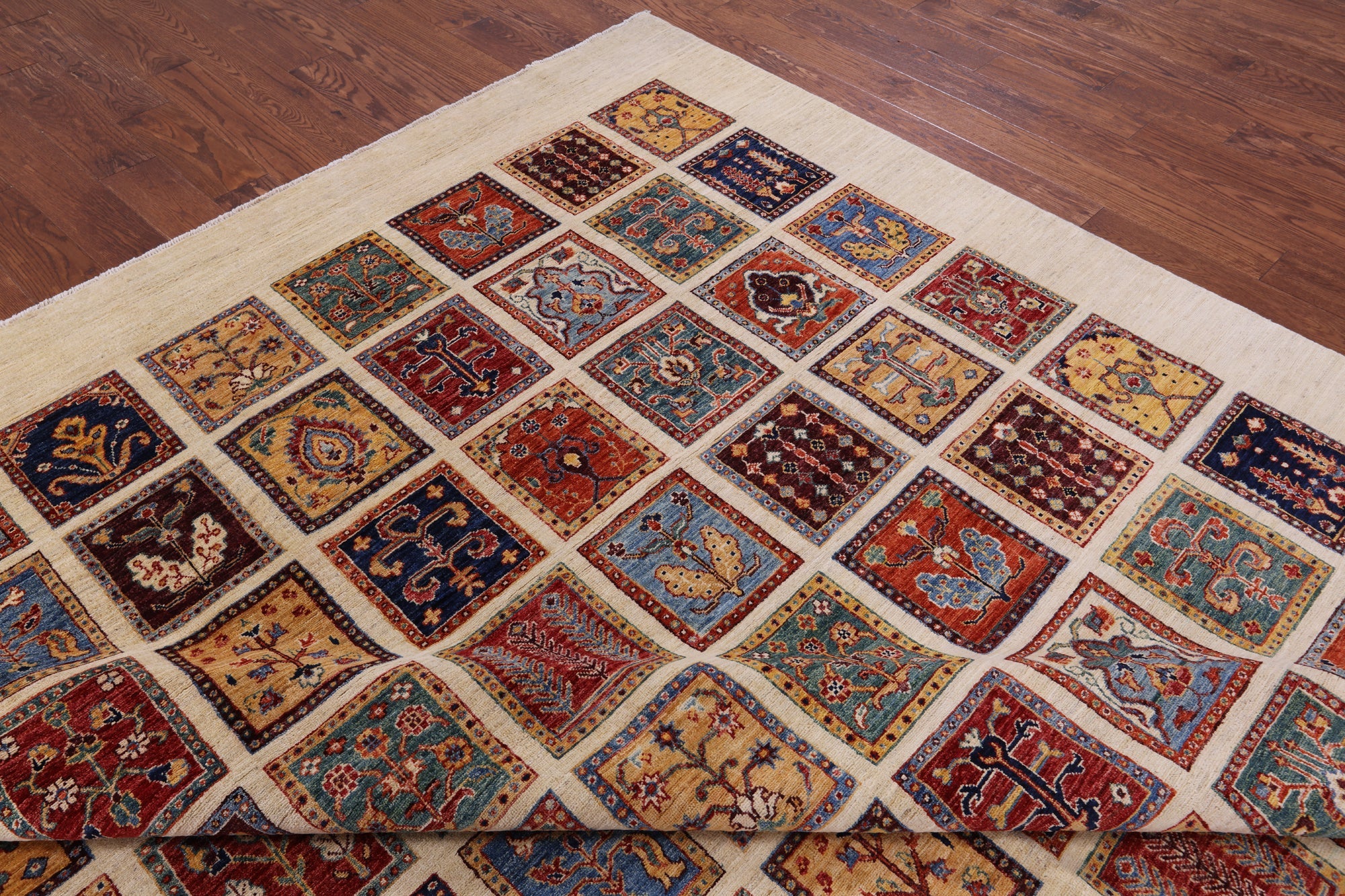 Ivory 10' 0" X 12' 6" Hand-Knotted Garden Design Persian Wool Rug - Q10955