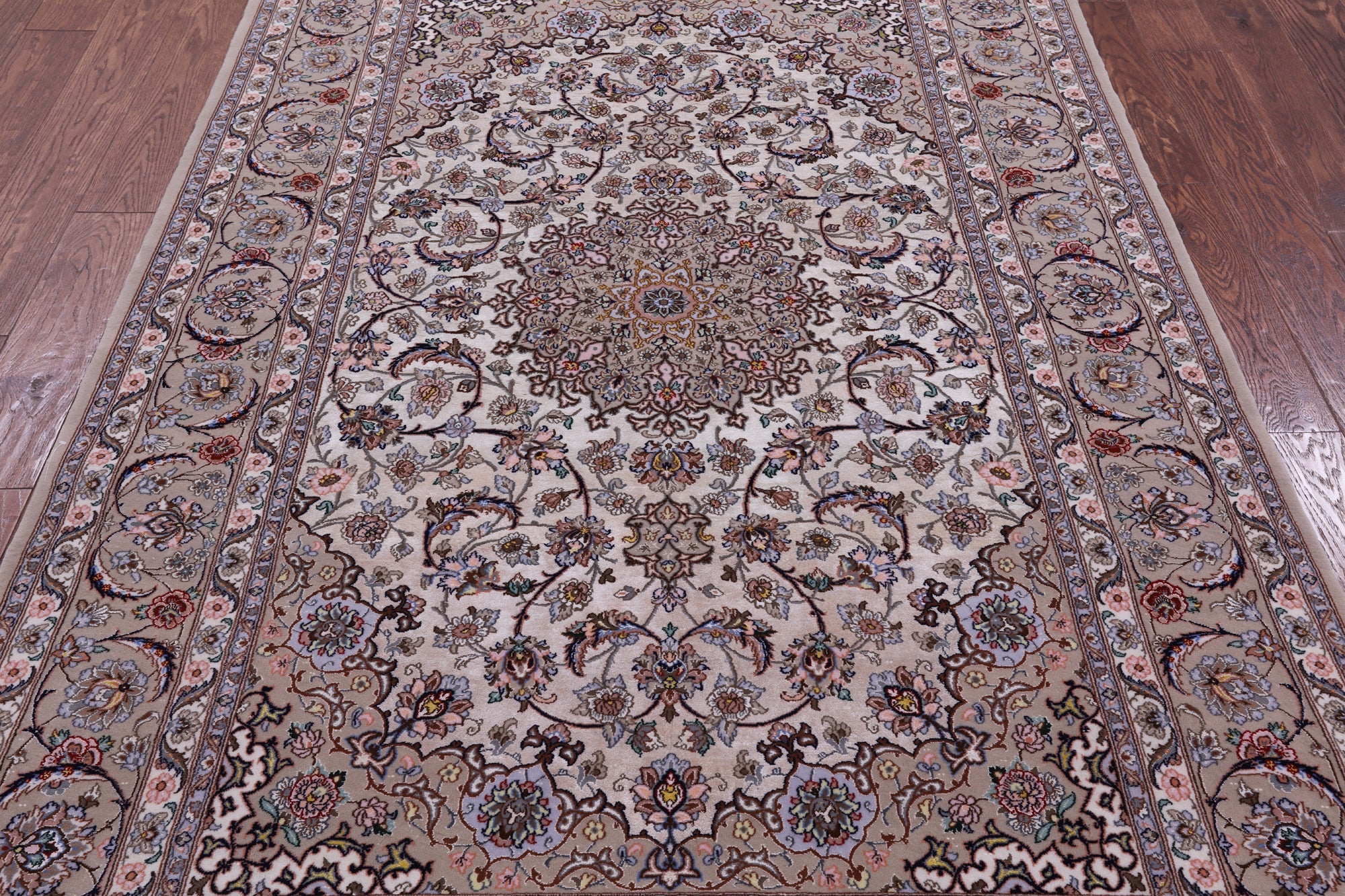 Isfahan rugs date back to the seventeenth century. Isfahan was then the capital of Persia. These rugs are known to be classic and are hand knotted with either silk or wool foundations. They use variety vegetable dye colors such as reds, blues, ivory, beige, black and much more. Isfahan rugs are one of the highest quality rugs in the world.