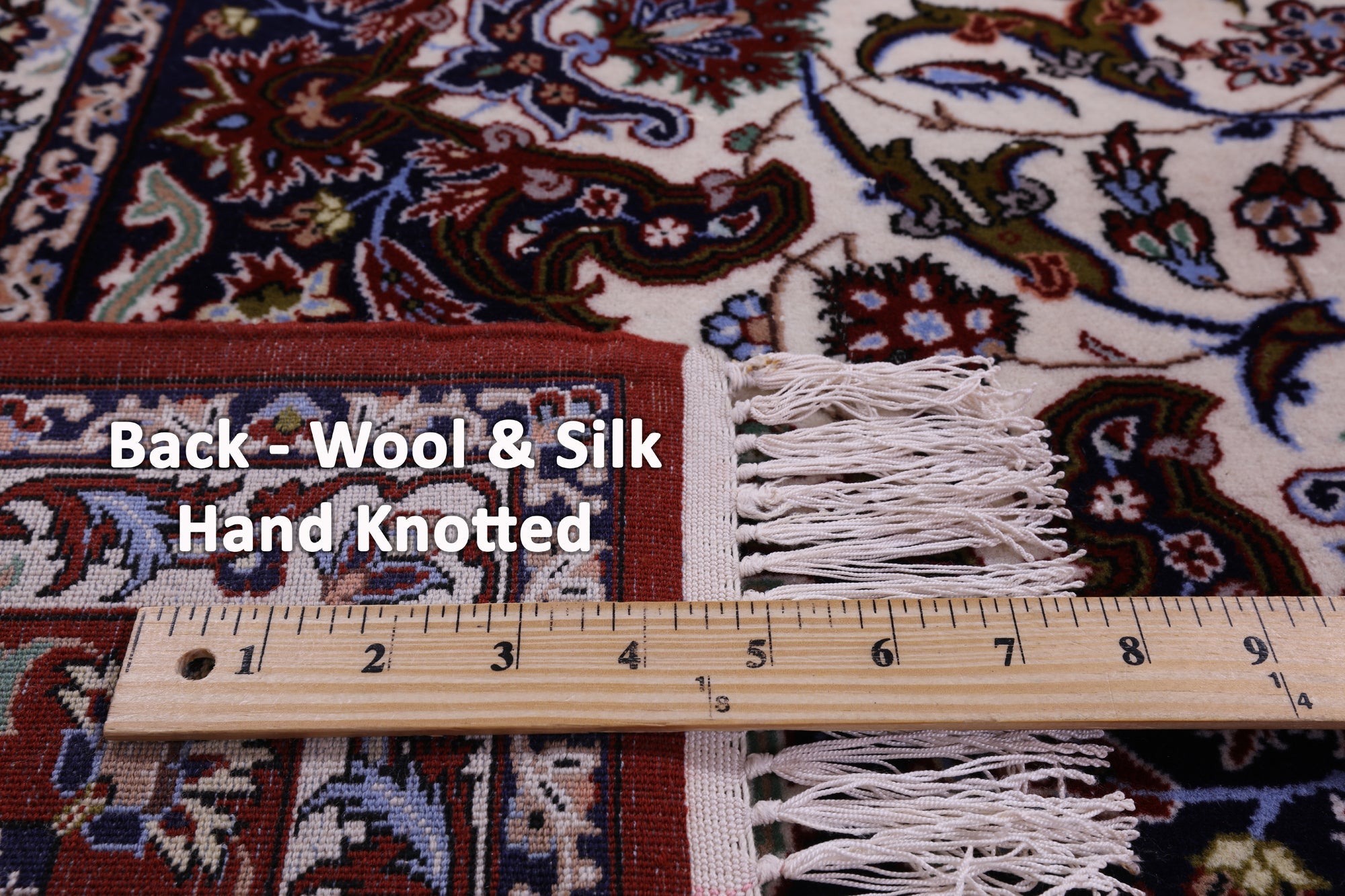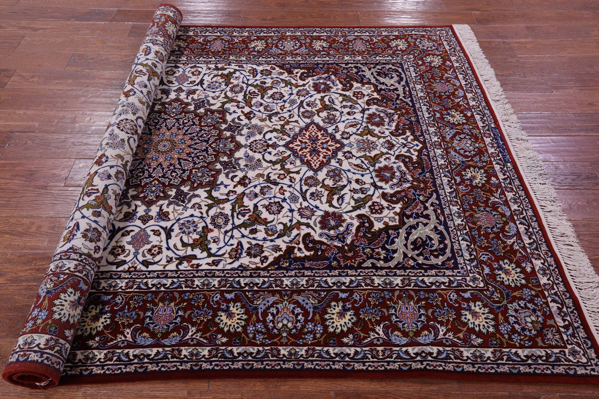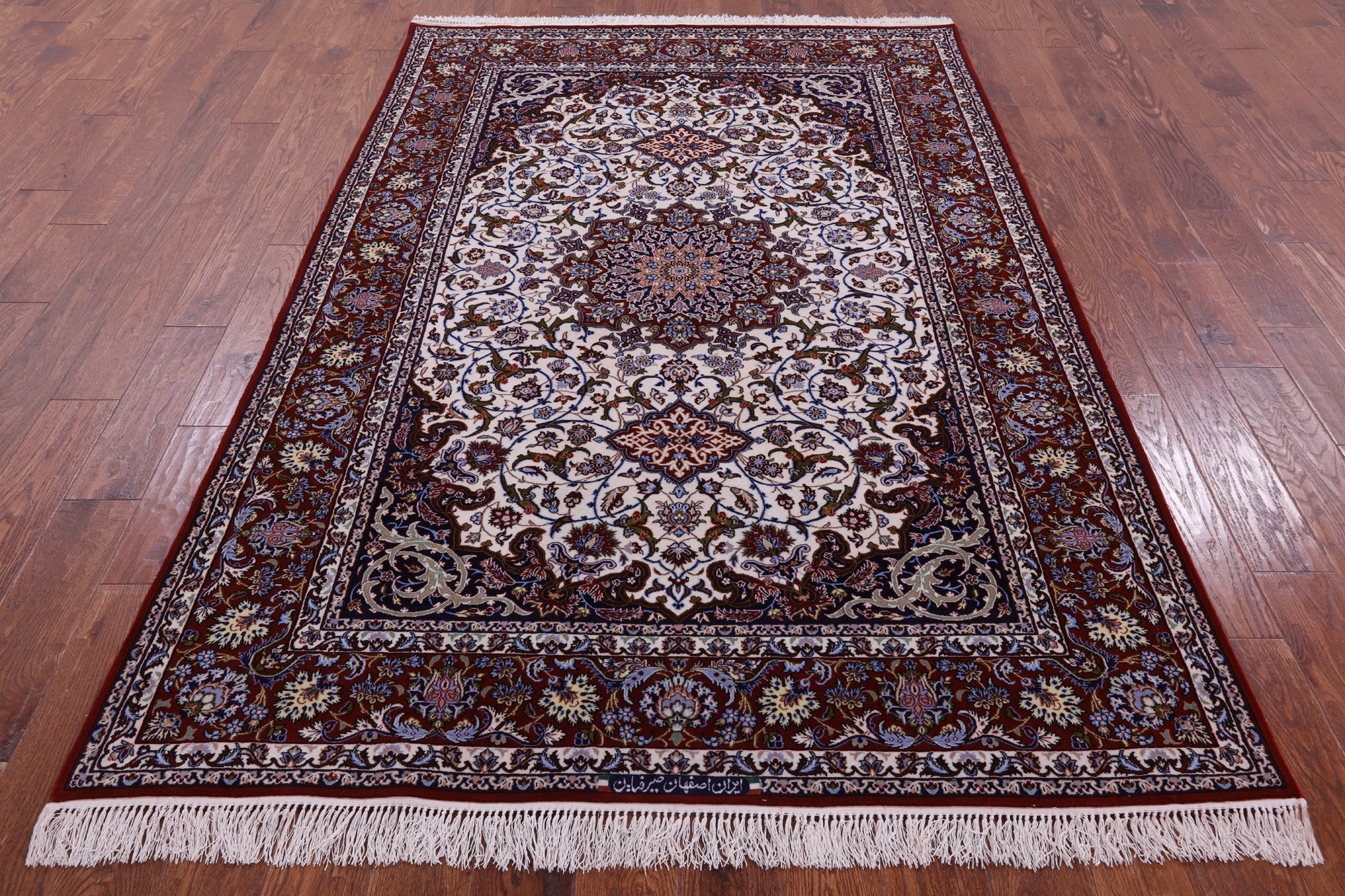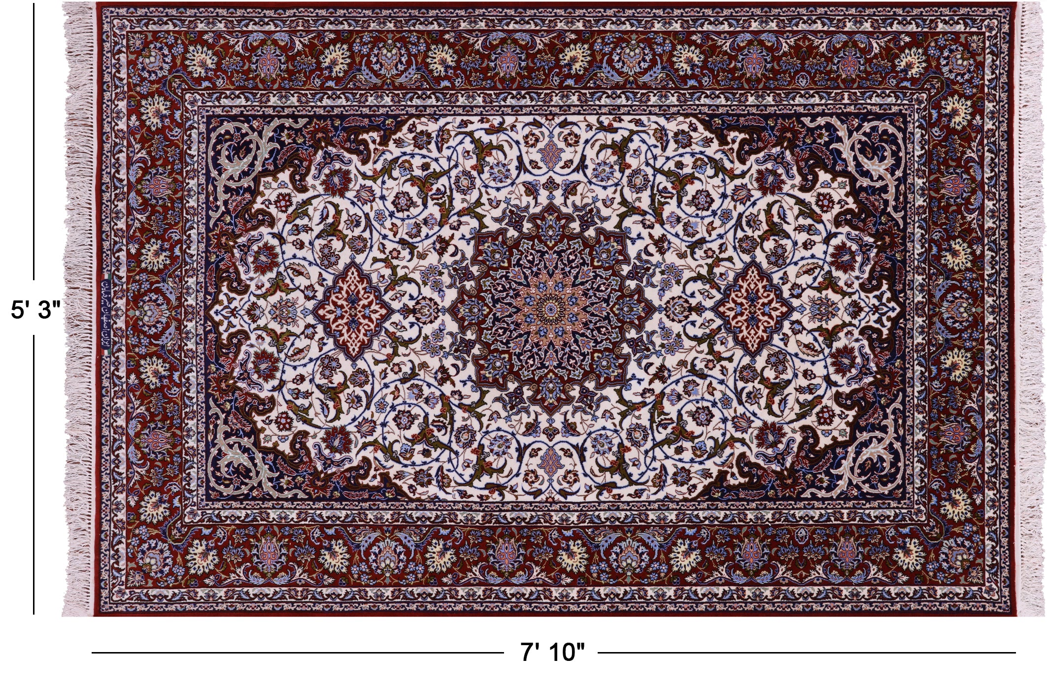 Ivory 5' 3" X 7' 10" Hand Knotted Signed Persian Isfahan Wool & Silk Rug - SA2672