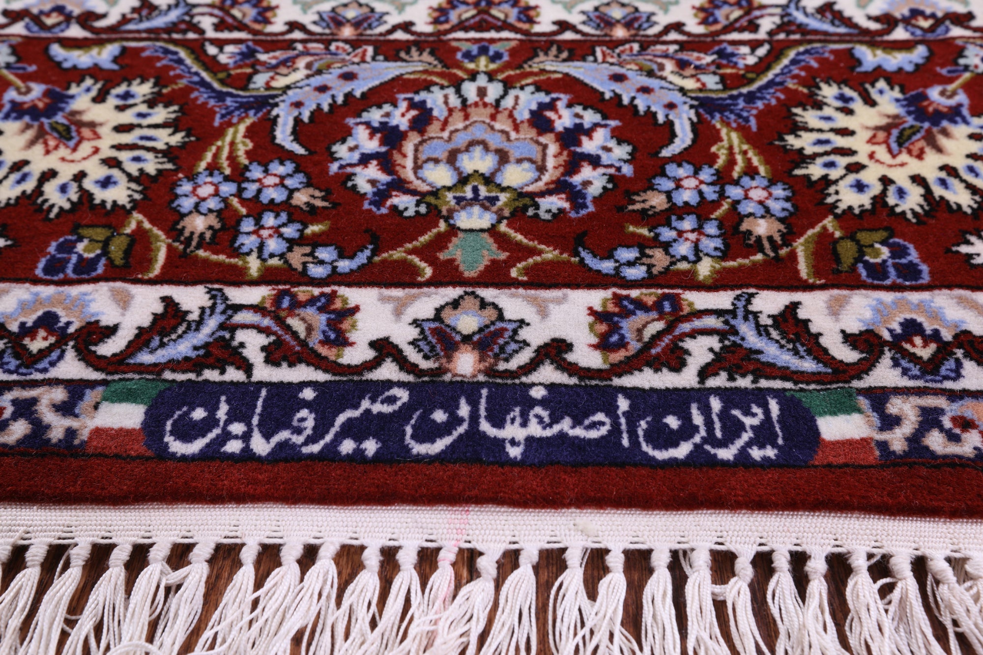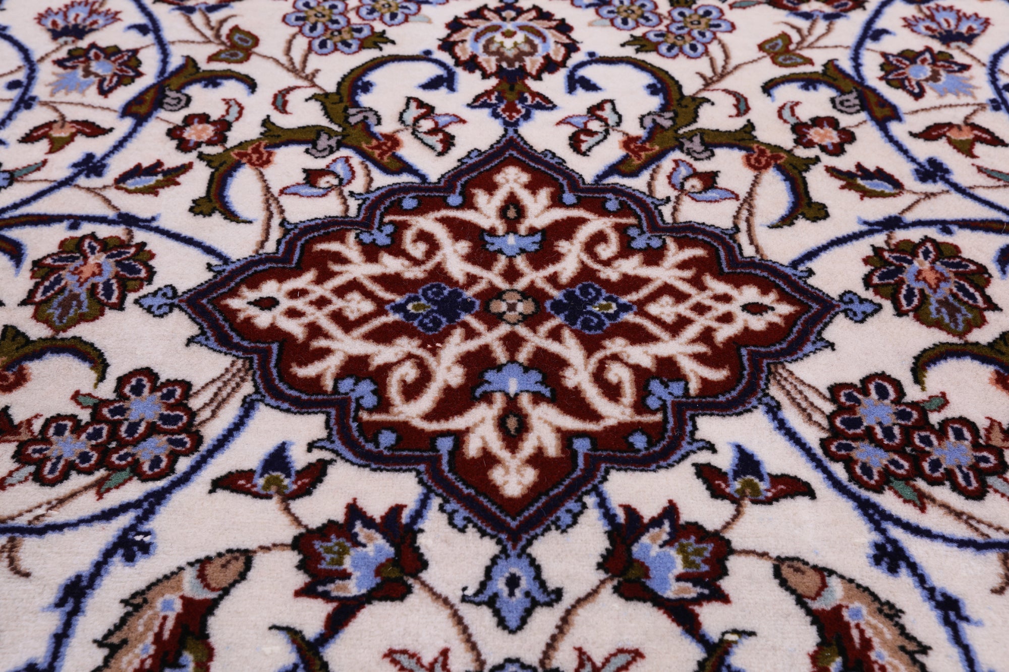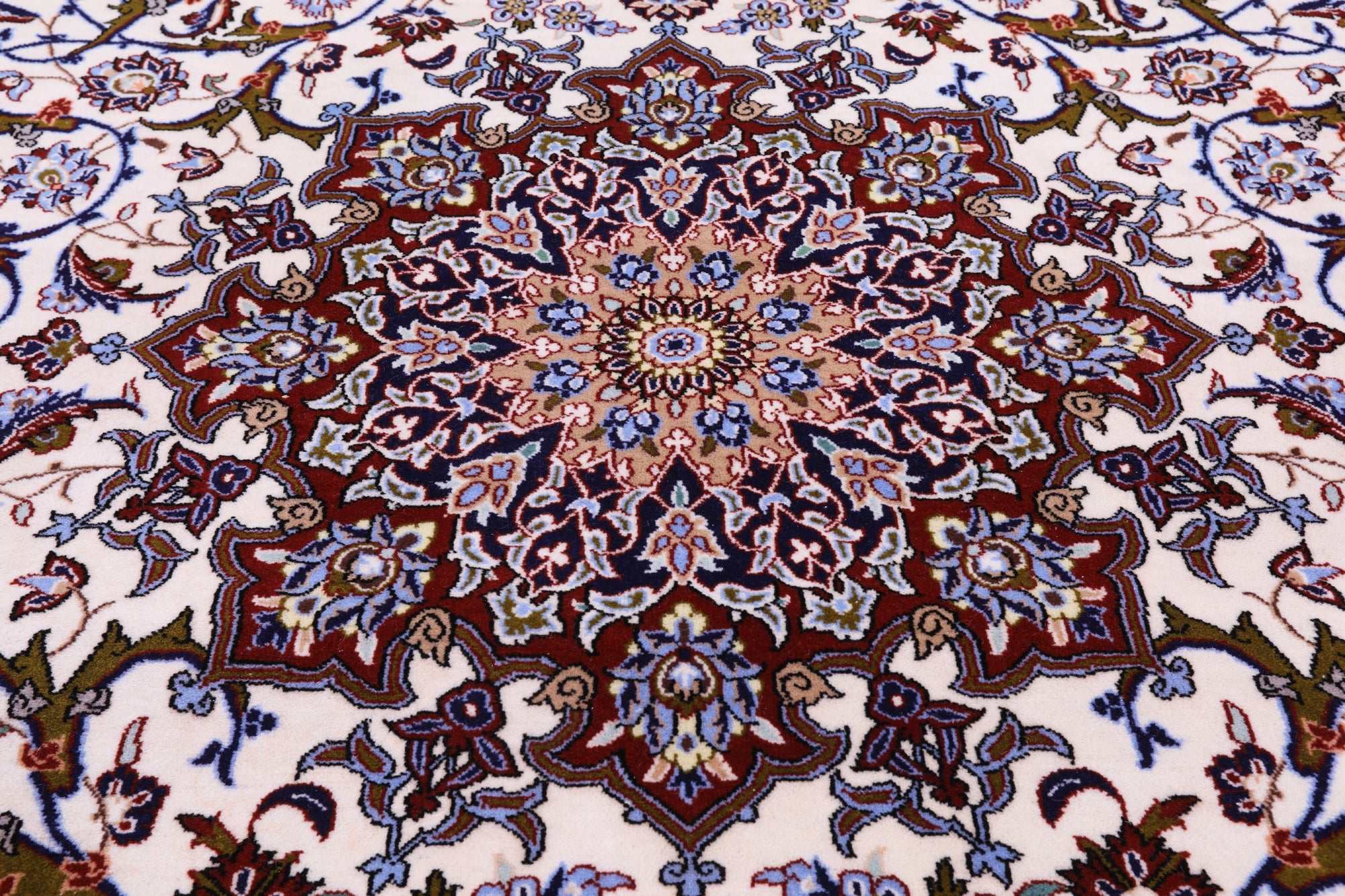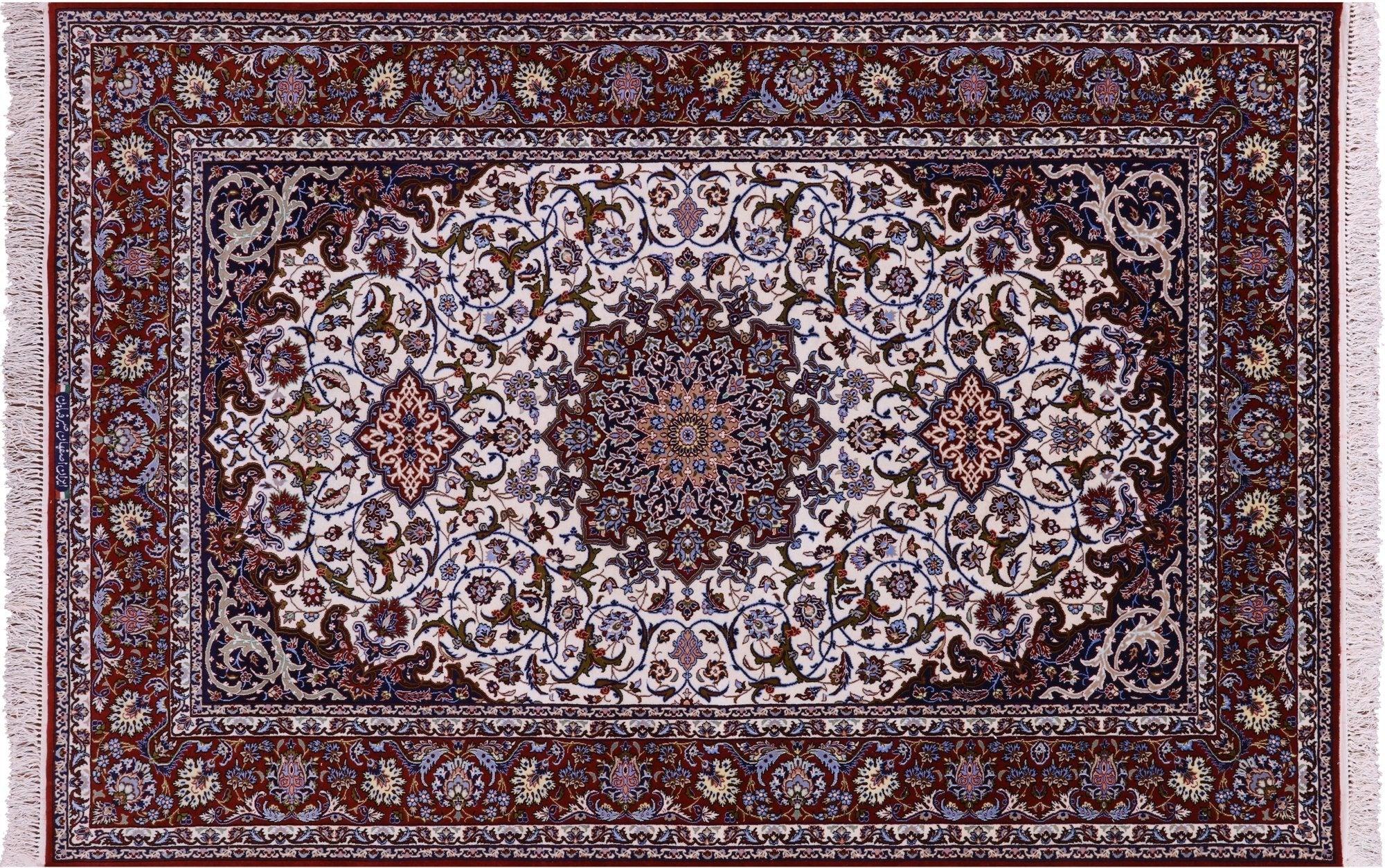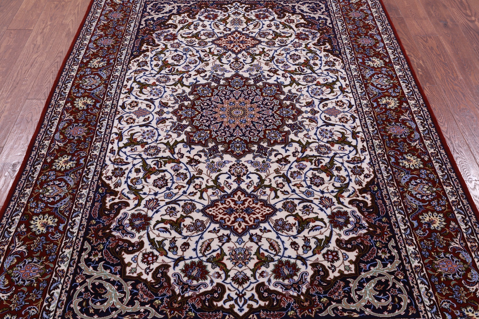 Ivory 5' 3" X 7' 10" Hand Knotted Signed Persian Isfahan Wool & Silk Rug - SA2672