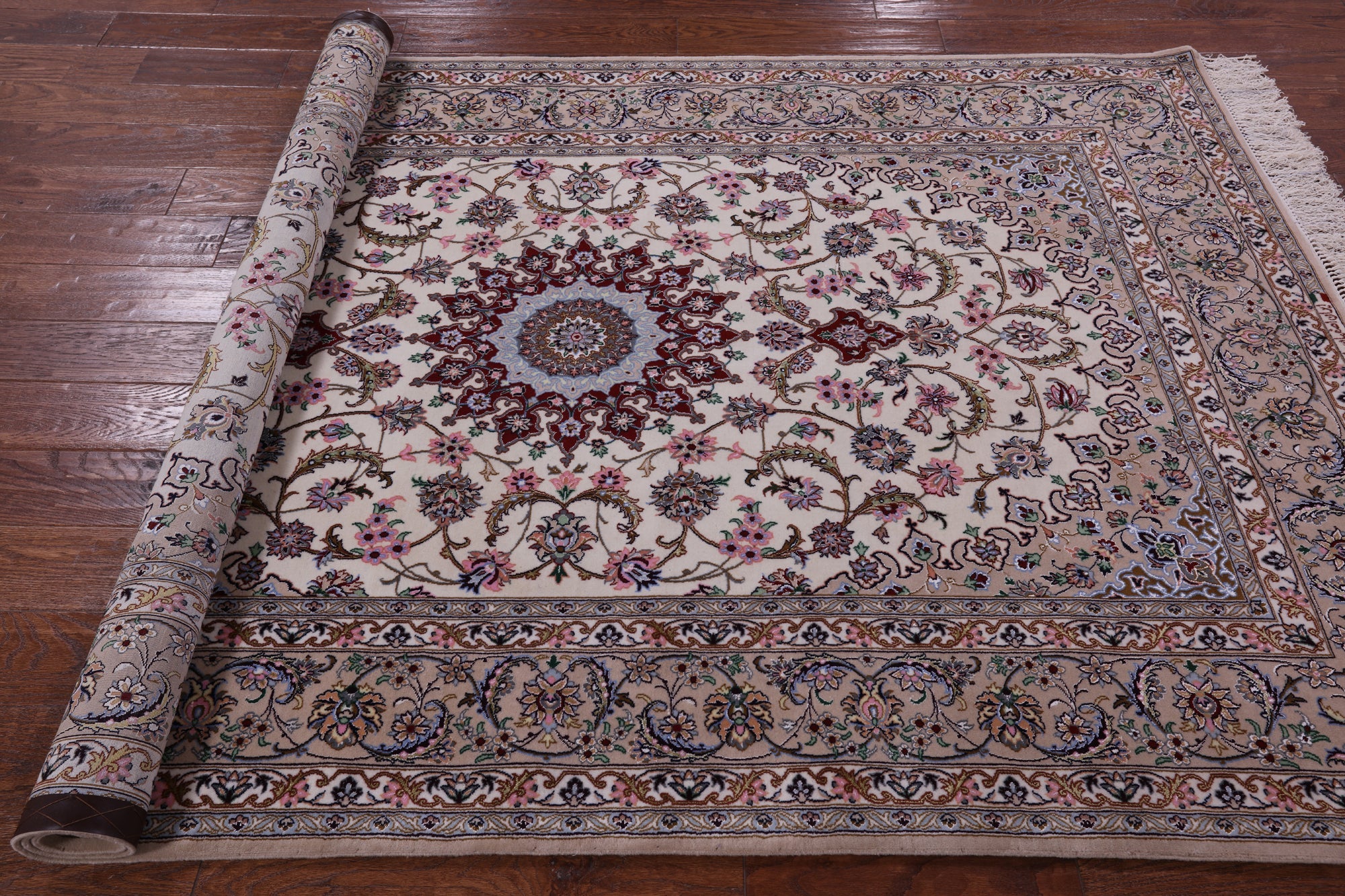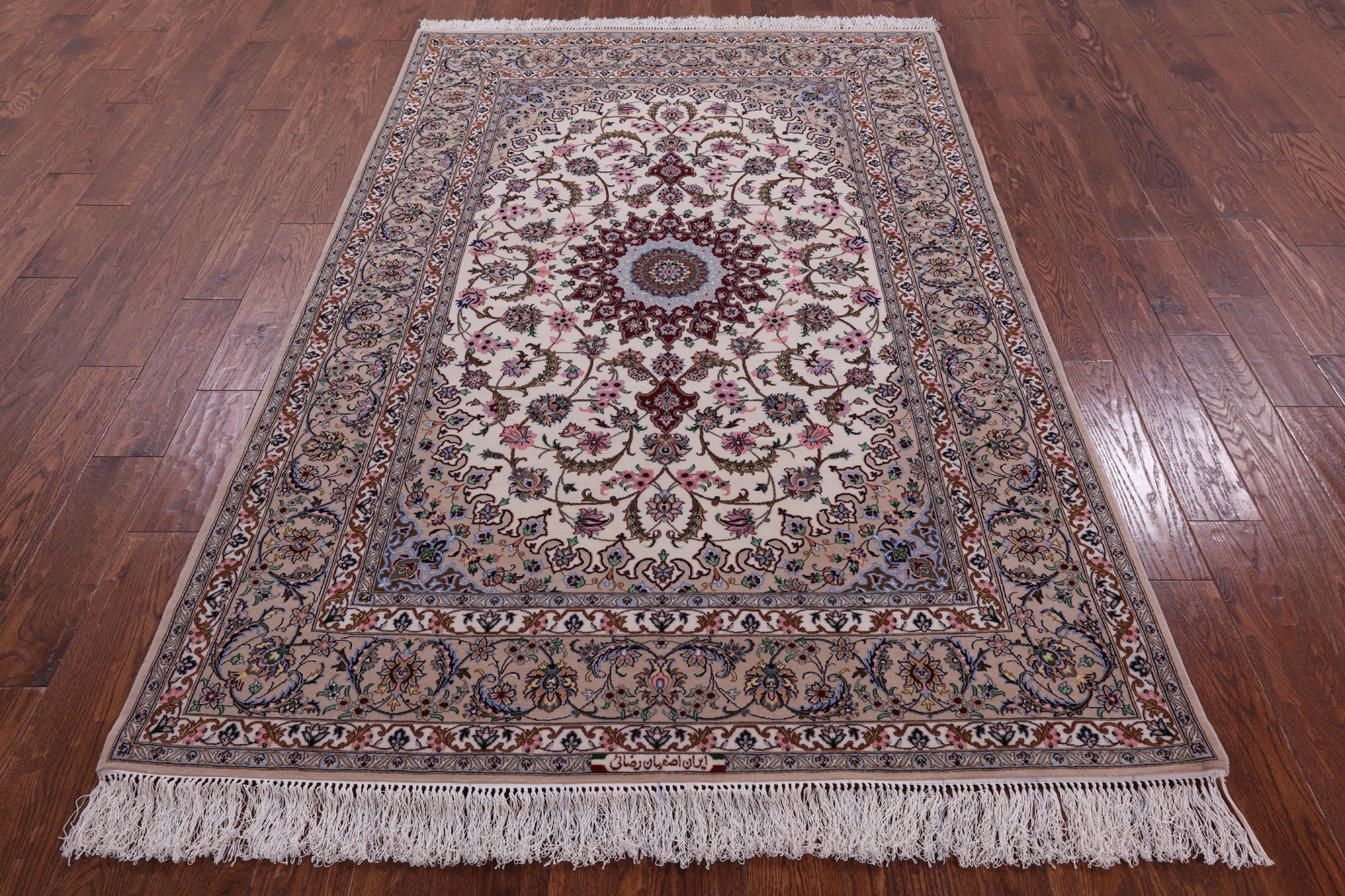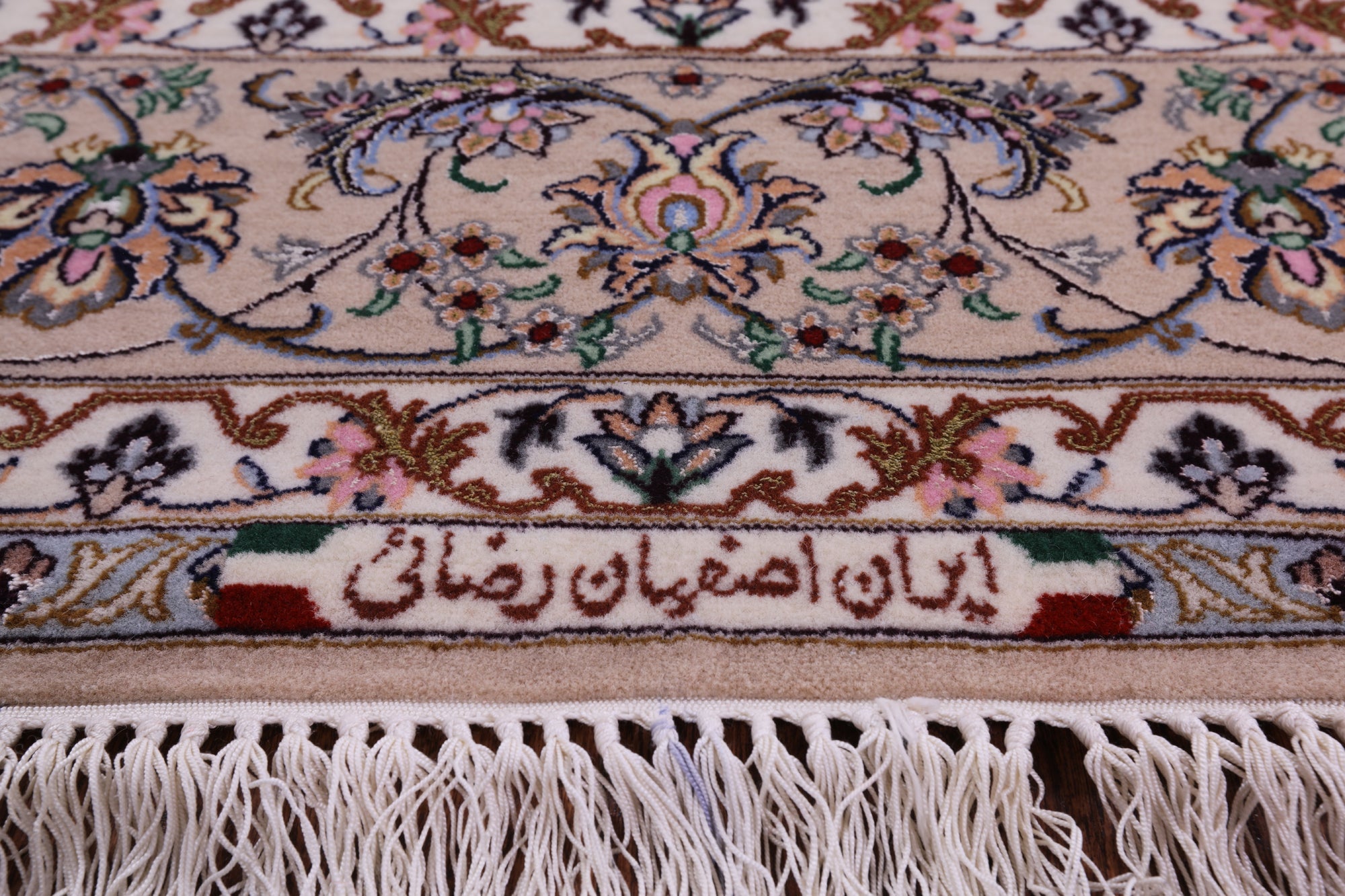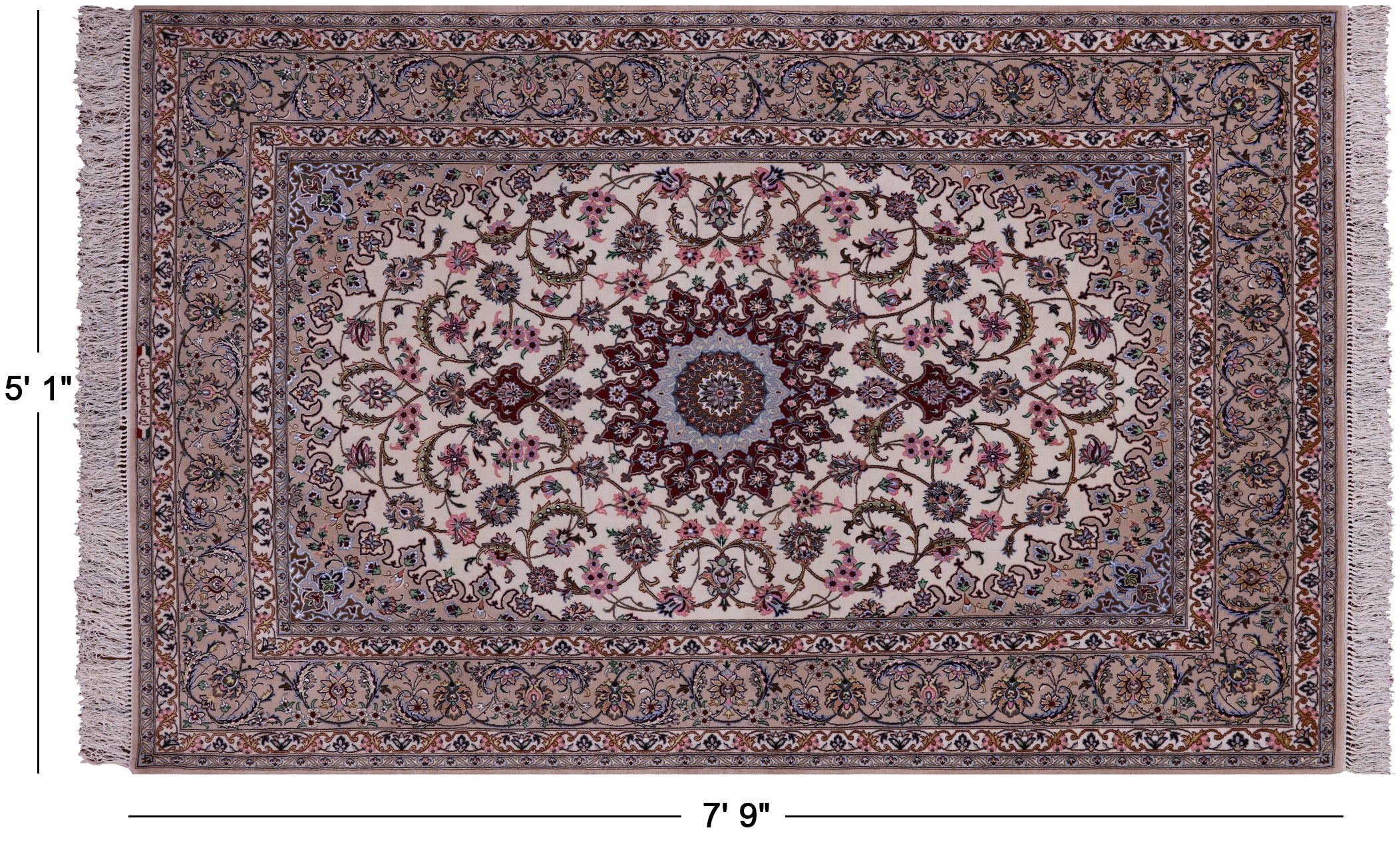 Ivory Hand Knotted Wool & Silk Persian Isfahan Signed Area Rug 5' 1" X 7' 9" - SA2778