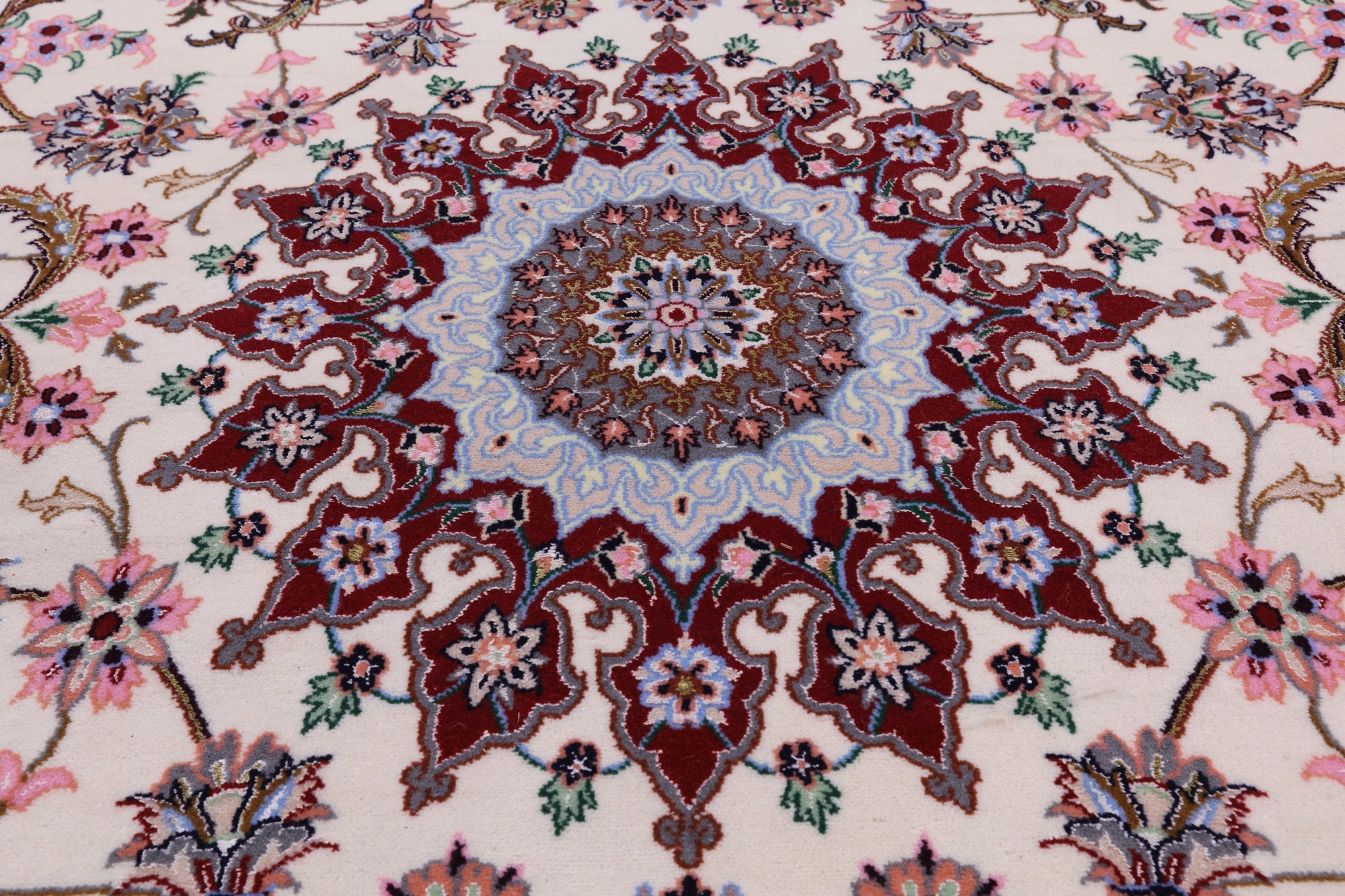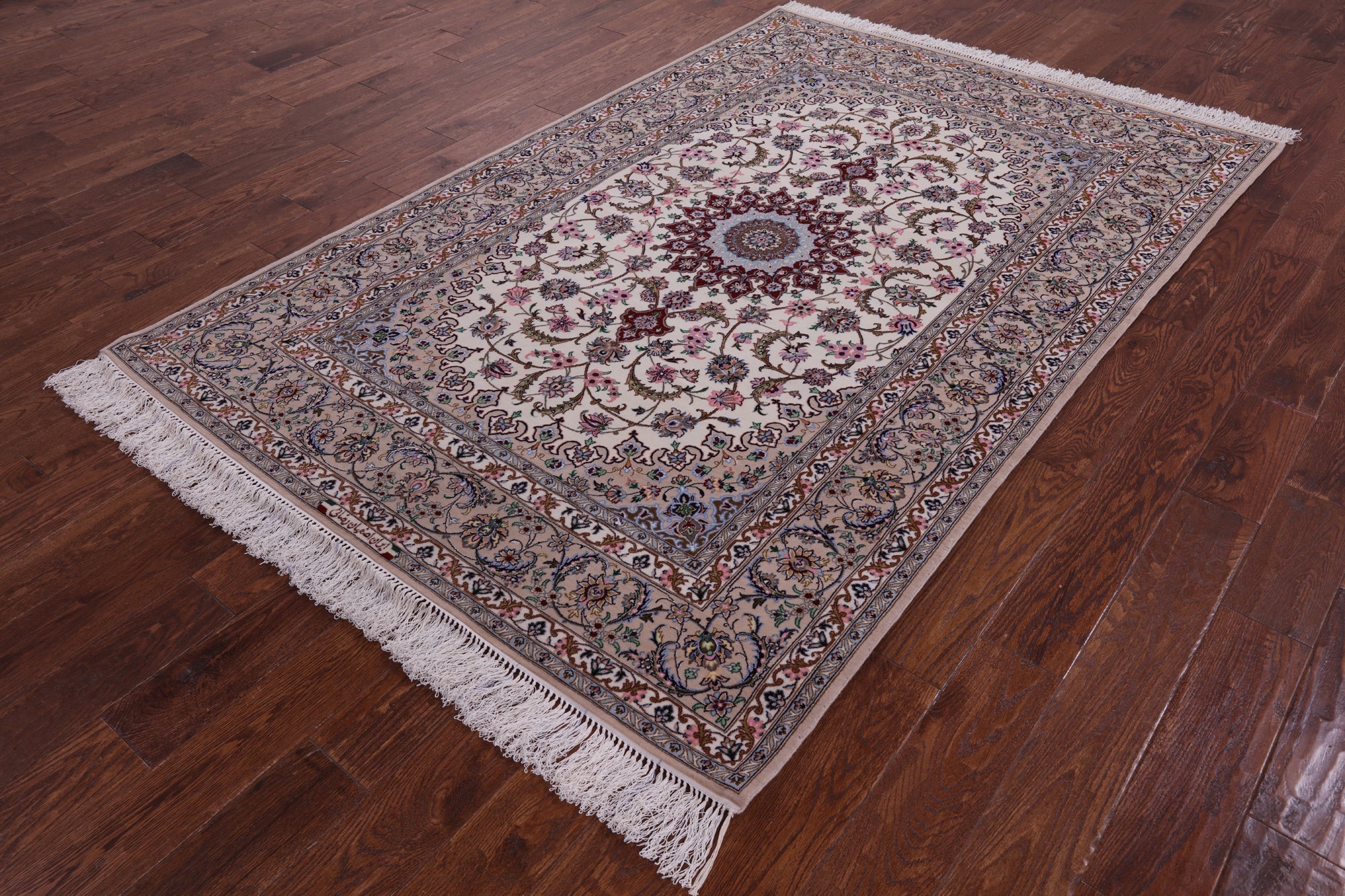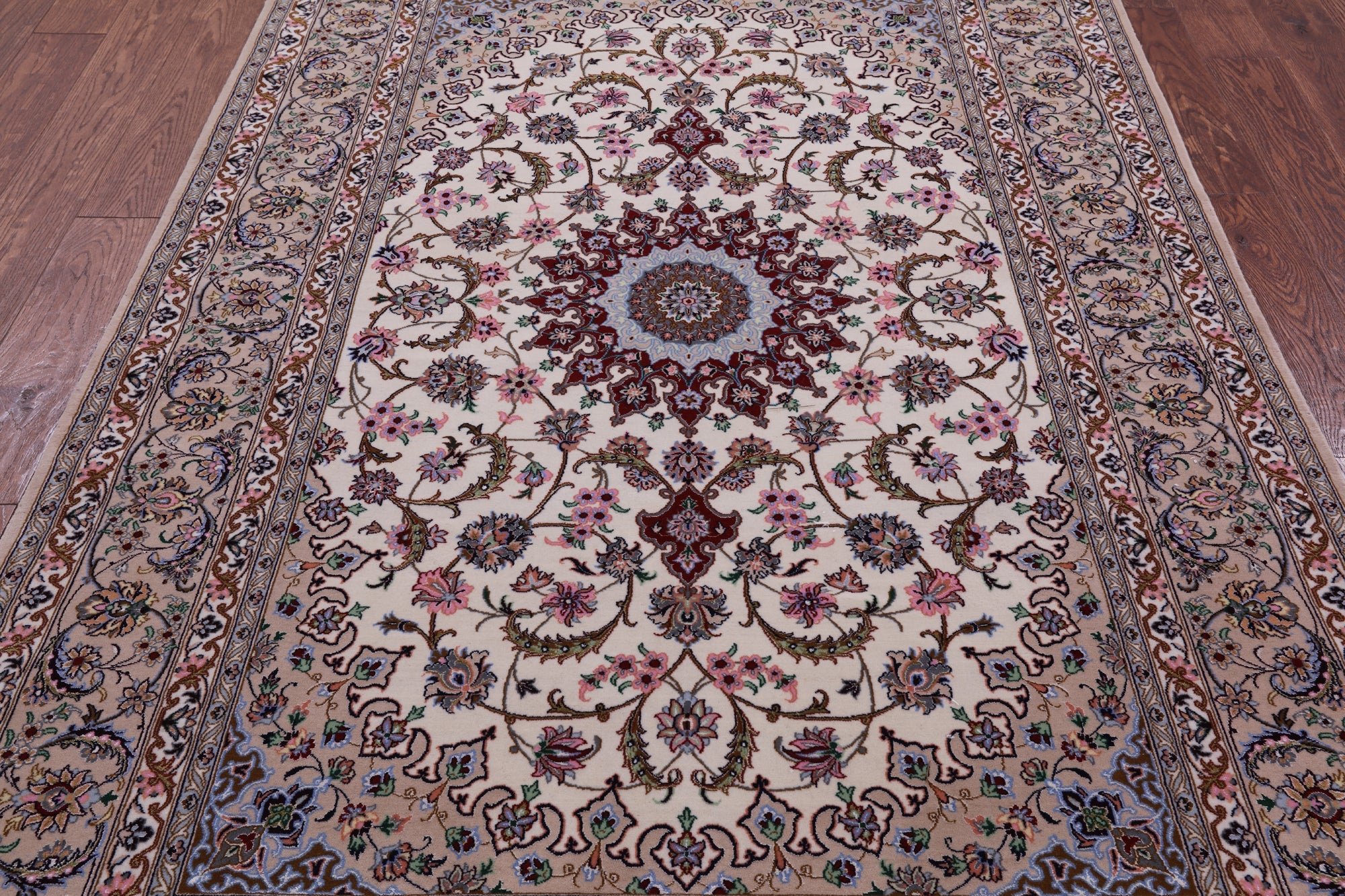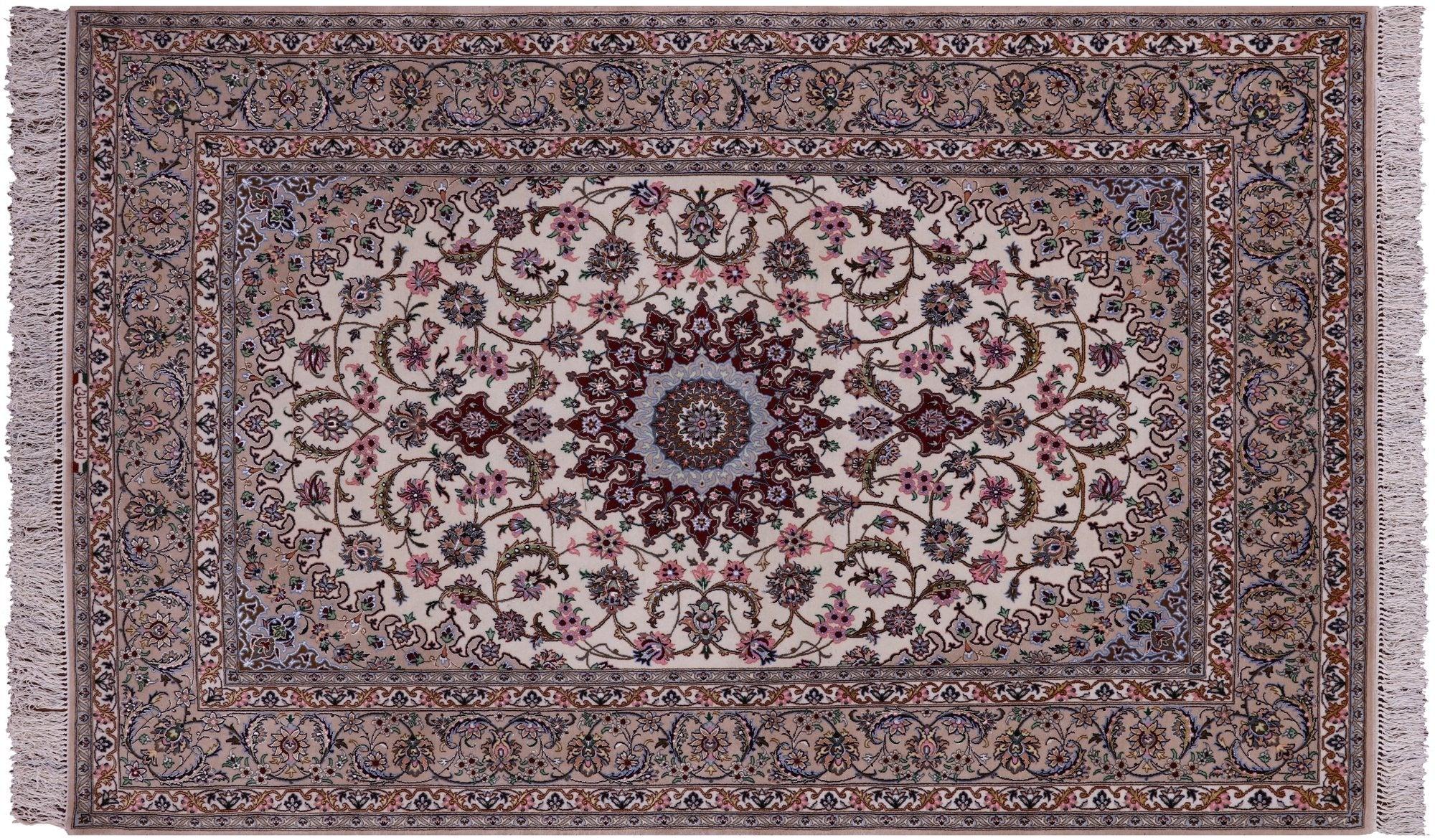 Ivory Hand Knotted Wool & Silk Persian Isfahan Signed Area Rug 5' 1" X 7' 9" - SA2778