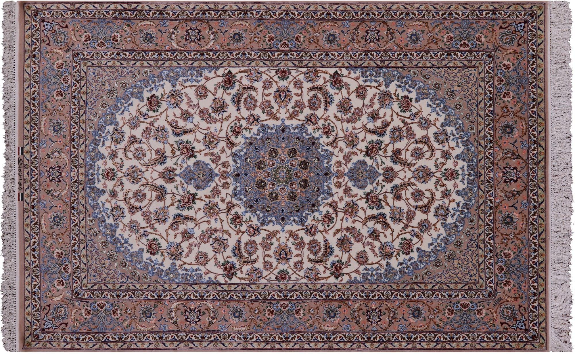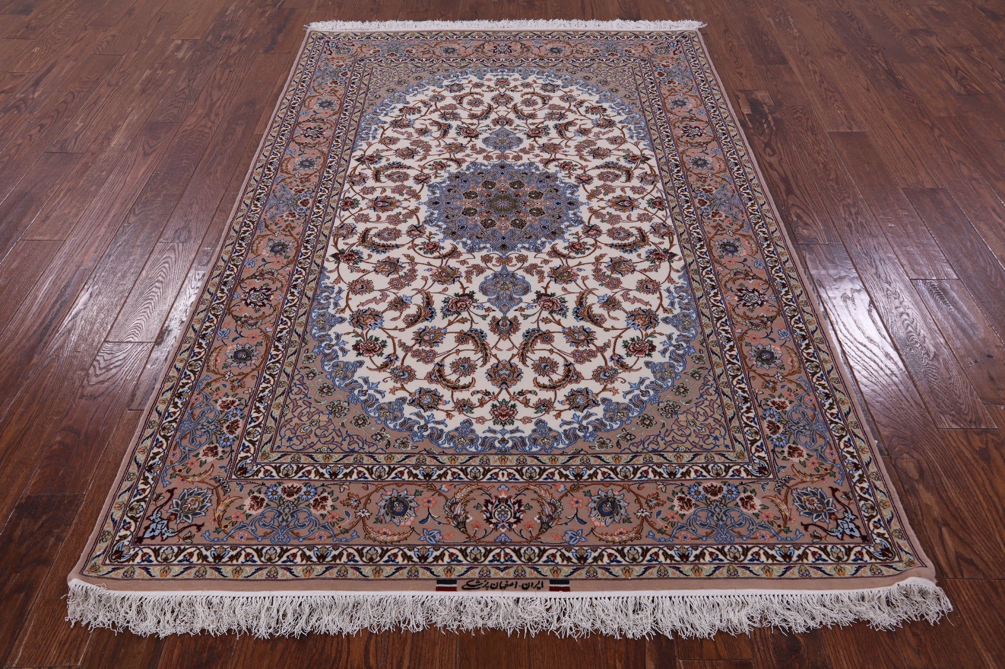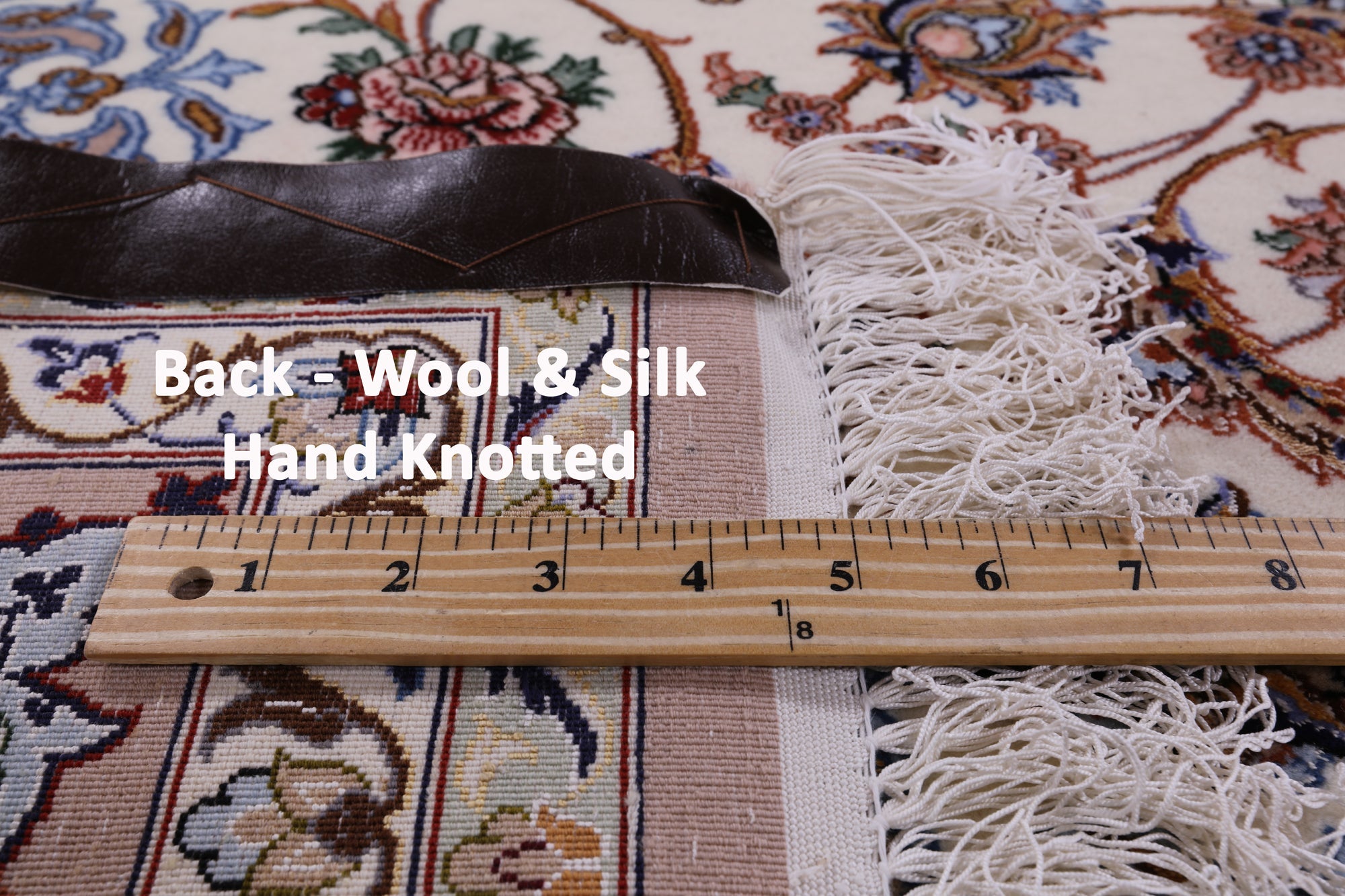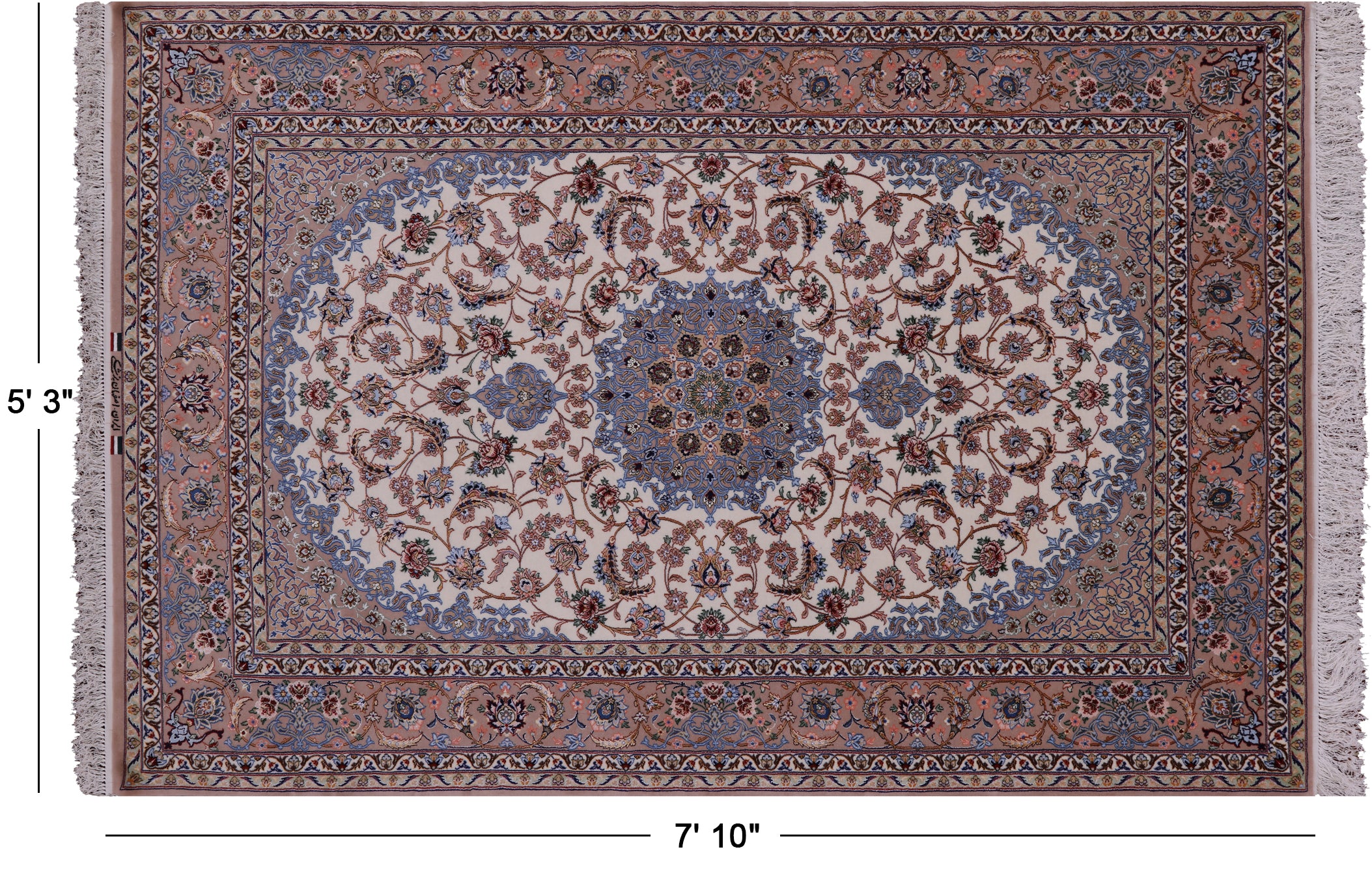 Ivory Hand Knotted Wool & Silk Signed Persian Isfahan Area Rug 5' 3" X 7' 10" - SA2625 is backordered and will ship as soon as it is back in stock.