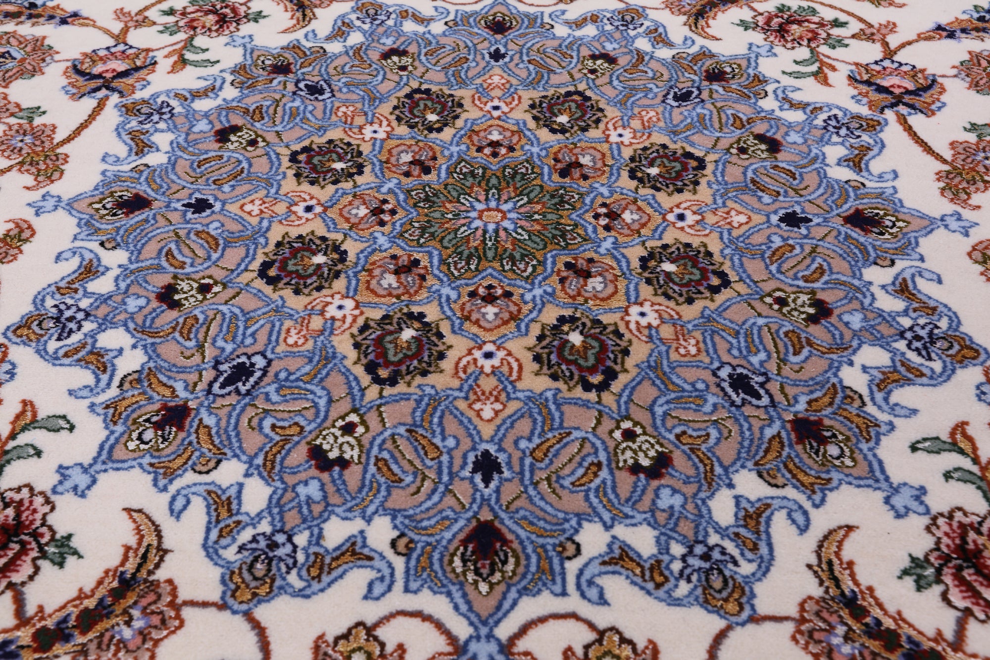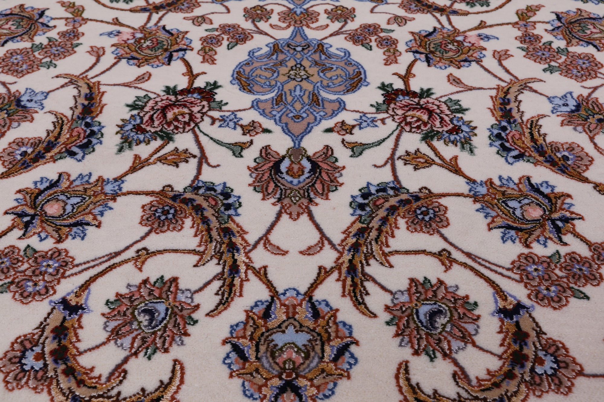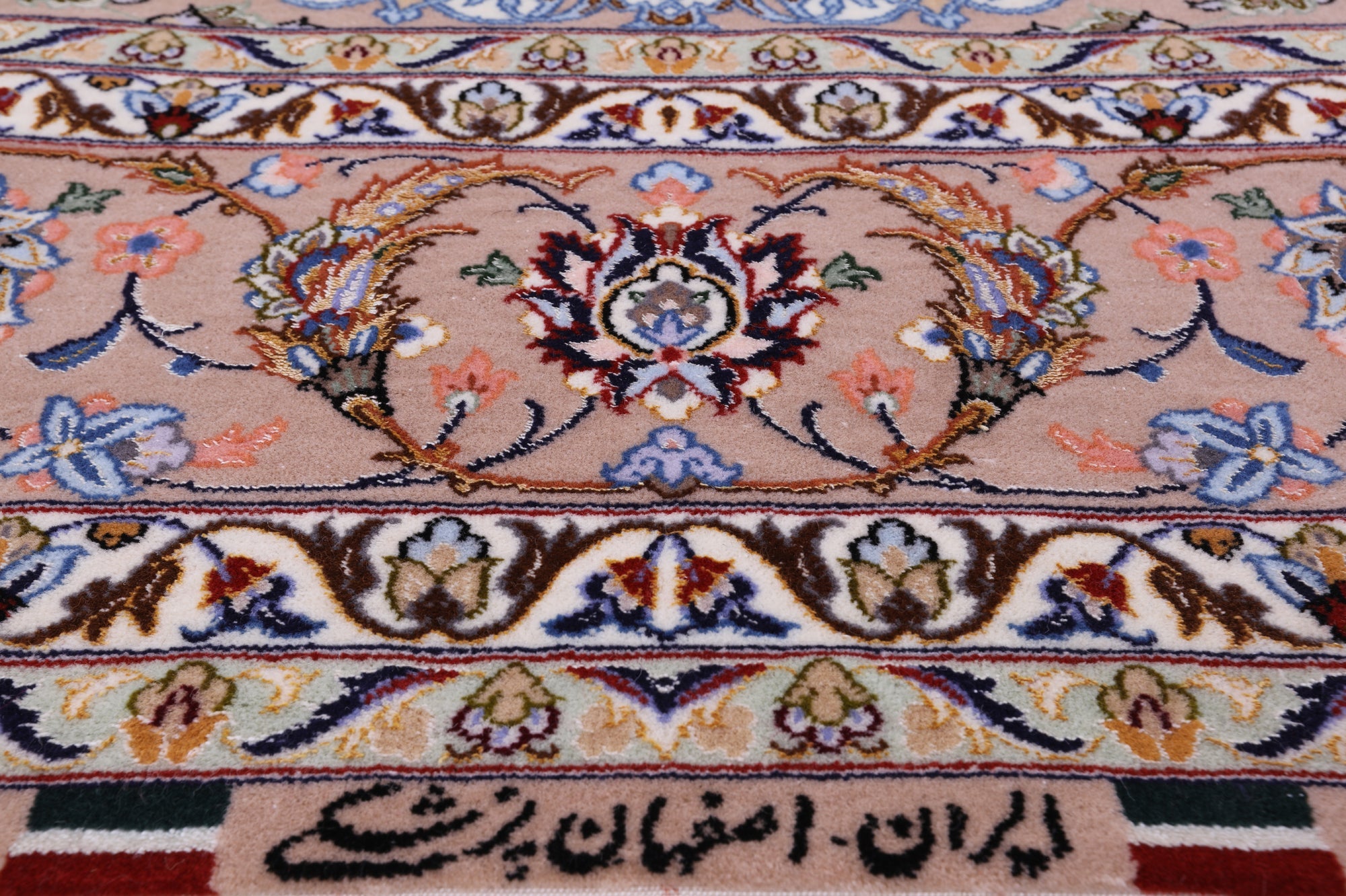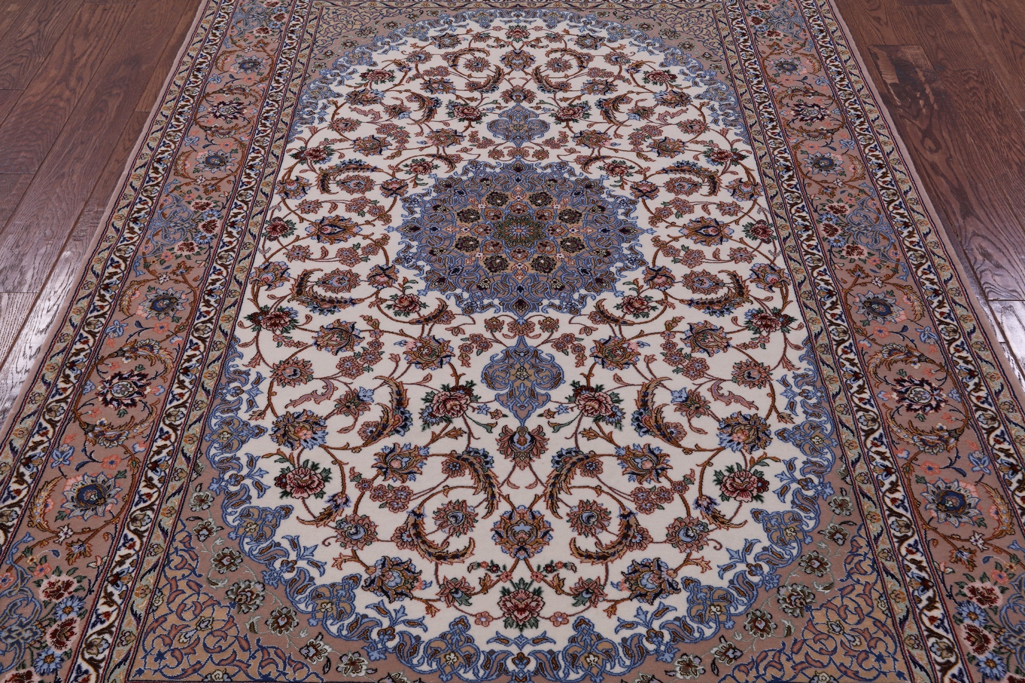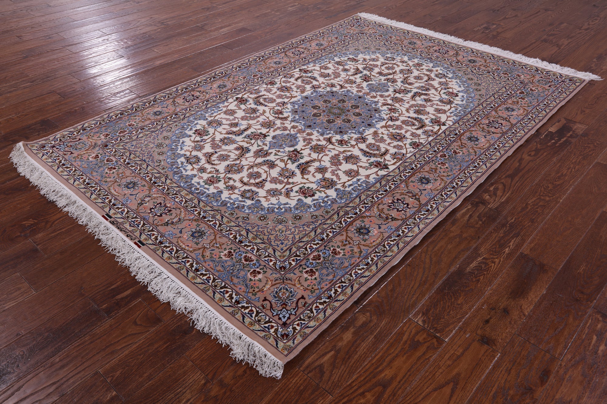 Ivory Hand Knotted Wool & Silk Signed Persian Isfahan Area Rug 5' 3" X 7' 10" - SA2625 is backordered and will ship as soon as it is back in stock.