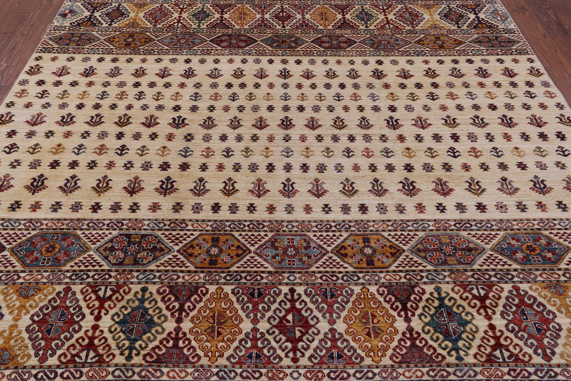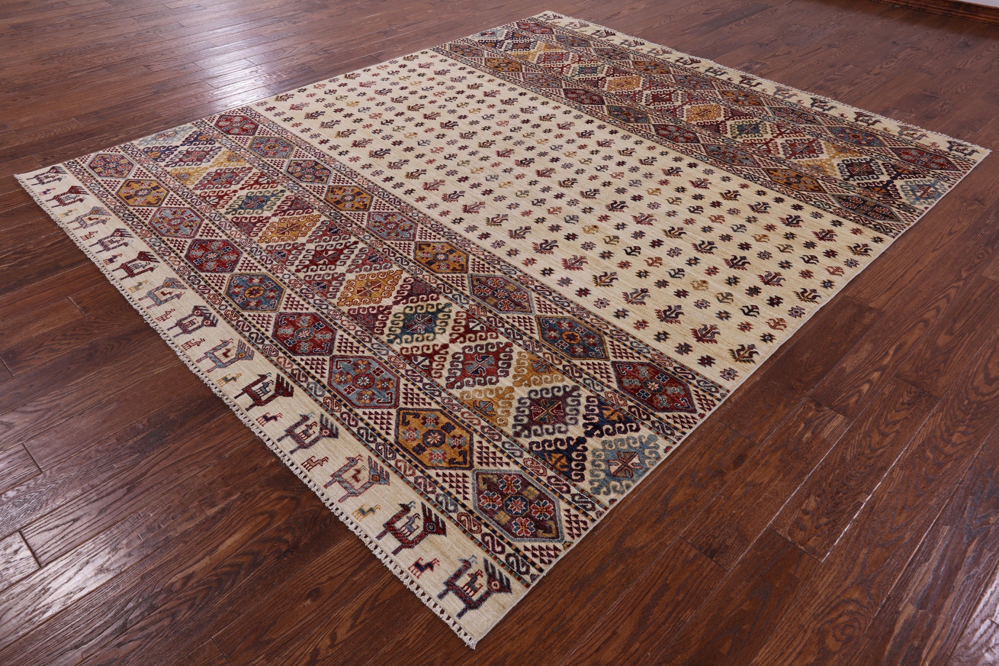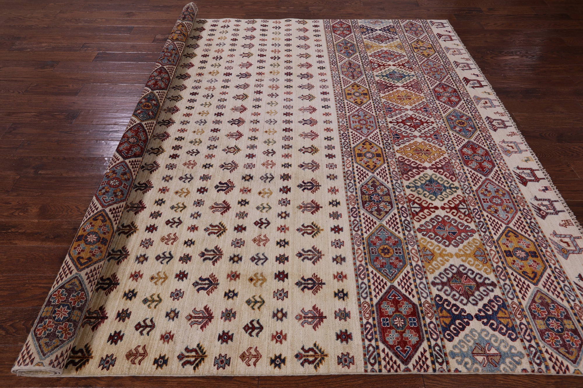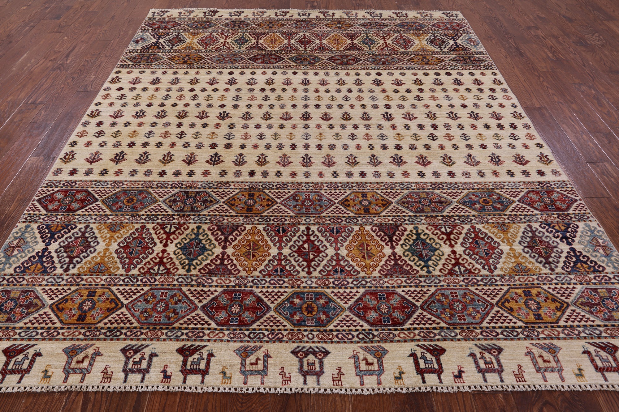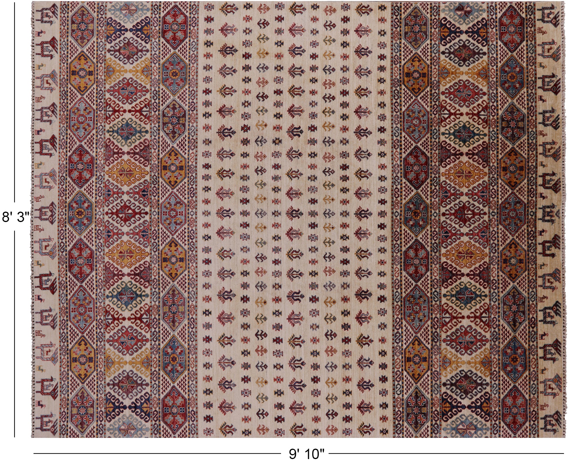 Ivory Handmade Persian Gabbeh Tribal Wool Rug 8' 3" X 9' 10" - Q10746
