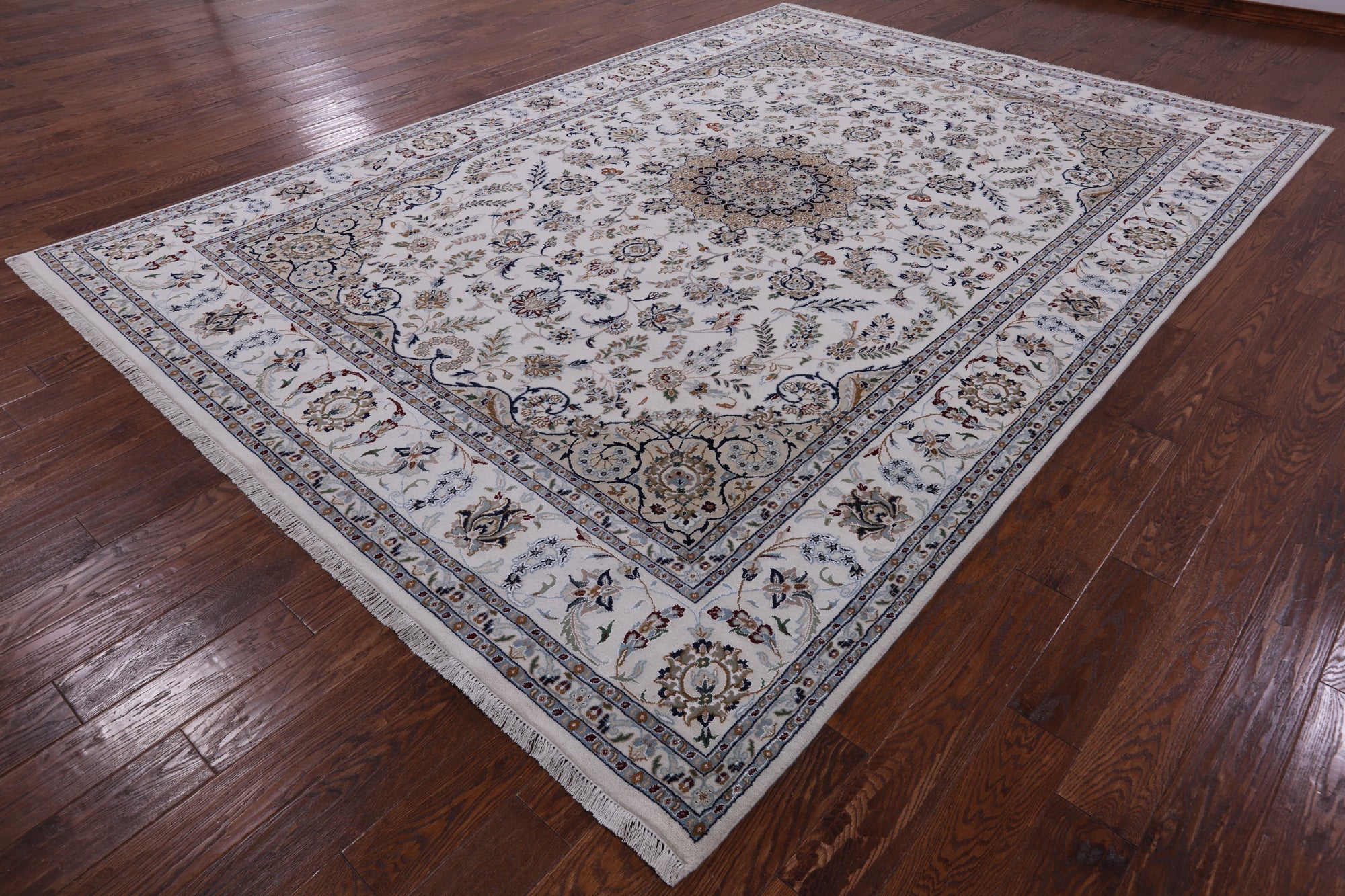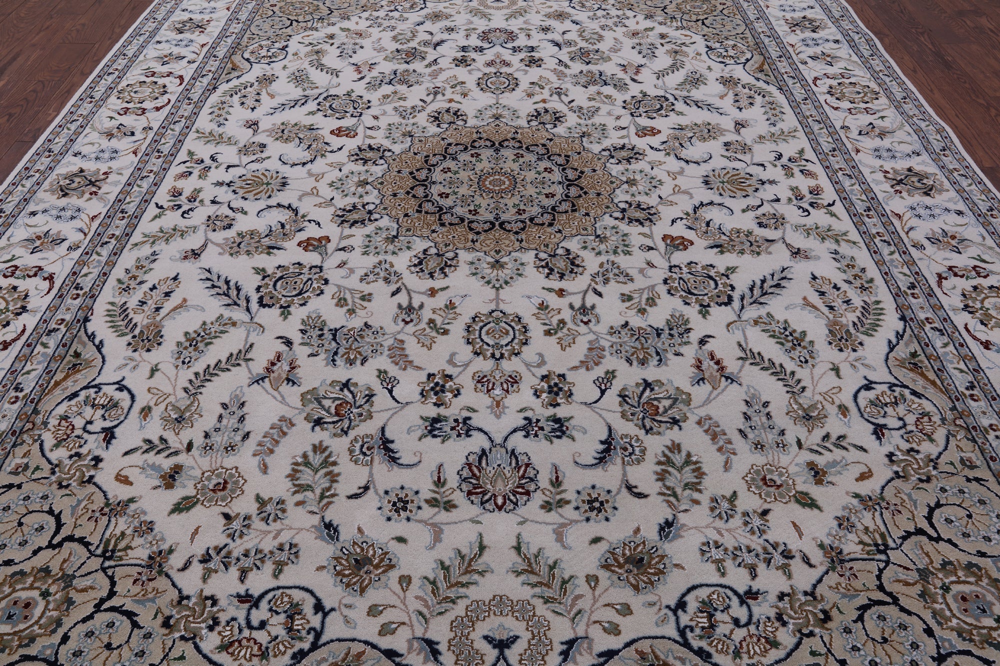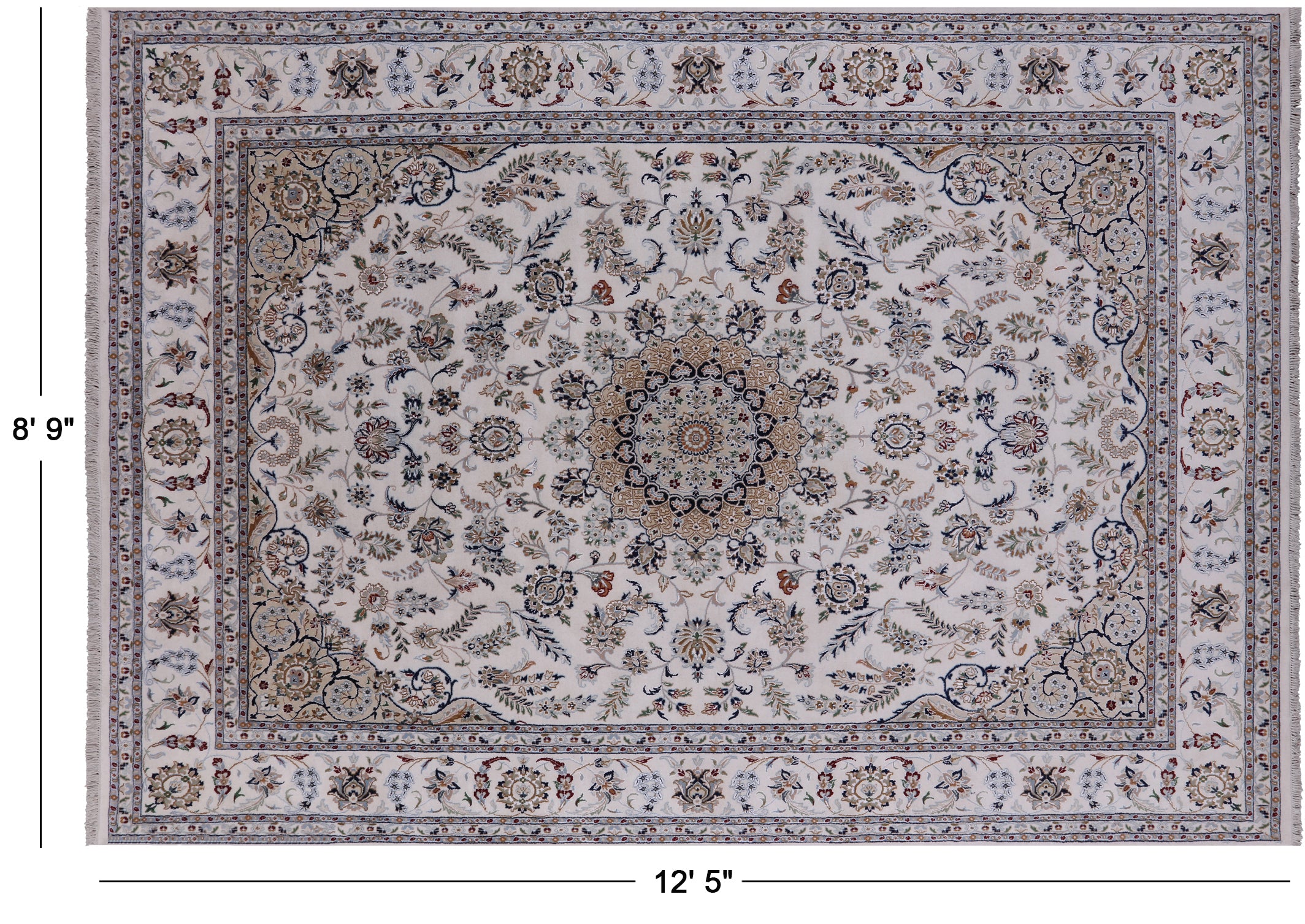 Ivory Handmade Persian Nain Wool & Silk Rug 8' 9" X 12' 5" - Q8513
