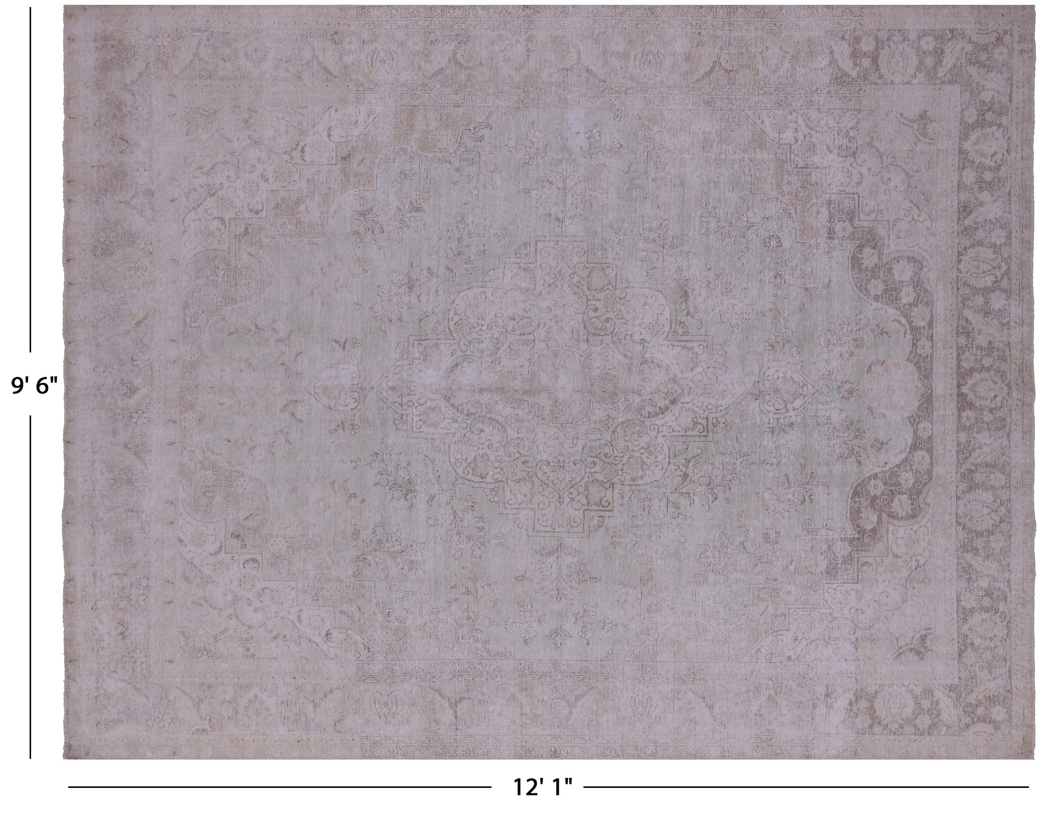 Ivory Handmade Vintage White Wash Persian Rug 9' 6" X 12' 1" - Q4649