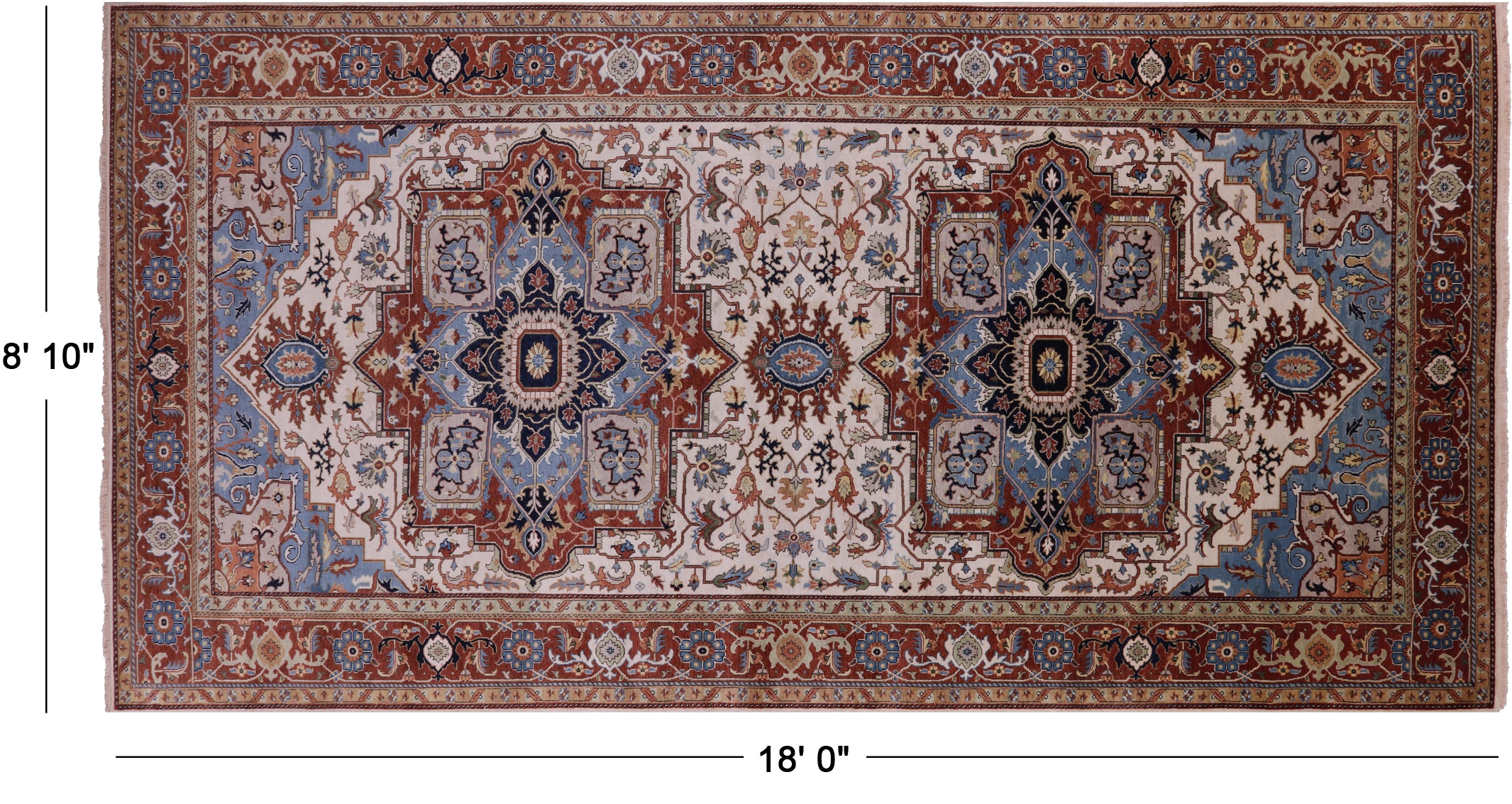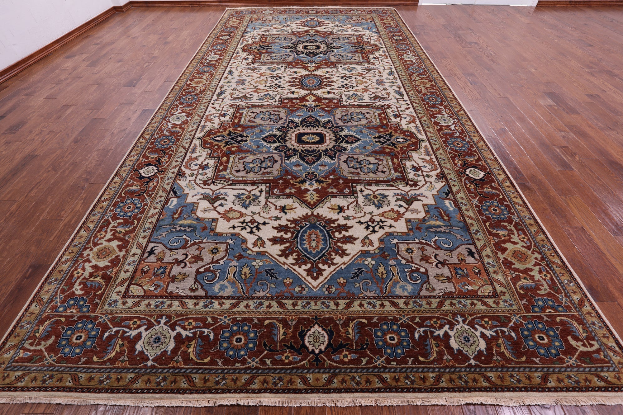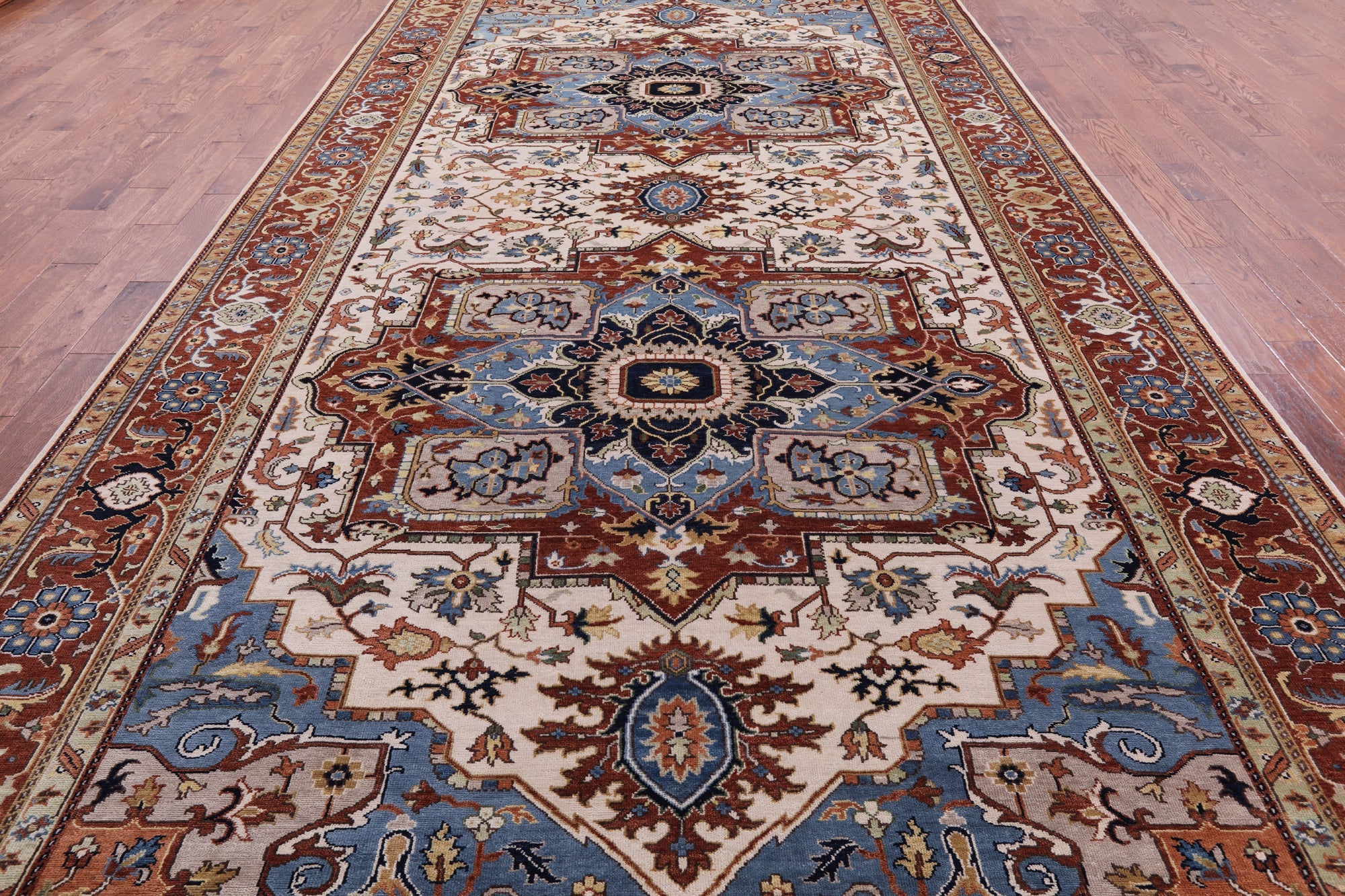 Ivory Heriz Serapi Hand-Knotted Wool Rug 8' 10" X 18' 0" - Q11580 is backordered and will ship as soon as it is back in stock.
