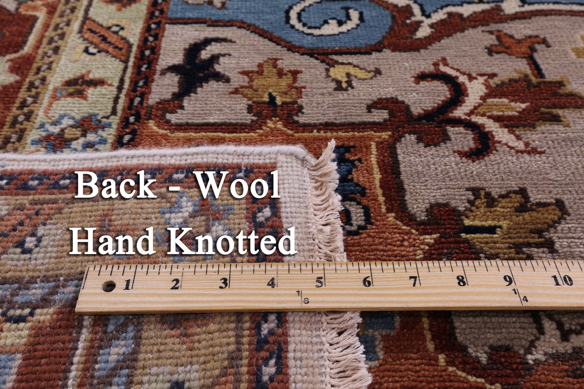 This is a genuine hand knotted cut pile rug, not tufted, hooked, or machine made. All we do is hand knotted.