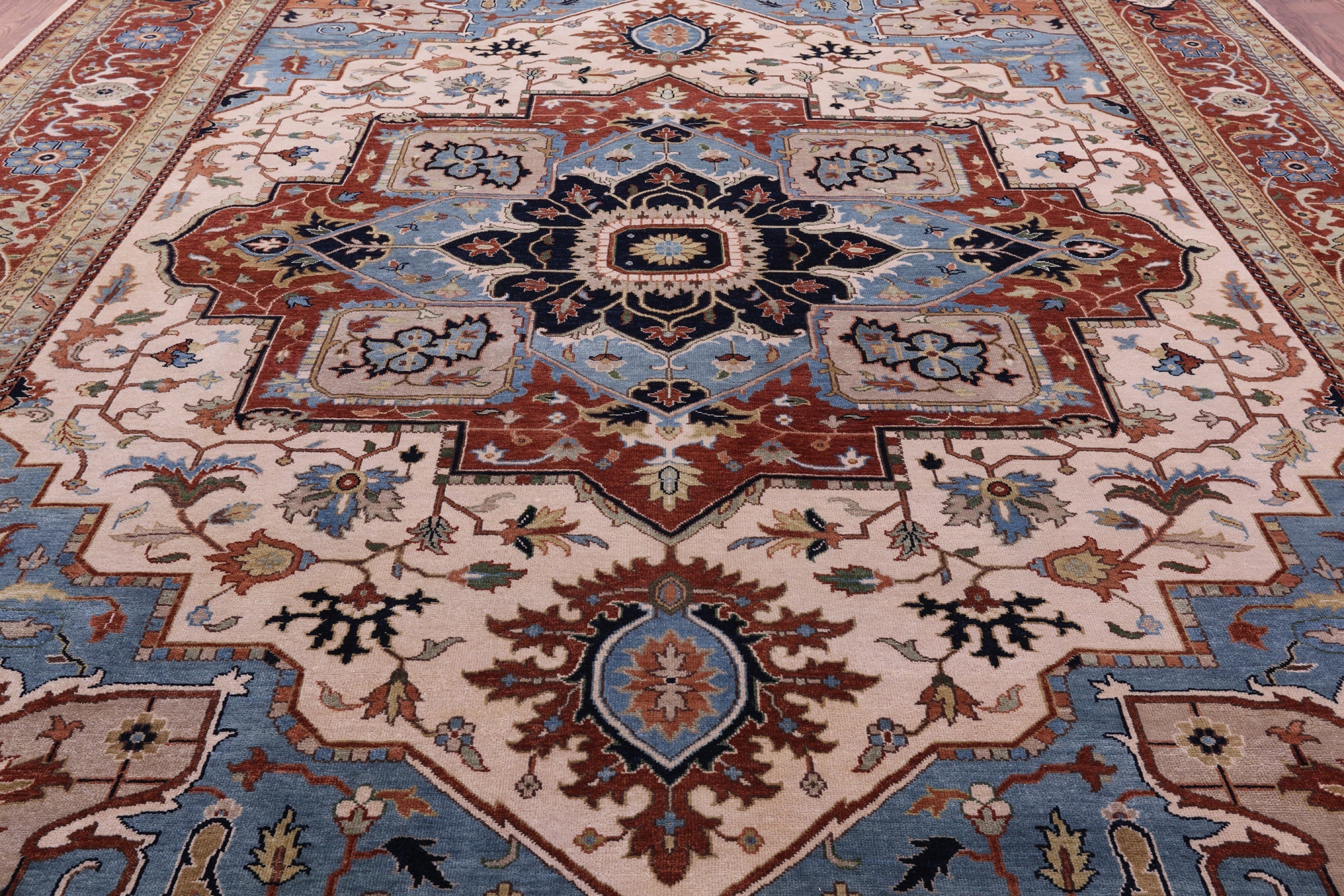 Ivory Heriz Serapi Hand-Knotted Wool Rug 11' 10" X 15' 0" - Q21082 is backordered and will ship as soon as it is back in stock.