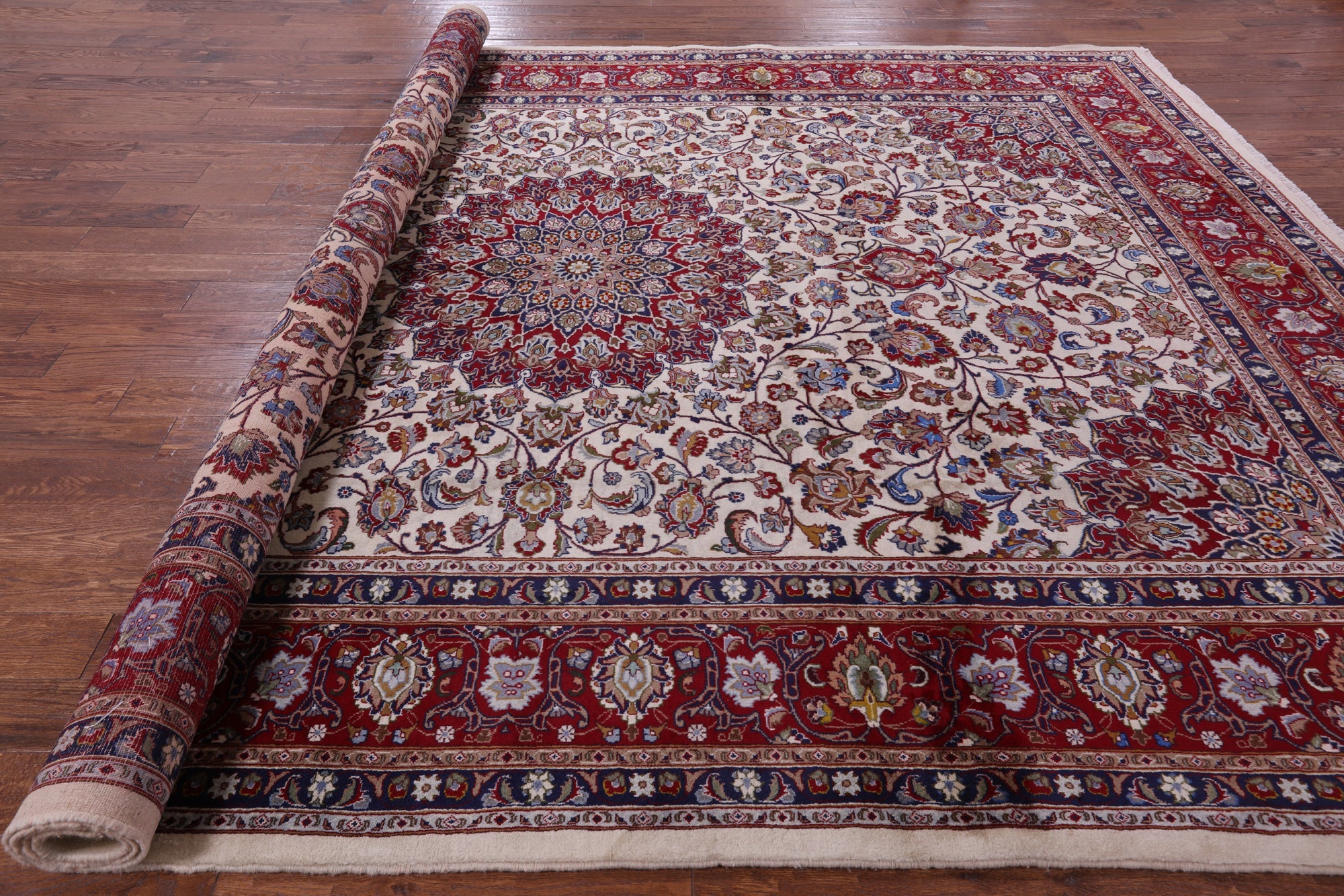 Ivory New Persian Mashad Handmade Full Pile Rug 9' 11" X 13' 2" - S2486