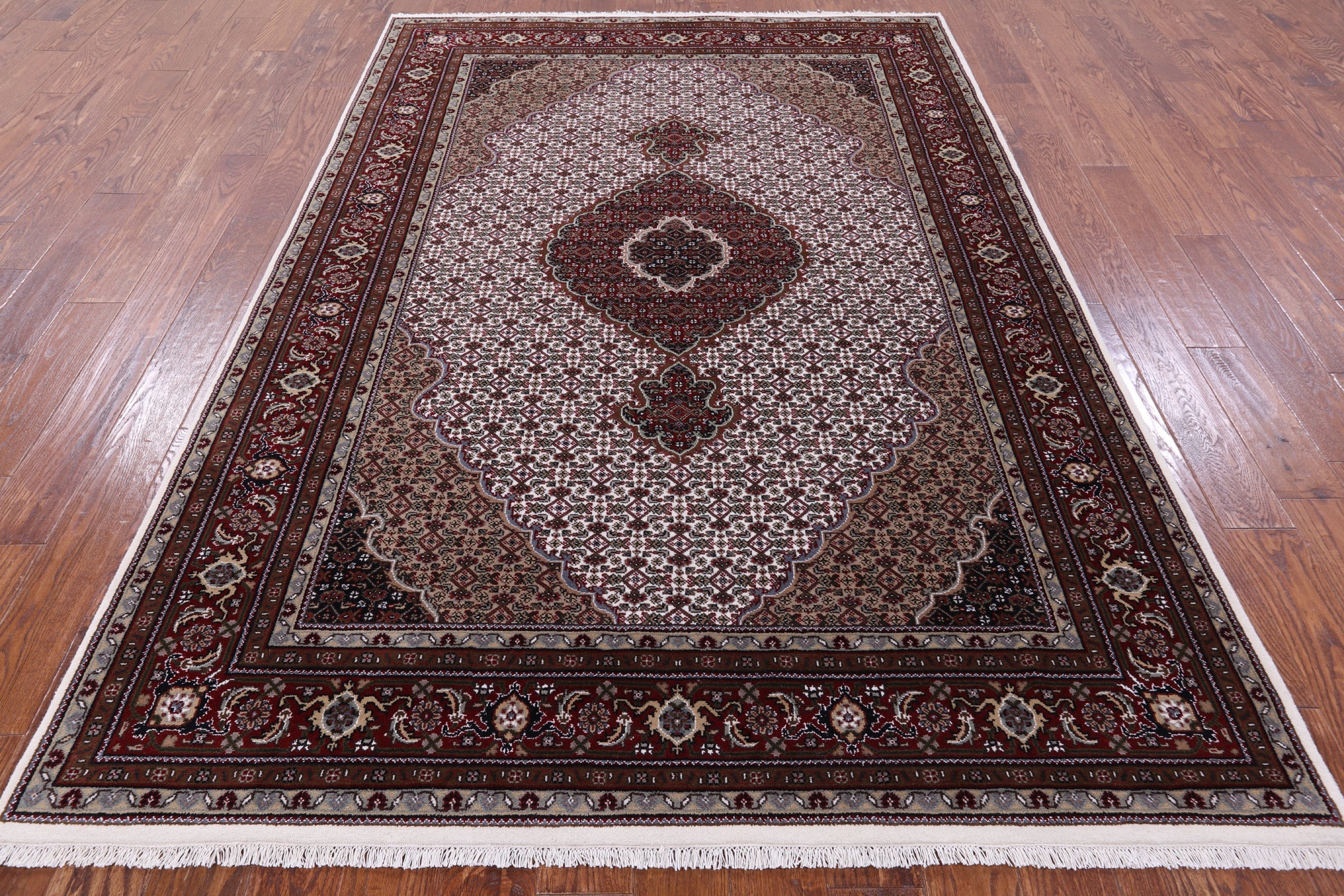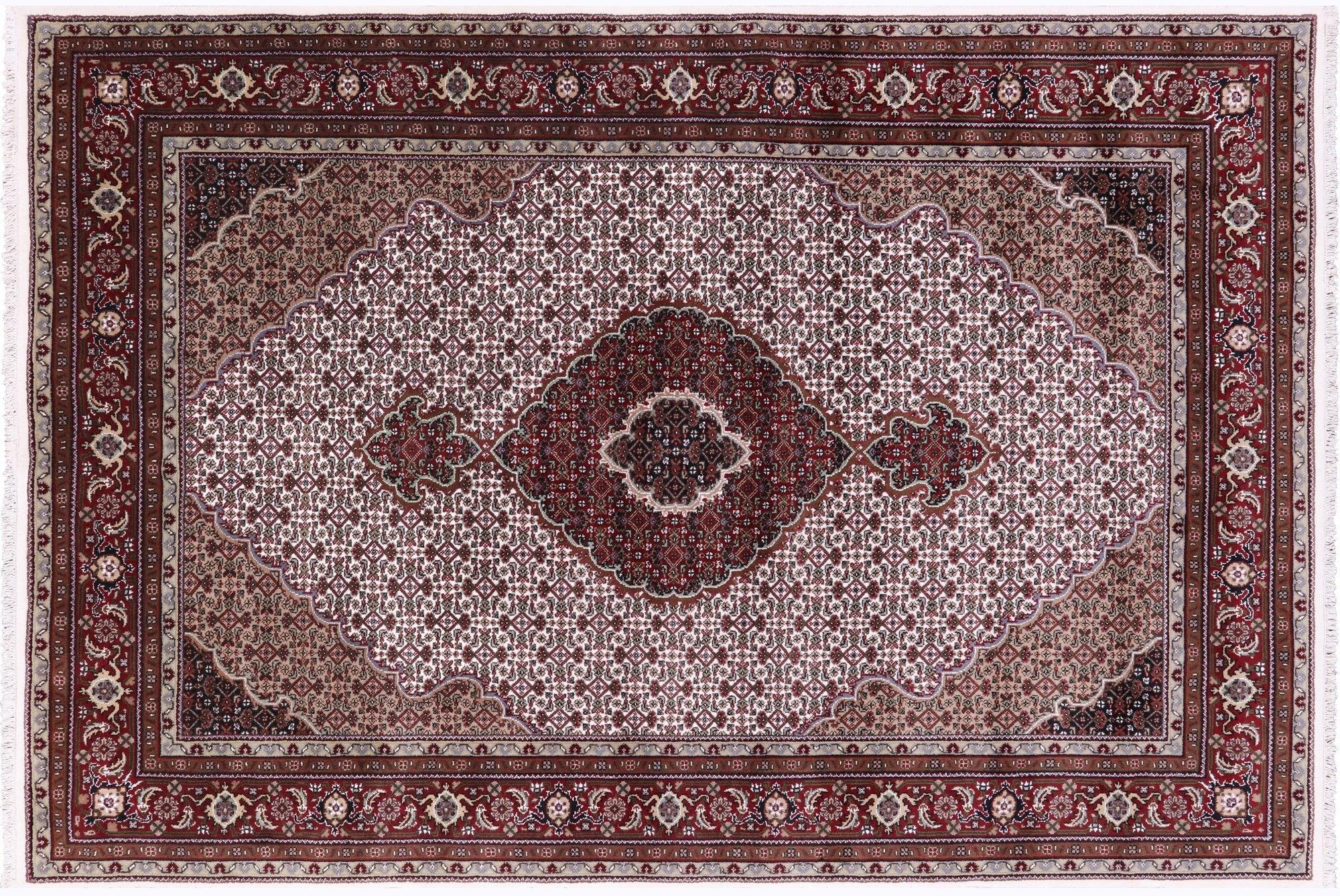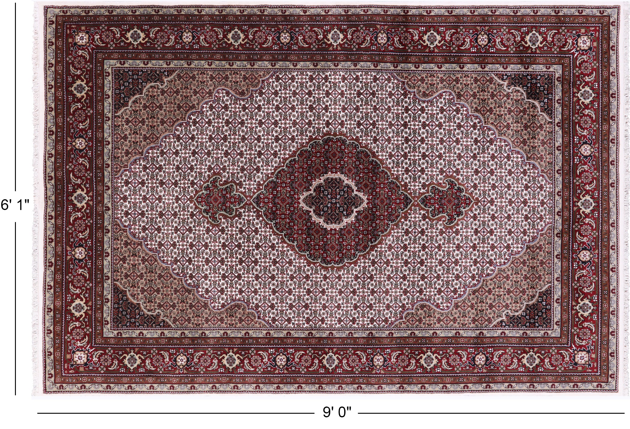 Ivory Persian Tabriz Hand Knotted Wool & Silk Rug 6' 1" X 9' 0" - Q8908