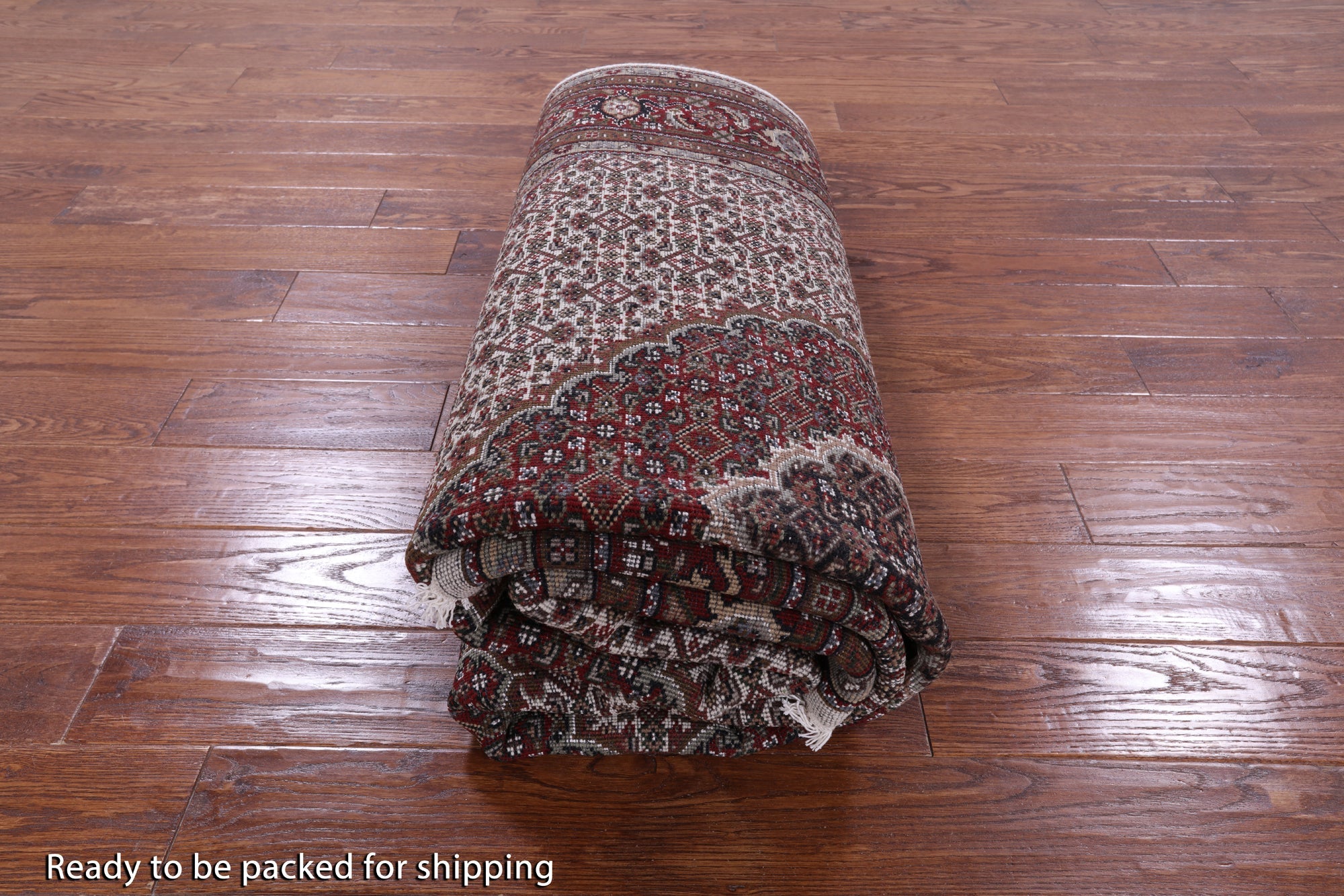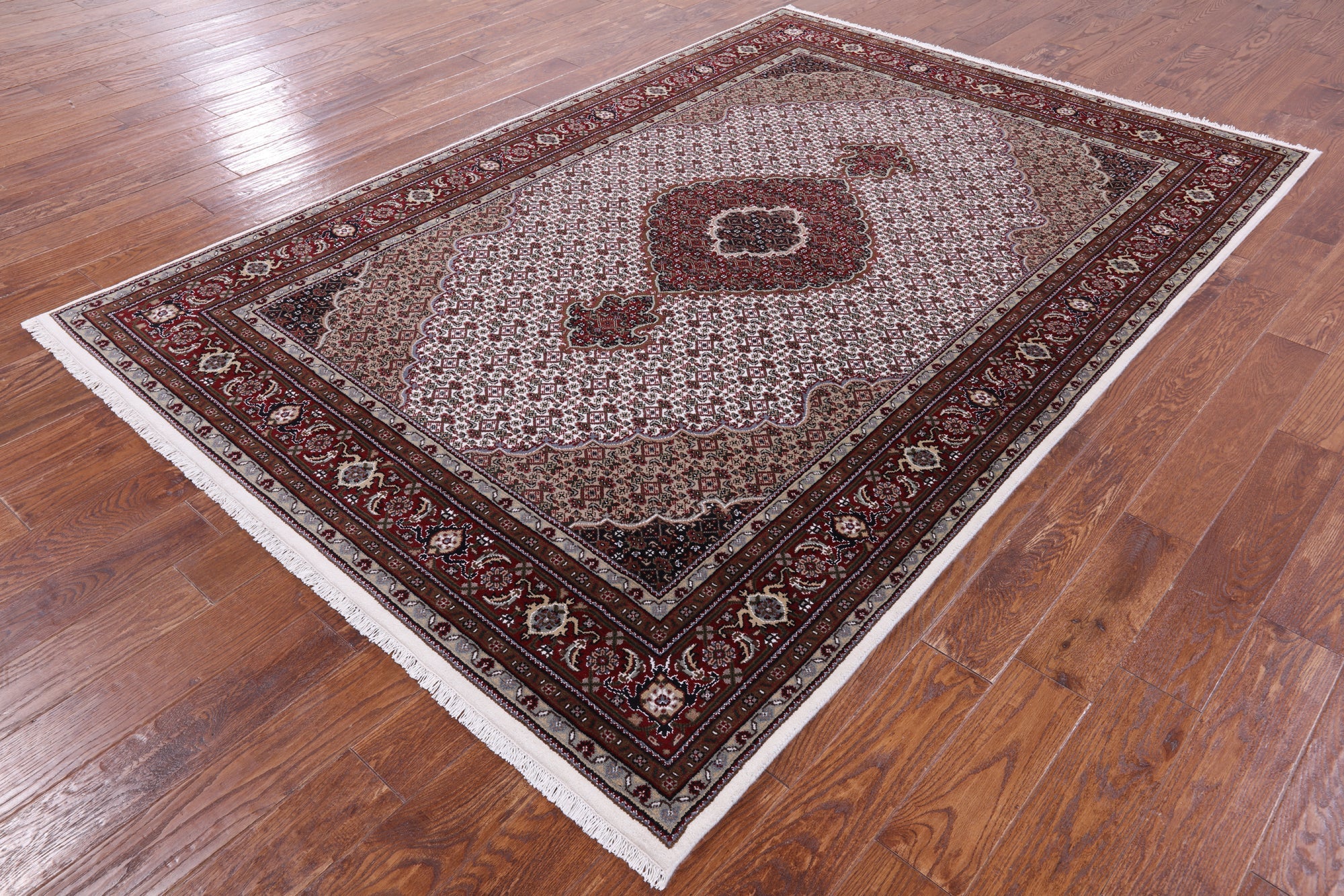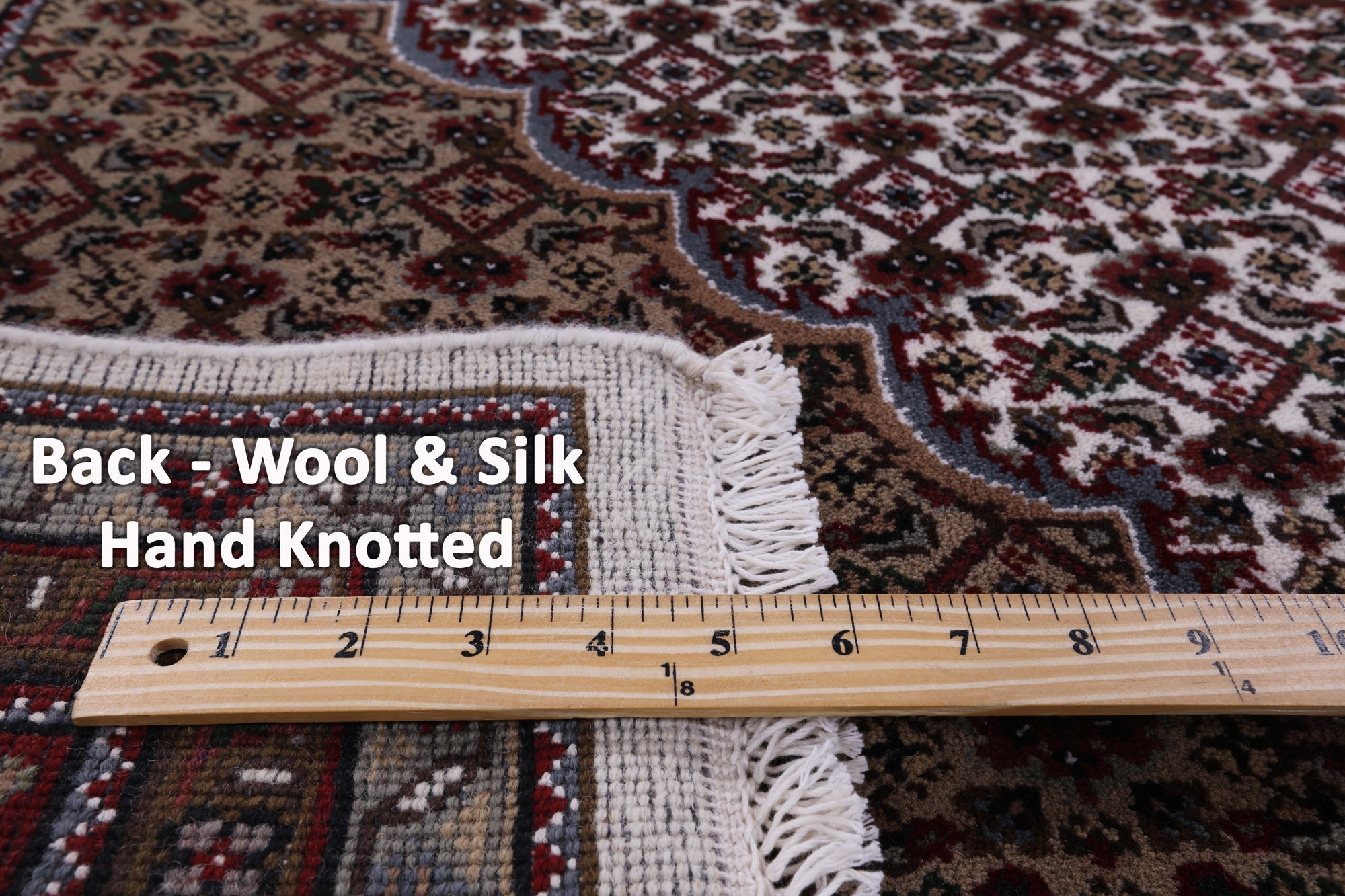 Ivory Persian Tabriz Hand Knotted Wool & Silk Rug 6' 1" X 9' 0" - Q8908