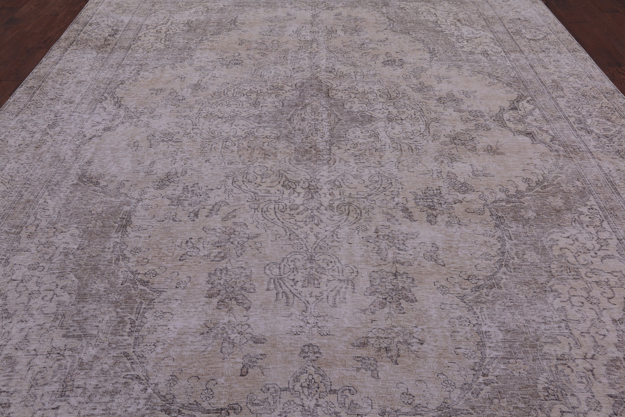 Ivory 9' 6" X 12' 3" Persian Vintage White Wash Handmade Rug - Q4651