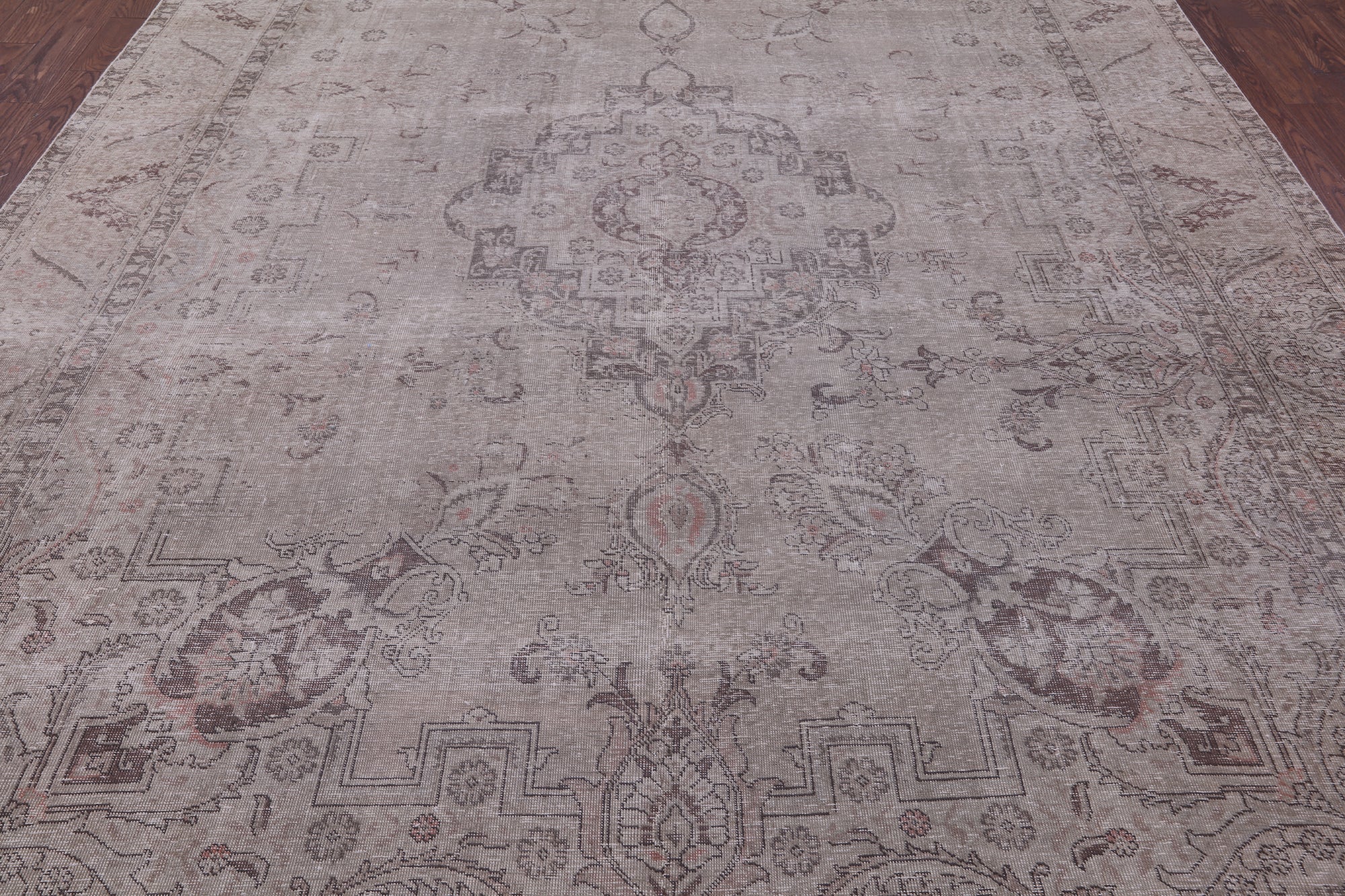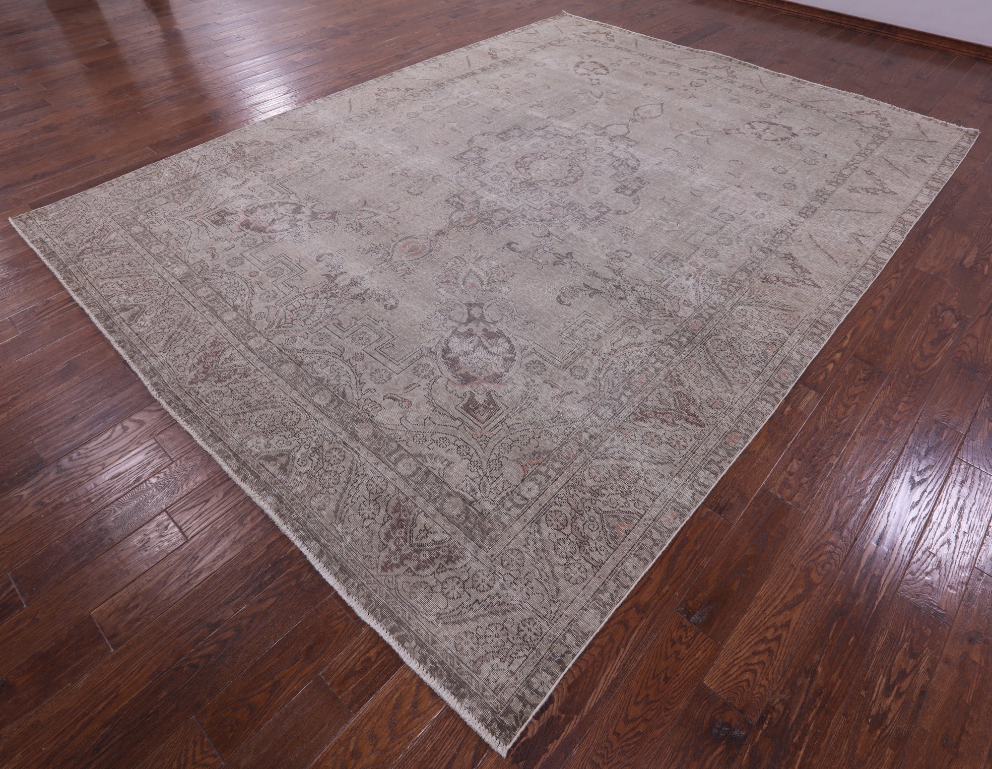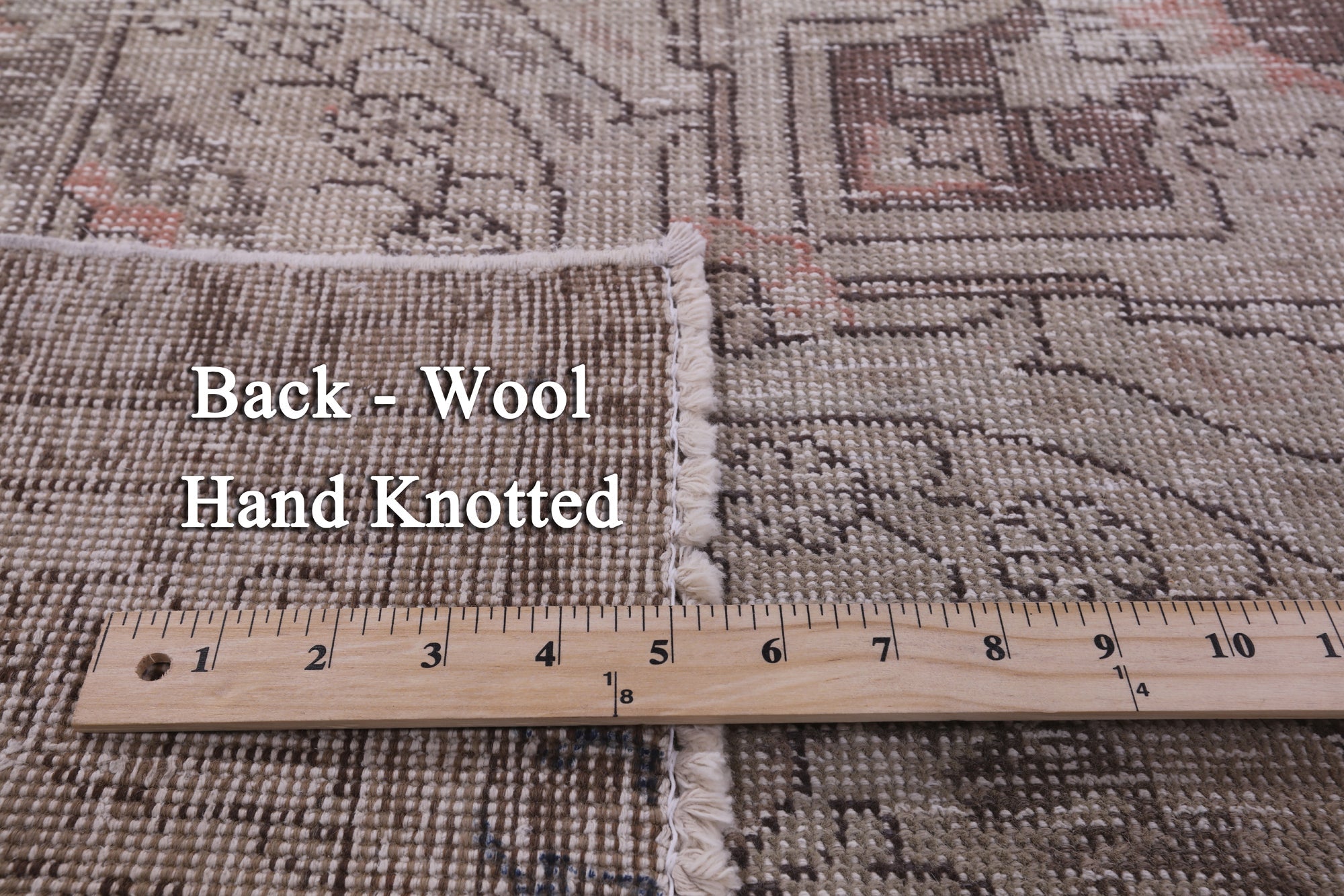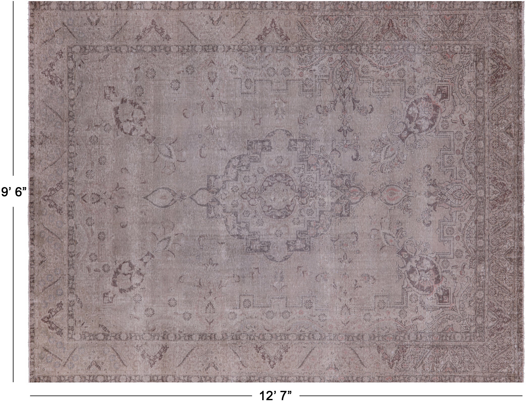 Ivory 9' 6" X 12' 7" Persian Vintage White Wash Handmade Wool Rug - Q19656