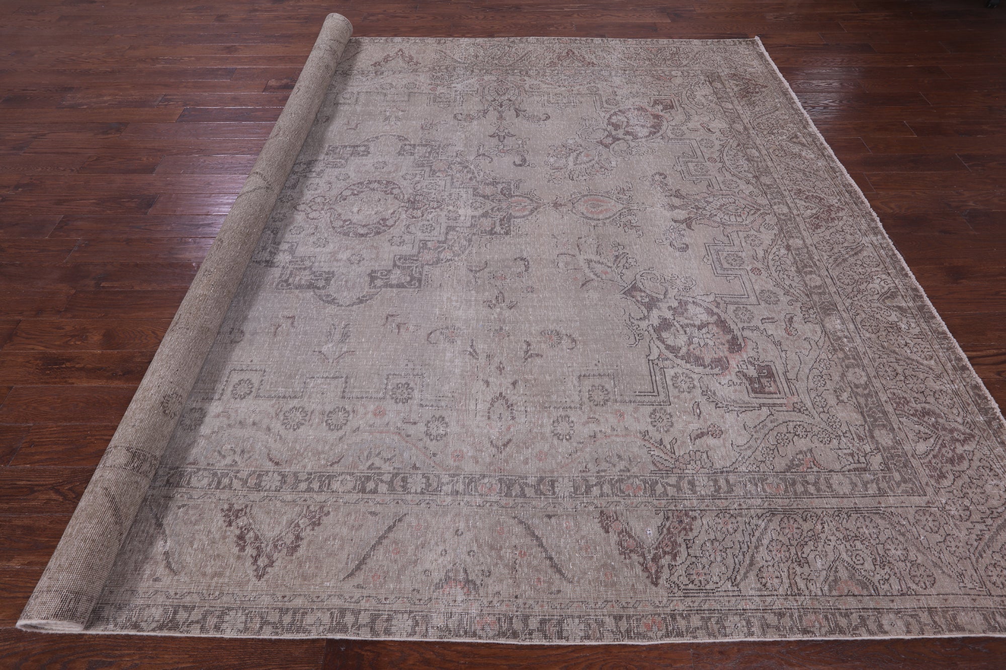 This Vintage looking rug is a Persian Rug that has been white washed. These kind of rugs demonstrate a process best described as 'The modern palette applied to classics'. It consists of an added step to the finishing process in which the rug is white washed, and sheared. The effect is quite stunning, adding a white overcast to the whole rug and blending seamlessly with the prior dyes.